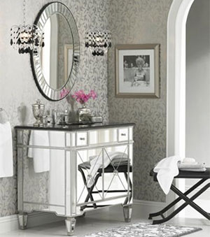 Mirrors and mirrored furniture are a great way to add some glamour into your design. A properly placed mirror or mirrored surface can reflect and diffuse light creating a dazzling effect that will help your space feel open and airy. Plus a wall mirror can trick the eye into thinking that a space is much larger than it really is.
