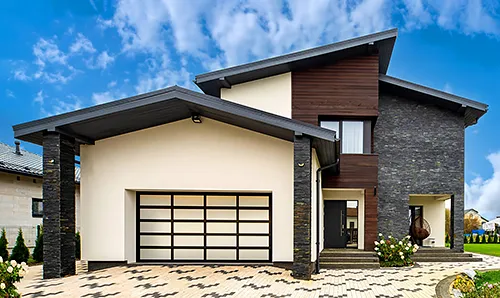 As with the rest of the popular Avante® garage door options from Clopay, VertiStack® Avante® garage doors let you tailor the final look to your goals. The stacking mechanism is a feature—not the only thing these doors have to offer! Consider your whole façade when selecting the frame color and panel material. Between the clear, tinted, textured, and mirrored possibilities for glass and acrylic, and aluminum panels for those who prefer a totally opaque and solid appearance, you can build the perfect complement for your home. This type of garage door makes a wonderful choice for modern and contemporary architecture, but don’t be afraid to branch out—such doors are a great way to update almost any home for a transitional twist!