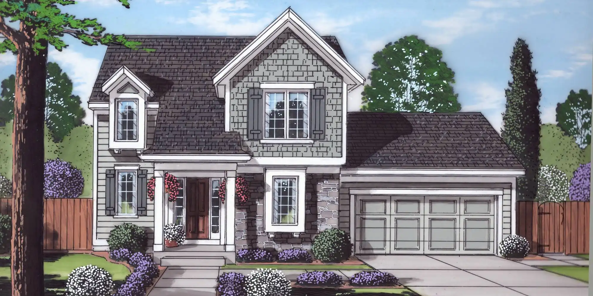 Check out House Plan 10015 if you need a modestly sized traditional home for your family! This design offers 1,684 square feet with three bedrooms and two-and-a-half bathrooms across two levels. The main level features a foyer, powder room, and laundry in front while the G-shaped peninsula kitchen, dining space, and great room with a corner fireplace are in back. The two-car garage also connects to the interior by the laundry and kitchen for convenience. Upstairs, you'll find all three bedrooms. The primary suite has a four-piece bath and a walk-in closet while the other bedrooms share a four-piece hall bath.