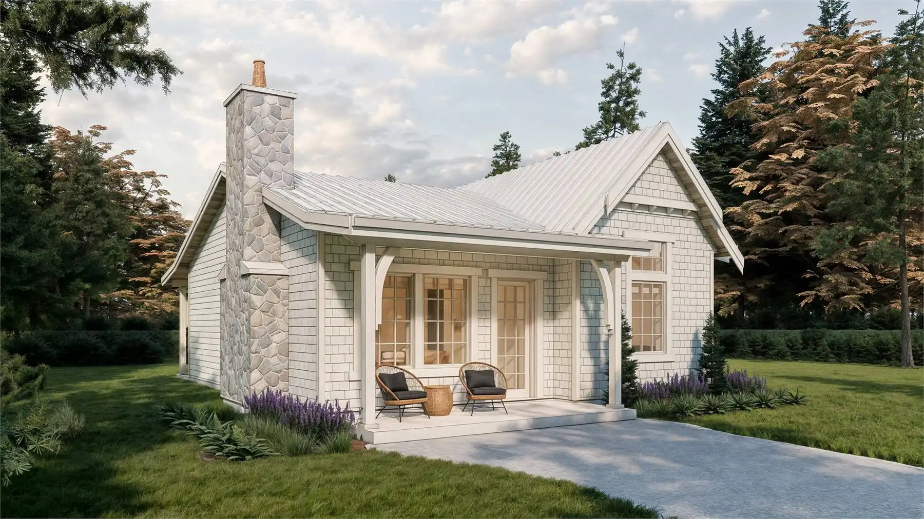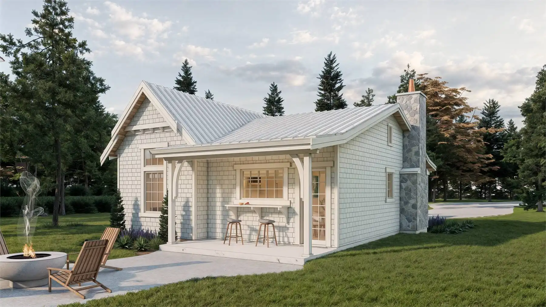 House Plan 10018, is an 856-square-foot cottage designed for easy living. With two bedrooms and one full bath, it’s perfect for a vacation home, empty nesters, or first-time buyers. The open L-shaped kitchen and dining area connect to a cozy living room featuring a large fireplace, ideal for cool, coastal days. Enjoy the outdoors with covered front and rear porches, offering extra living space rain or shine. House Plan 10018 is charming, bright, and built for comfort in any season.