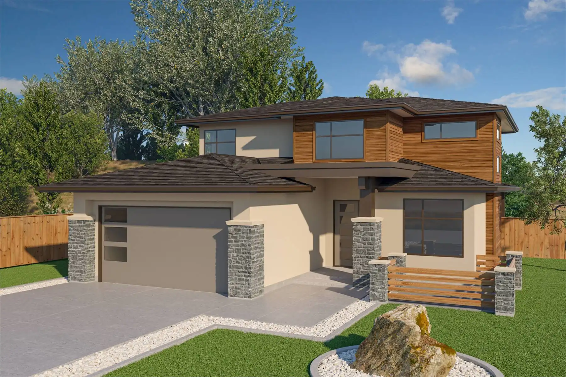 House Plan 10025 is a 2,052 sq. ft. home crafted with a perfect balance of style and functionality. Featuring three bedrooms, an unfinished basement, and a covered patio, it offers flexible spaces to suit your lifestyle. The main floor boasts an inviting great room with a gas fireplace, a well-appointed kitchen with a walk-in pantry, and a dining area that opens onto the patio—perfect for hosting or relaxing. Upstairs, the primary suite offers a serene retreat with a soaker tub, double sinks, and a spacious walk-in closet, while two additional bedrooms share a conveniently located bathroom. The exterior shines with horizontal siding, brick accents, and a decorative garage door that enhances its overall charm. Perfect for families, House Plan 10025 delivers timeless design with everyday practicality.