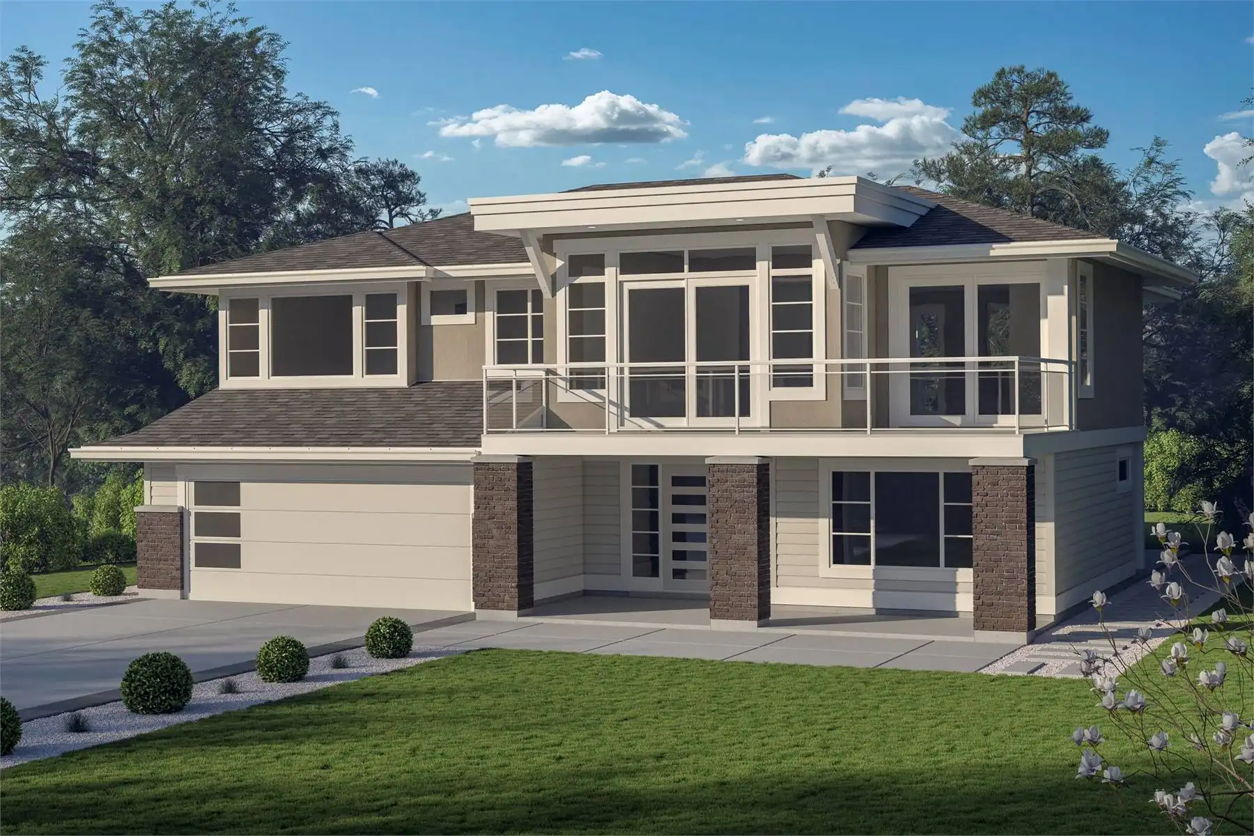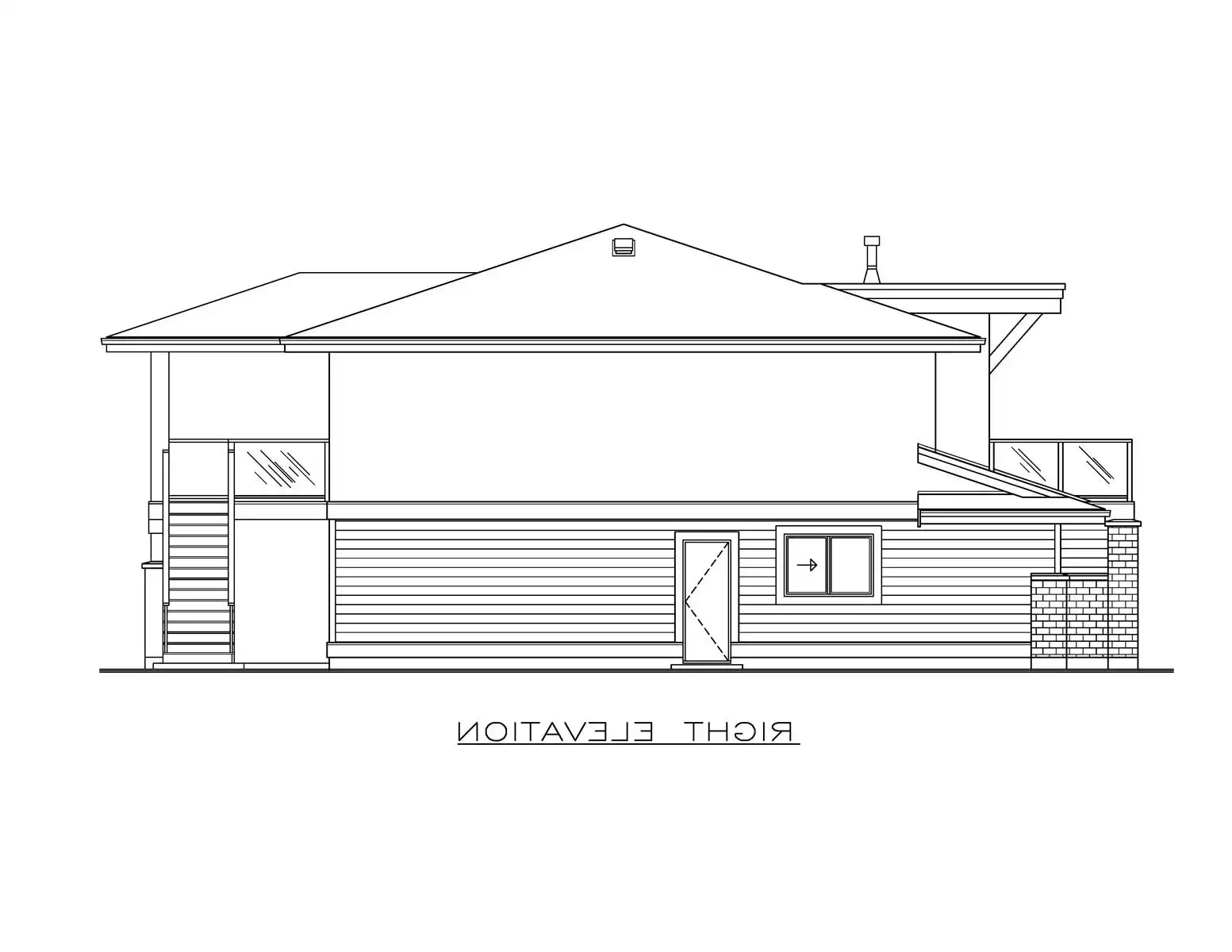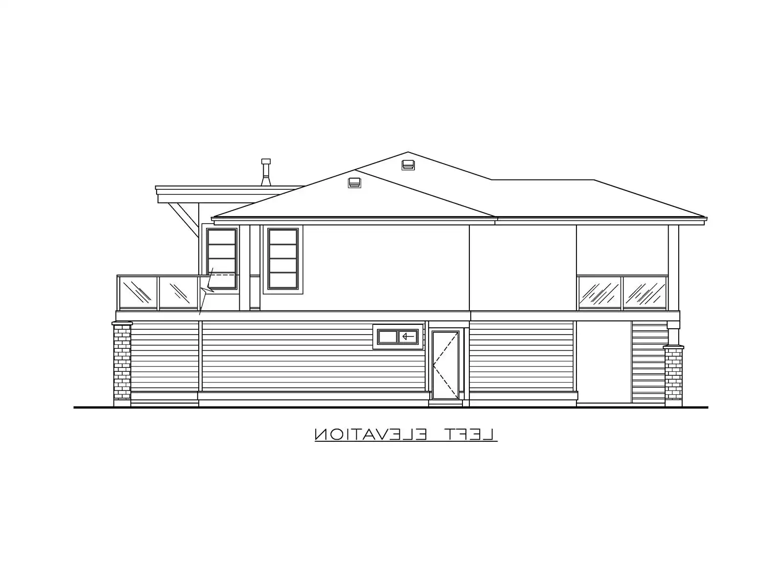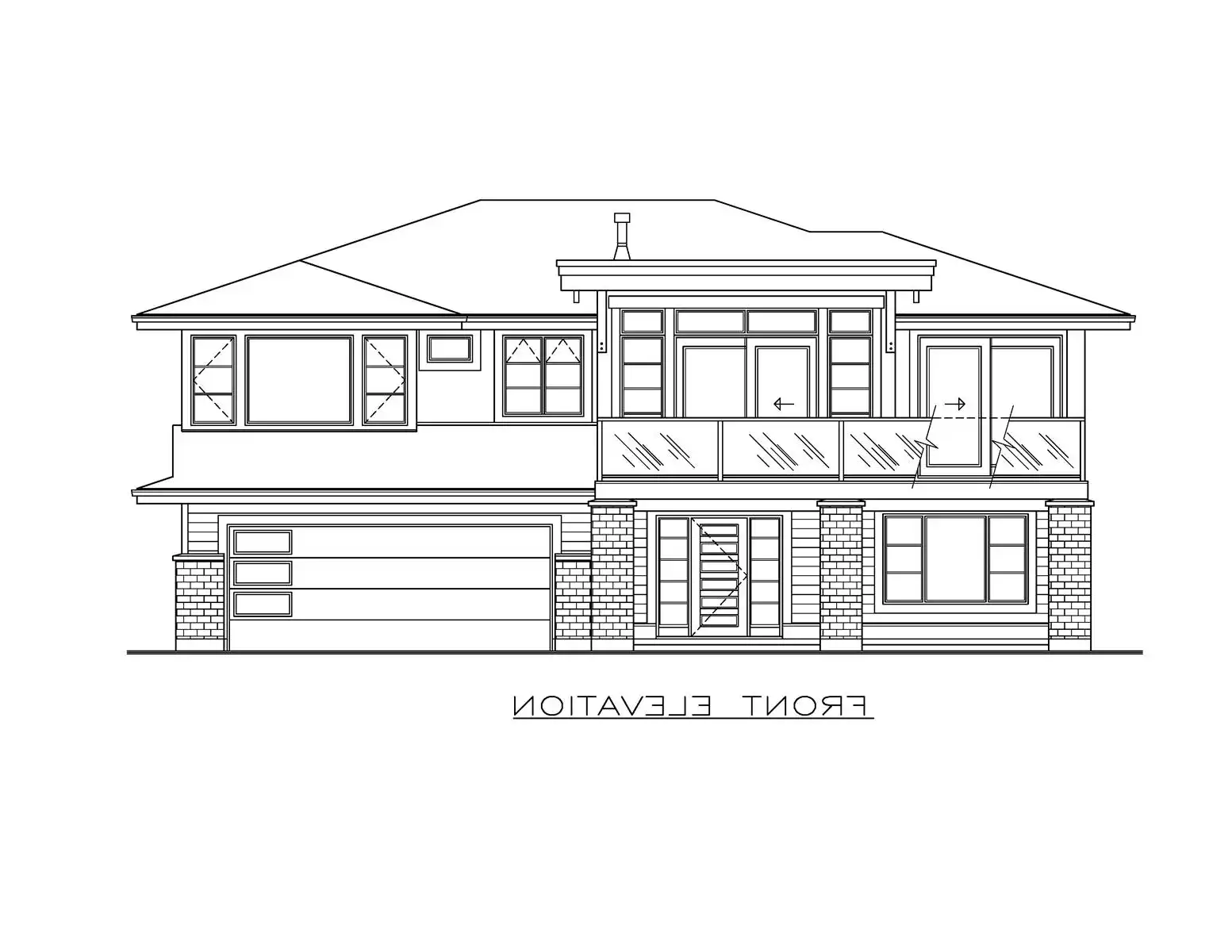 House Plan 10027 is an inverted modern home offering 2,186 square feet, three bedrooms, and three bathrooms. The main level is upstairs and includes the great room, the primary suite, and the secondary bedrooms that share a hall bath. Make sure not to miss the awesome front sundeck and rear covered deck! Downstairs you'll find the foyer, a rec room, and a bathroom in addition to the drive under garage. But that's not all--check out the future suite in back that would make a great in-law apartment if you tweak the bar into a proper kitchen!