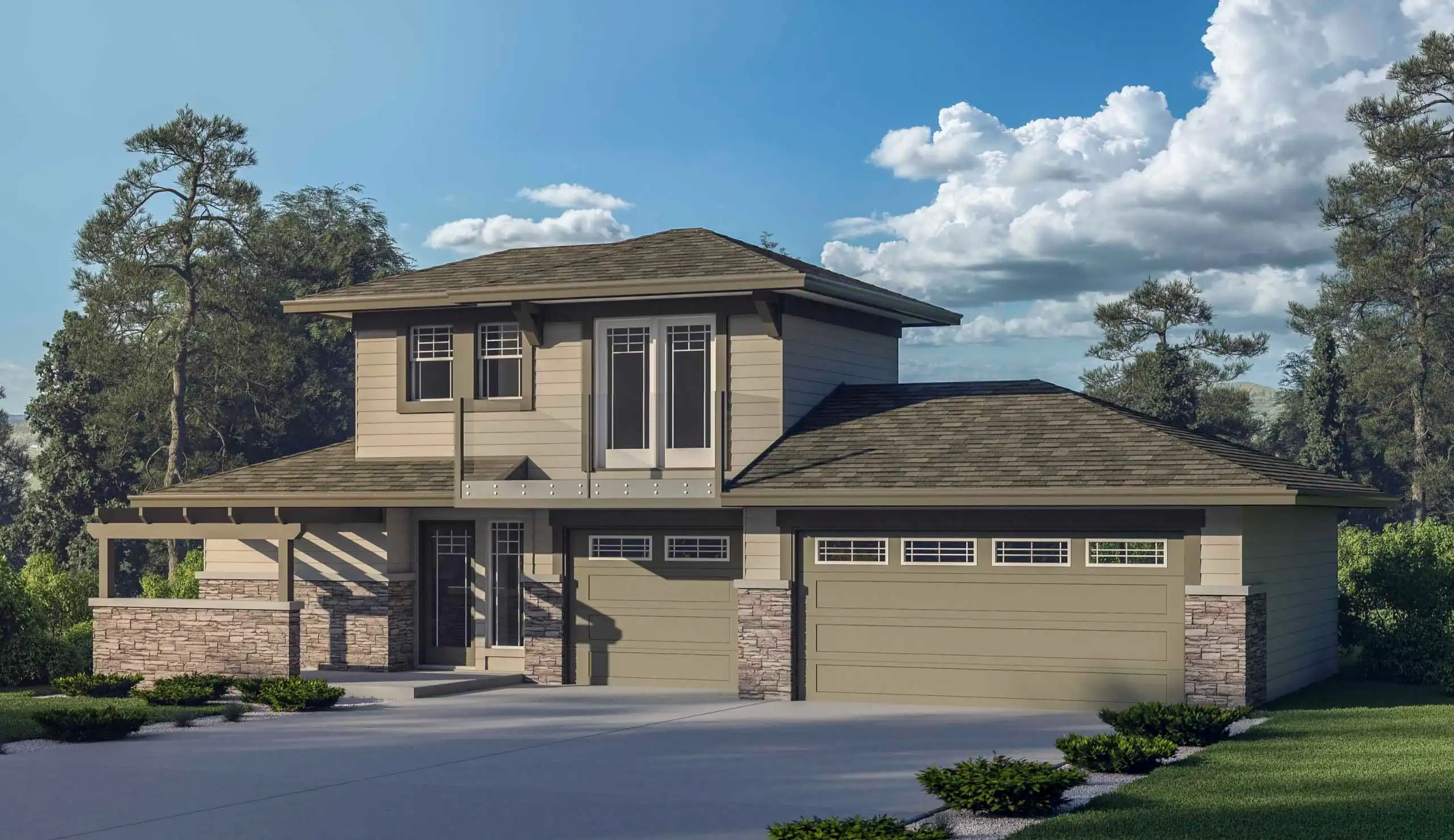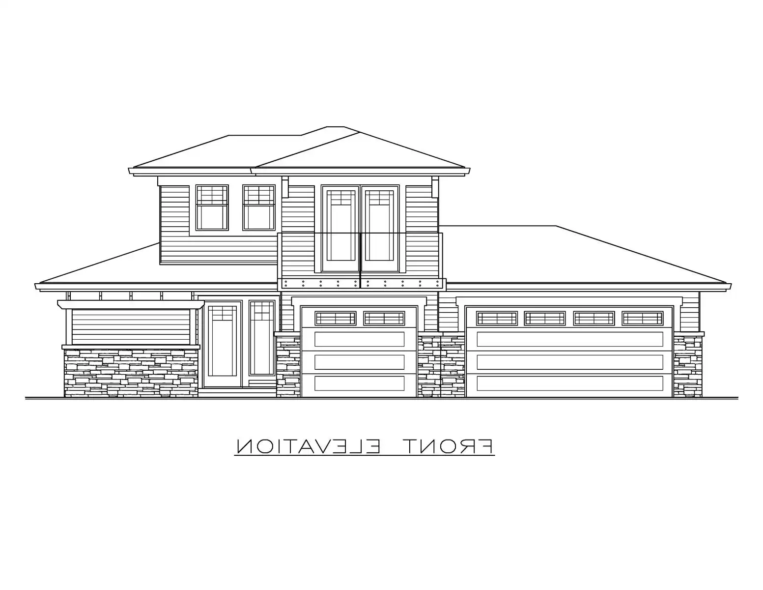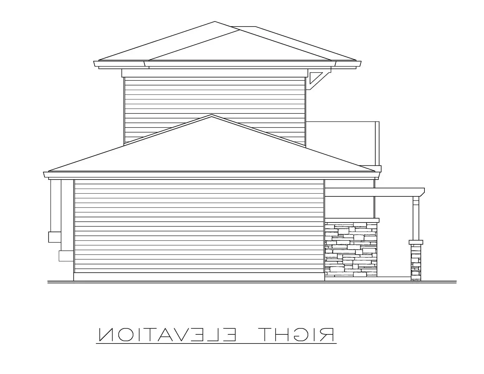 House Plan 10047, is a versatile garage and coach house, perfect as a standalone dwelling or property addition. The lower level features a three-vehicle garage, workshop, and well-designed living space with a foyer, efficient kitchen with an eating bar, and a bright living room with a wide-silled window. A stacked laundry nook adds convenience near the staircase. Upstairs, the primary bedroom provides a private retreat with French doors opening to a sundeck, while the three-piece bath includes a shower stall with a built-in bench.