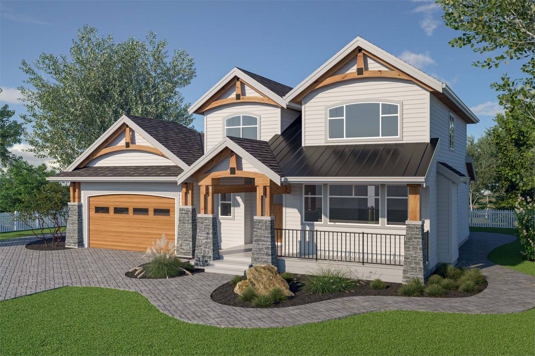 House Plan 10058 is a lovely little Craftsman cottage with 1,848 square feet, three bedrooms, and two-and-a-half bathrooms on two stories. The main level features the open-concept living areas with an island kitchen and a fireplace in the living space, the laundry, and the powder room while all the bedrooms are upstairs. Make sure not to miss the amazing offerings in the primary suite, as they're hard to come by in many homes this size!