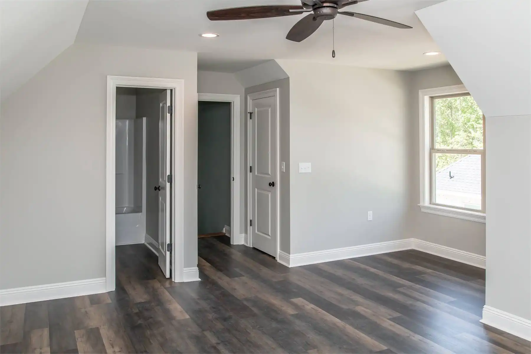House plan 10064 encompasses 2,281 square feet of heated living space, masterfully combining practicality with a sense of comfort in a contemporary design. It features four bedrooms and three bathrooms, providing generous room for family living, along with a dedicated office or adaptable guest room for added flexibility. The primary suite is a true sanctuary, boasting a roomy bathroom and walk-in closet. At the heart of the home, the great room seamlessly connects to the open kitchen and dining areas, creating an ideal setting for entertaining or enjoying family time. An above-garage bonus room, complete with its own bath, opens up a range of options, from playroom to media space or guest suite. Additionally, the design includes a rear porch for outdoor relaxation and a two-car garage that offers easy access to the utility room.