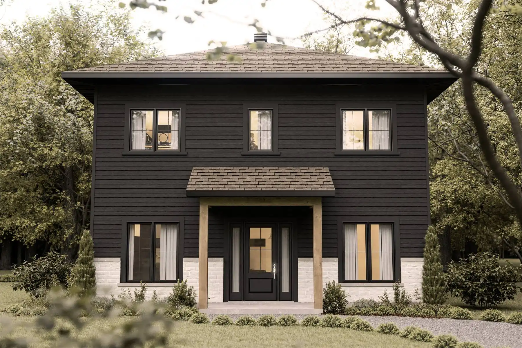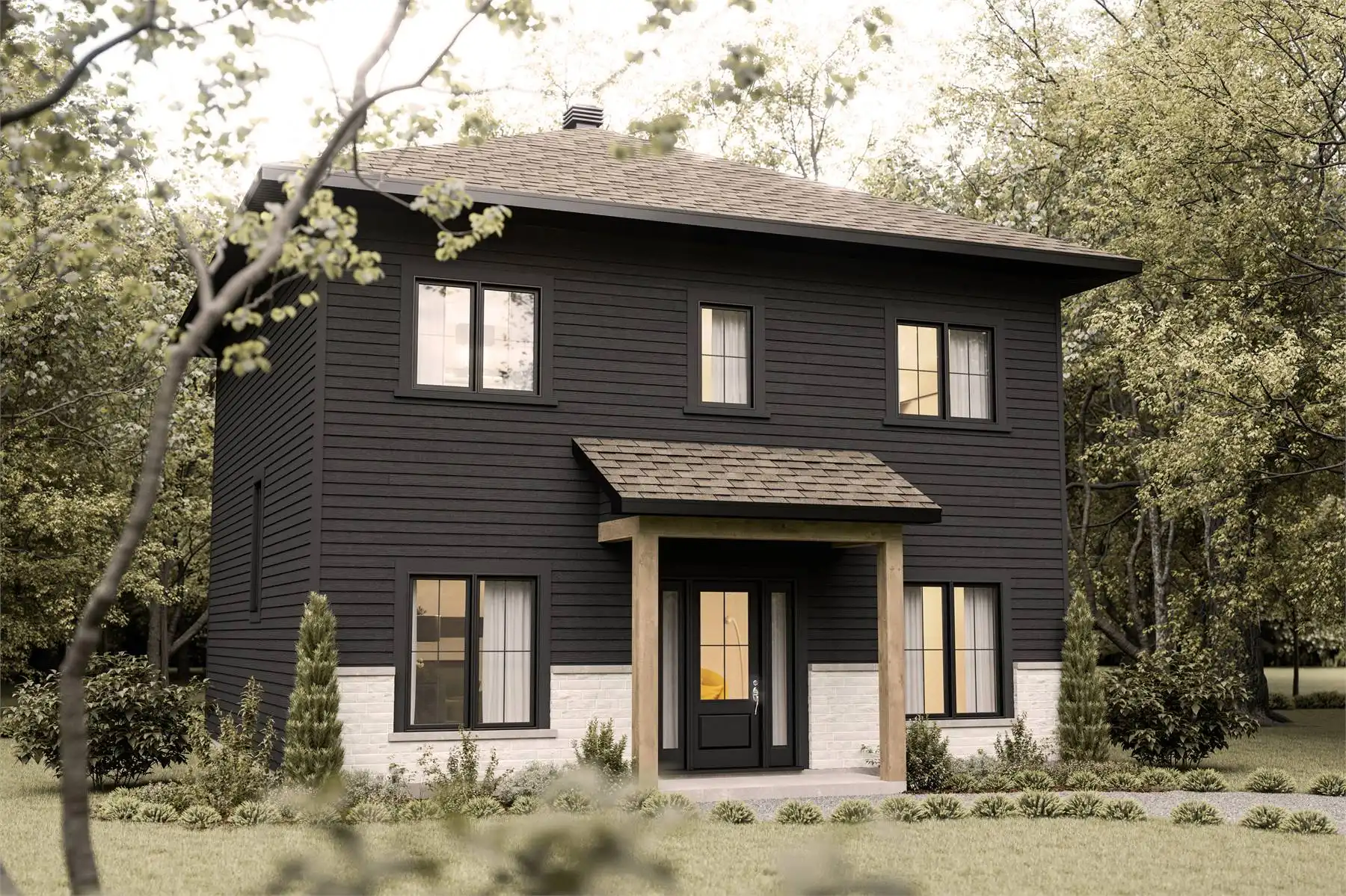 House Plan 10078 is made for families building on a budget! This two-story design offers 1,800 square feet with three bedrooms and one-and-a-half bathrooms. The main level includes the foyer, mudroom, office, powder room, and open-concept living space. Don't miss the walk-in pantry in the kitchen! Upstairs, you'll find all three bedrooms and a huge bathroom with dual vanities, a separate tub and shower, the toilet, and even the laundry appliances hidden behind a pocket door!