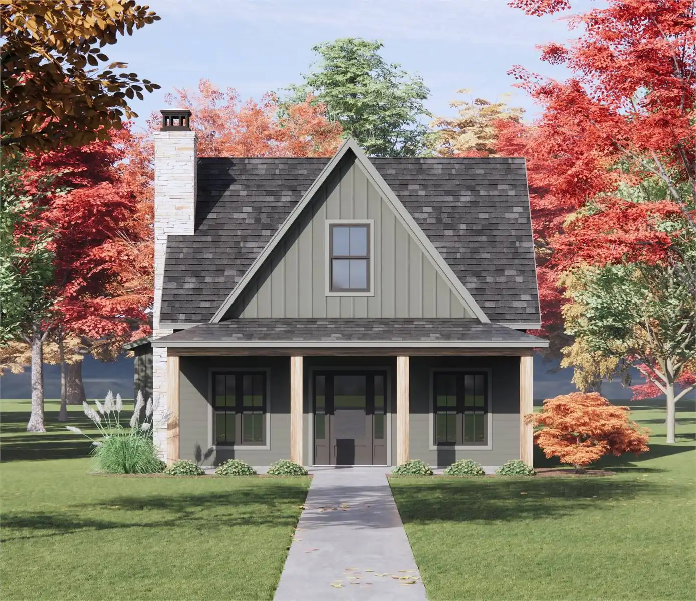 Designed for relaxed living, this home includes 1,488 square feet of heated space with 3 bedrooms and 2.5 bathrooms. Vaulted ceilings enhance the great room and primary suite, giving the open floor plan an airy and welcoming atmosphere. The kitchen features a central island and pantry that support both daily routines and informal gatherings. The main-floor primary bedroom offers privacy, a walk-in closet, and a comfortable retreat at the end of the day. Upstairs bedrooms add flexibility while keeping the overall layout efficient and balanced. Covered porches at the front and rear provide pleasant outdoor spaces for morning coffee or quiet evenings. Altogether, this home delivers a warm, inviting layout that feels both practical and comfortable.