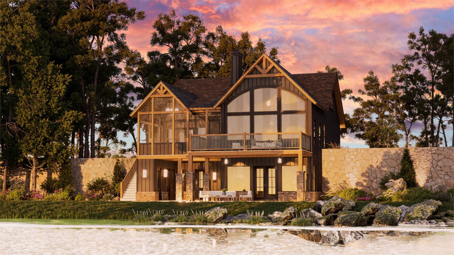 House Plan 10081 is a spacious craftsman designed for relaxation and scenic views. This 2,932-square-foot home features an open floor plan with a central kitchen island and a walk-in pantry. The main floor includes a primary suite with a large walk-in closet and double vanity, as well as an office that can serve as a fourth bedroom. Enjoy outdoor spaces with a screened porch and large rear deck. The walkout basement has two additional bedrooms, creating a perfect retreat for guests. Large windows upstairs bring in ample natural light and beautiful views.