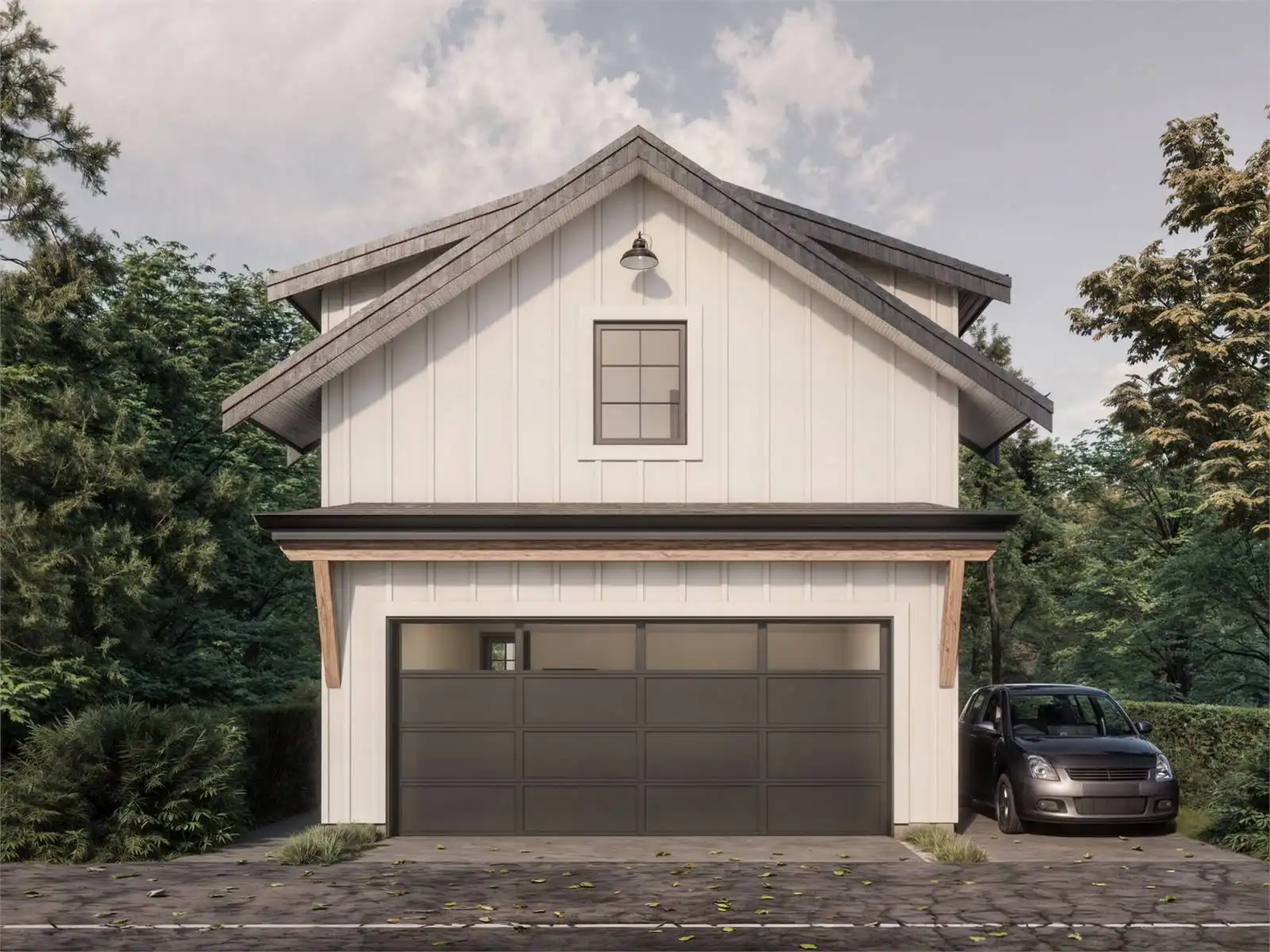 Meet the House Plan 10085, a delightful Craftsman/Country-style ADU garage with a 1-bedroom apartment above. This flexible design includes a roomy two-car garage on the main level, complete with additional storage and a mechanical room for added convenience. Upstairs, you’ll find a well-planned living space featuring a cozy U-shaped kitchen, a welcoming living area, and a comfortable bedroom with ample closet space. The layout prioritizes both comfort and functionality, making it an ideal option for guest accommodations, rental income, or multi-generational living. With its classic Craftsman appeal and smart design, the Eglinton brings both charm and utility to any property.