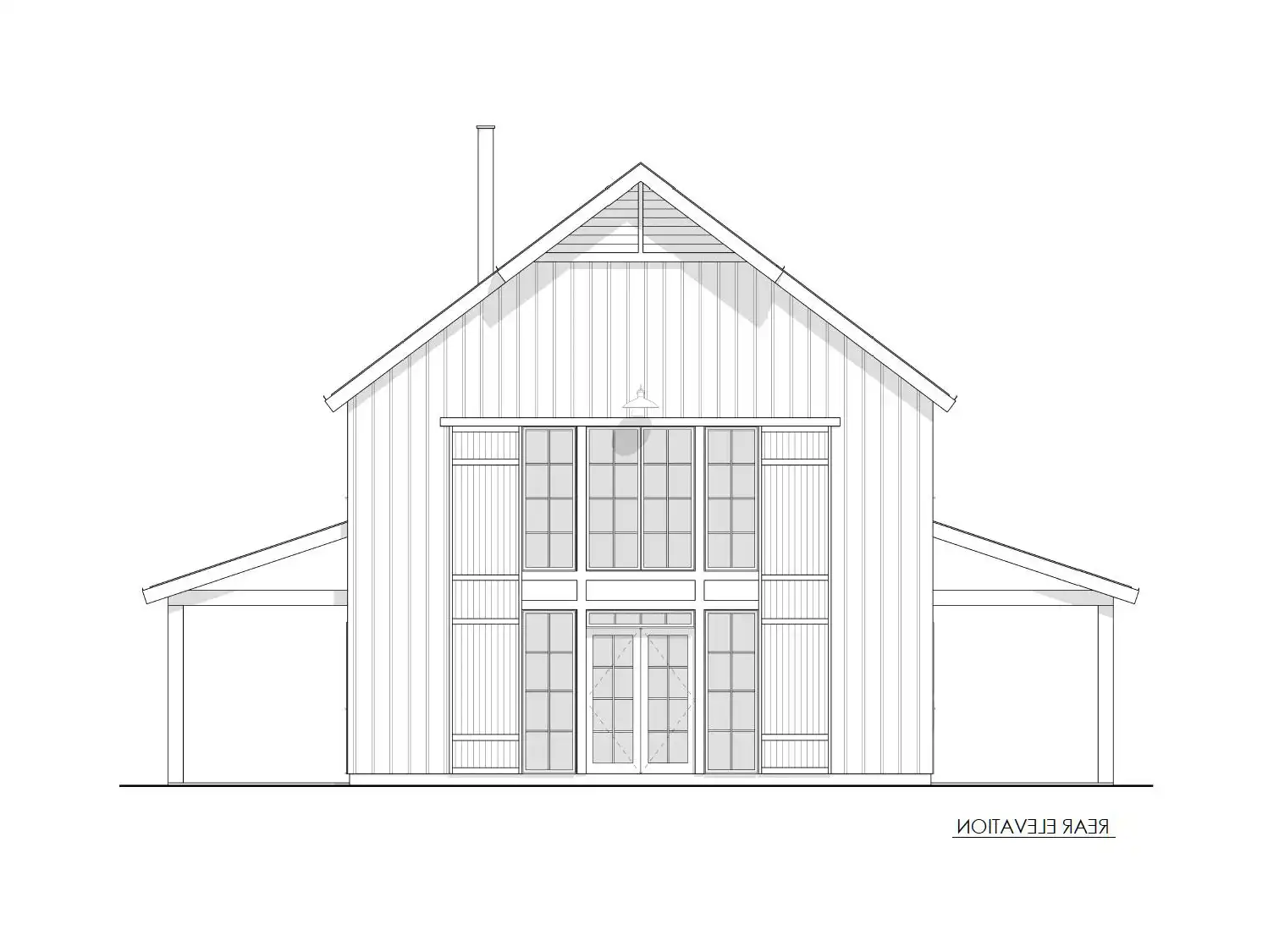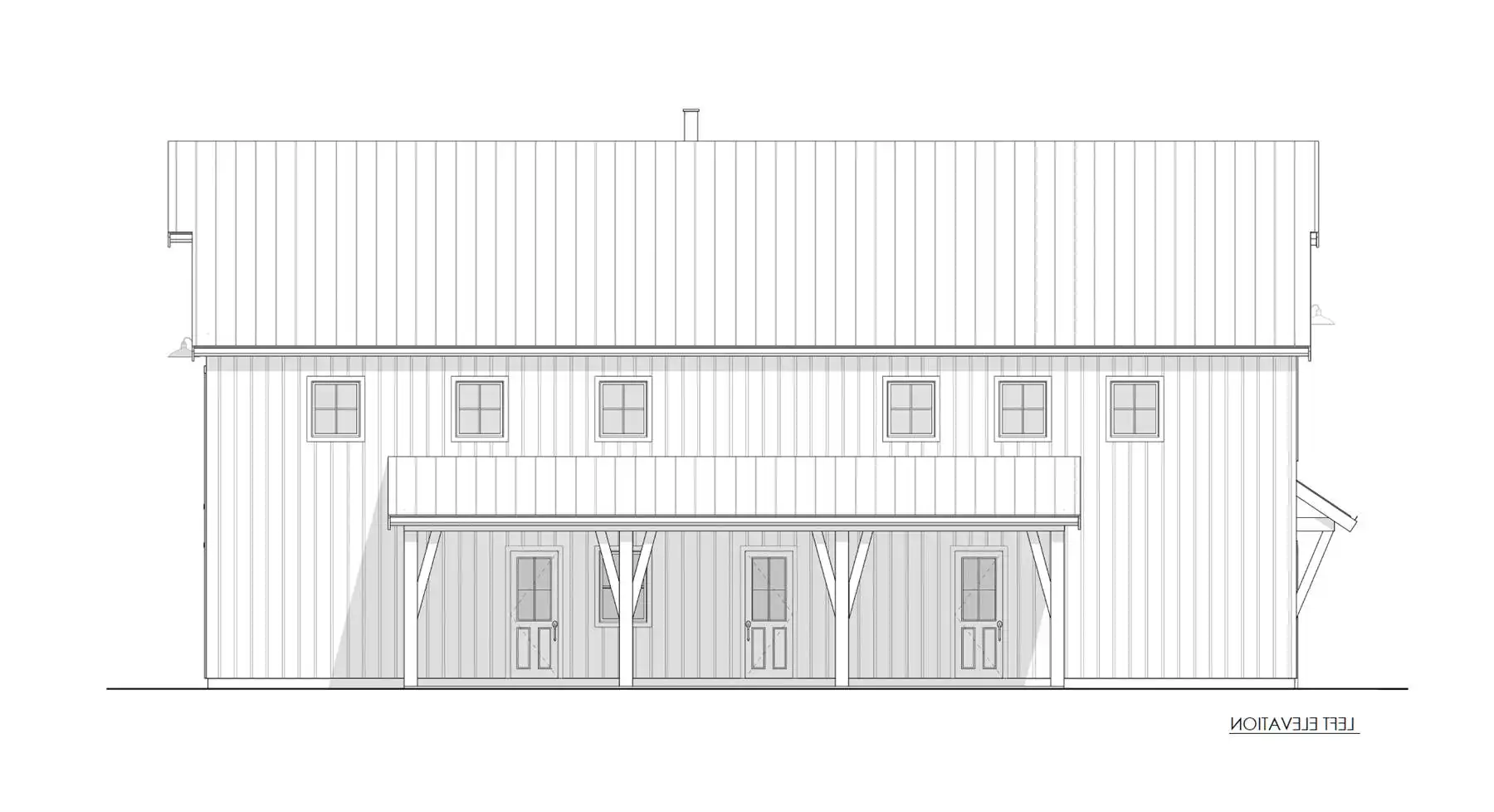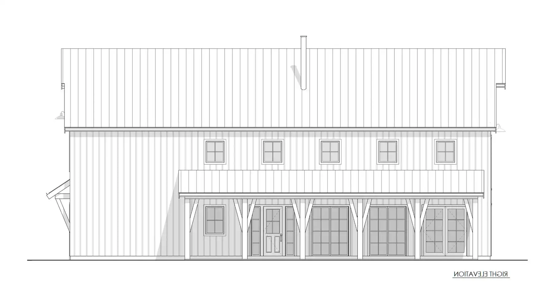 House Plan 10111 is a 3,450-square-foot modern barndominium with four bedrooms, 3.5 bathrooms, and a spacious two-car garage. Its bright exterior features large covered patios, perfect for outdoor living and entertaining. The open floor plan connects the dining room to a vaulted living area for a spacious and inviting feel. Upstairs, you’ll find four bedrooms, including a primary suite with a spa-like bathroom and walk-in closet, plus an office and a vaulted loft, making this home both functional and stylish.