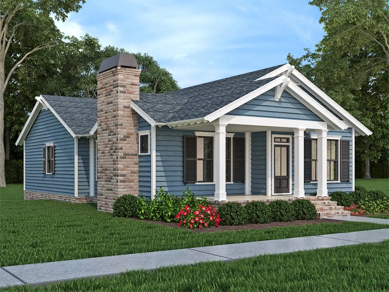 Take a look at House Plan 10114, an amazing one-story cottage with a narrow shape and a traditional layout perfect for established neighborhoods. Inside, you'll enjoy 1,946 square feet with three bedrooms and two-and-a-half bathrooms split for privacy. The living and dining areas are in front along with the secondary bedrooms while the primary suite is in back with the eat-in kitchen. Make sure not to miss the centrally located powder room, mudroom, and laundry! This neat little home has so much to offer!