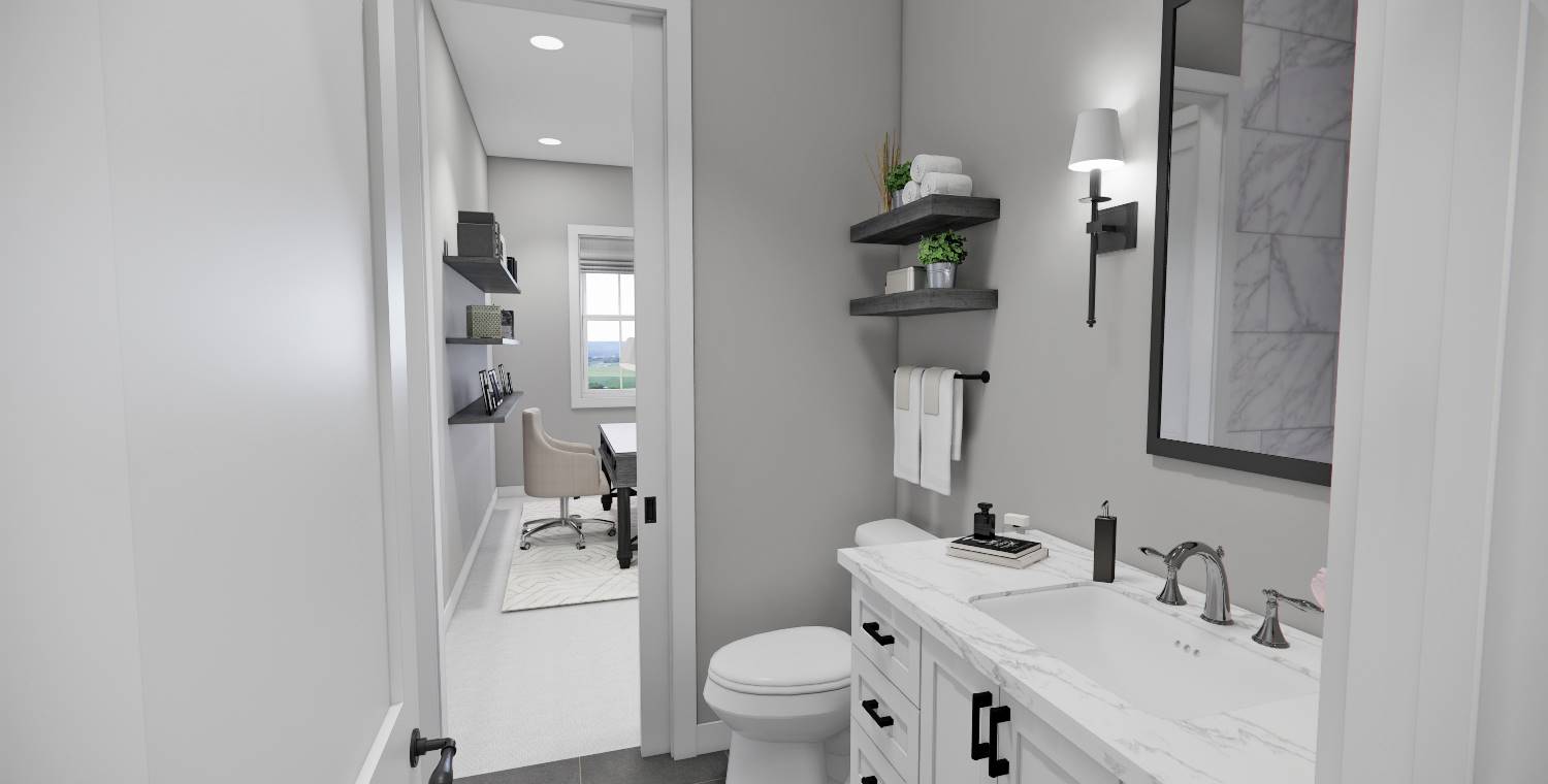 This delightful country farmhouse cottage seamlessly combines rustic charm with contemporary comforts, offering 1,995 square feet of well-designed living space. With 3 bedrooms and 3.5 bathrooms, this home provides ample room for both relaxation and personal space, making it ideal for families. The main level features an inviting open floor plan that includes a spacious great room, a cozy dining area, and a well-equipped kitchen with an island and pantry for added convenience. The primary suite offers a serene retreat with its spa-like bathroom and generous walk-in closet, while a flexible office or additional bedroom enhances functionality. Upstairs, you'll find two bedrooms with private baths and a versatile loft area, perfect for guests or children. The front and rear porches expand the living areas outdoors, creating spaces to unwind and enjoy nature. This home design captures timeless appeal while delivering modern-day practicality.