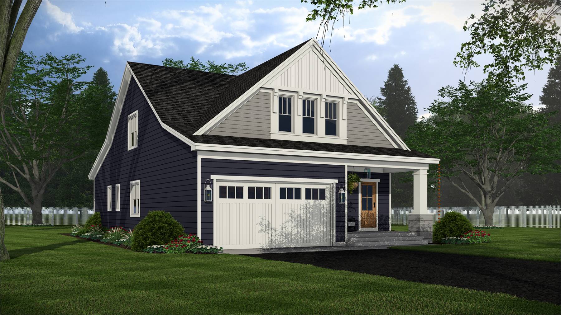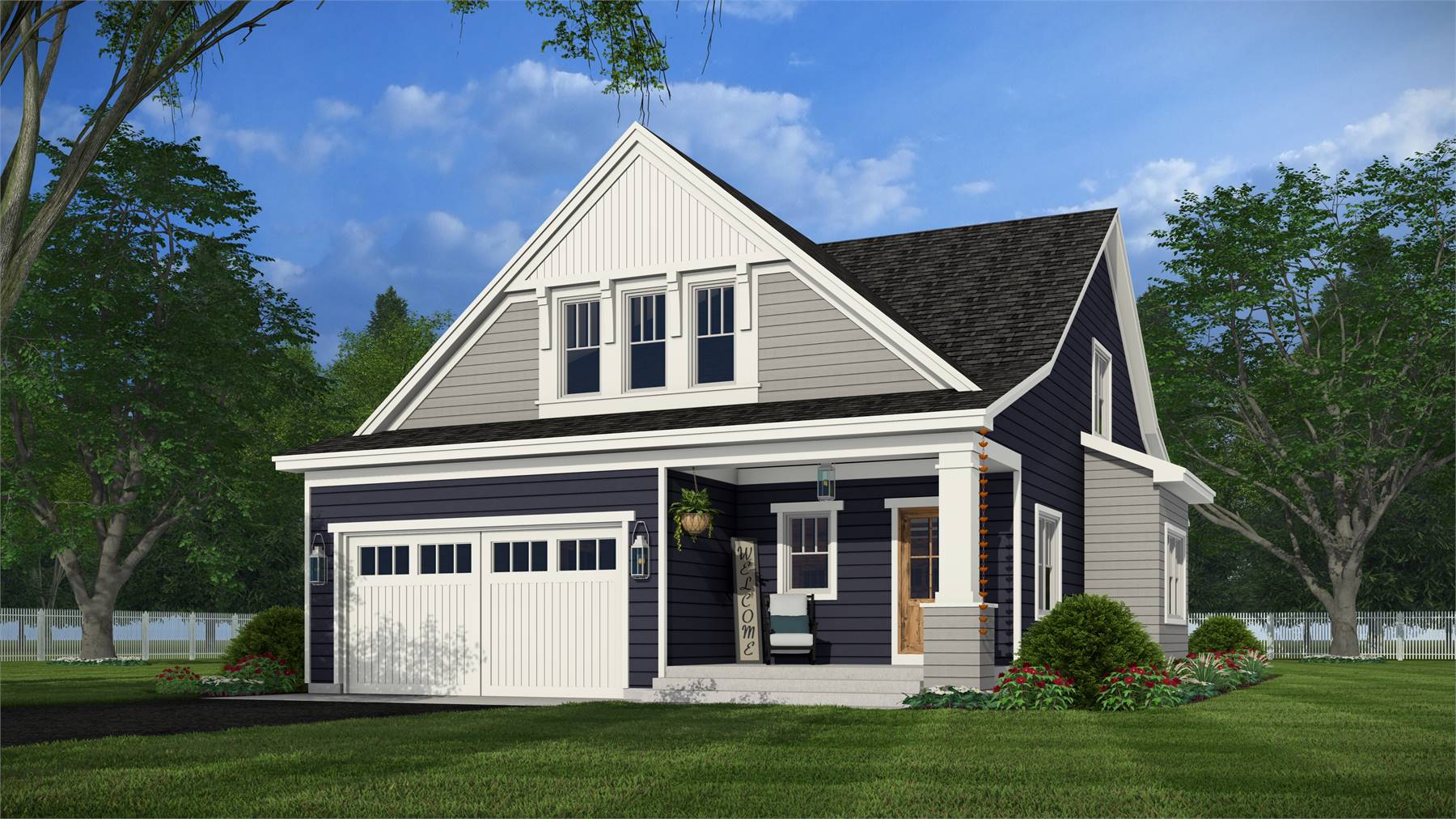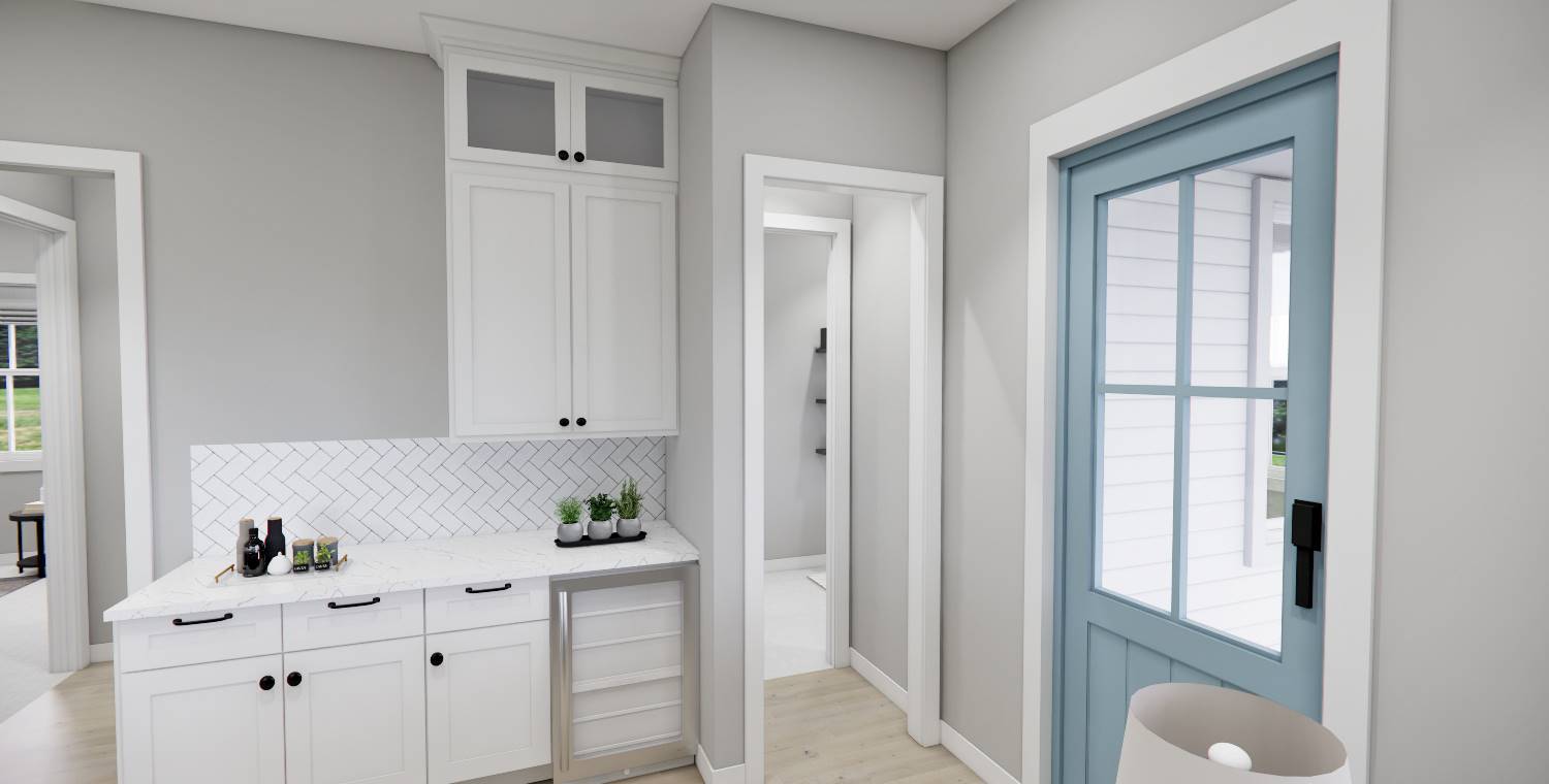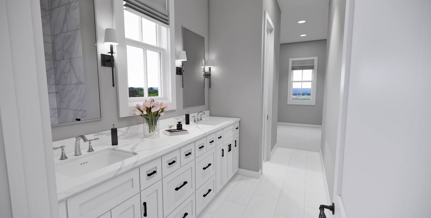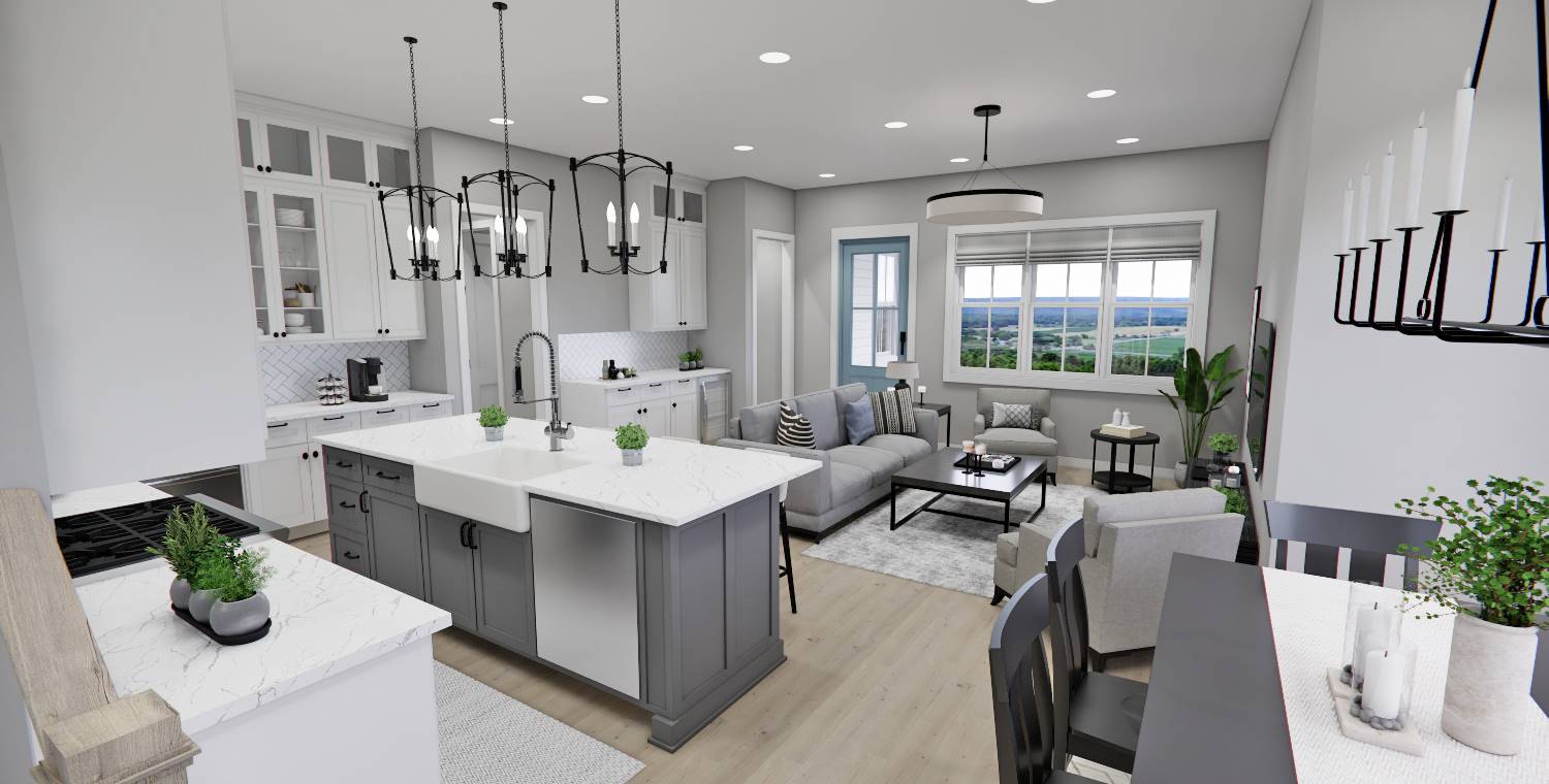 This 2,223 square foot home offers a thoughtfully designed layout with 4 bedrooms and 4 baths arranged across two functional levels. The open-concept main floor allows the great room, dining area, and kitchen to flow together seamlessly. Kitchen highlights include a center island, pantry storage, peninsula eating bar, and a breakfast nook that supports both daily routines and entertaining. The primary bedroom is located on the main floor and features a walk-in closet and a double vanity bath for added comfort. A dedicated home office and first-floor laundry room provide everyday convenience. Upstairs bedrooms are complemented by a loft or balcony that adds flexible living space. Covered porches at the front and rear complete the design with inviting areas to enjoy outdoor living.