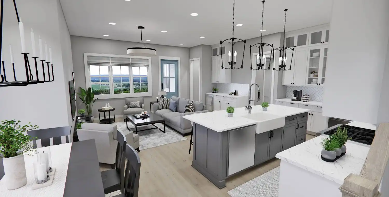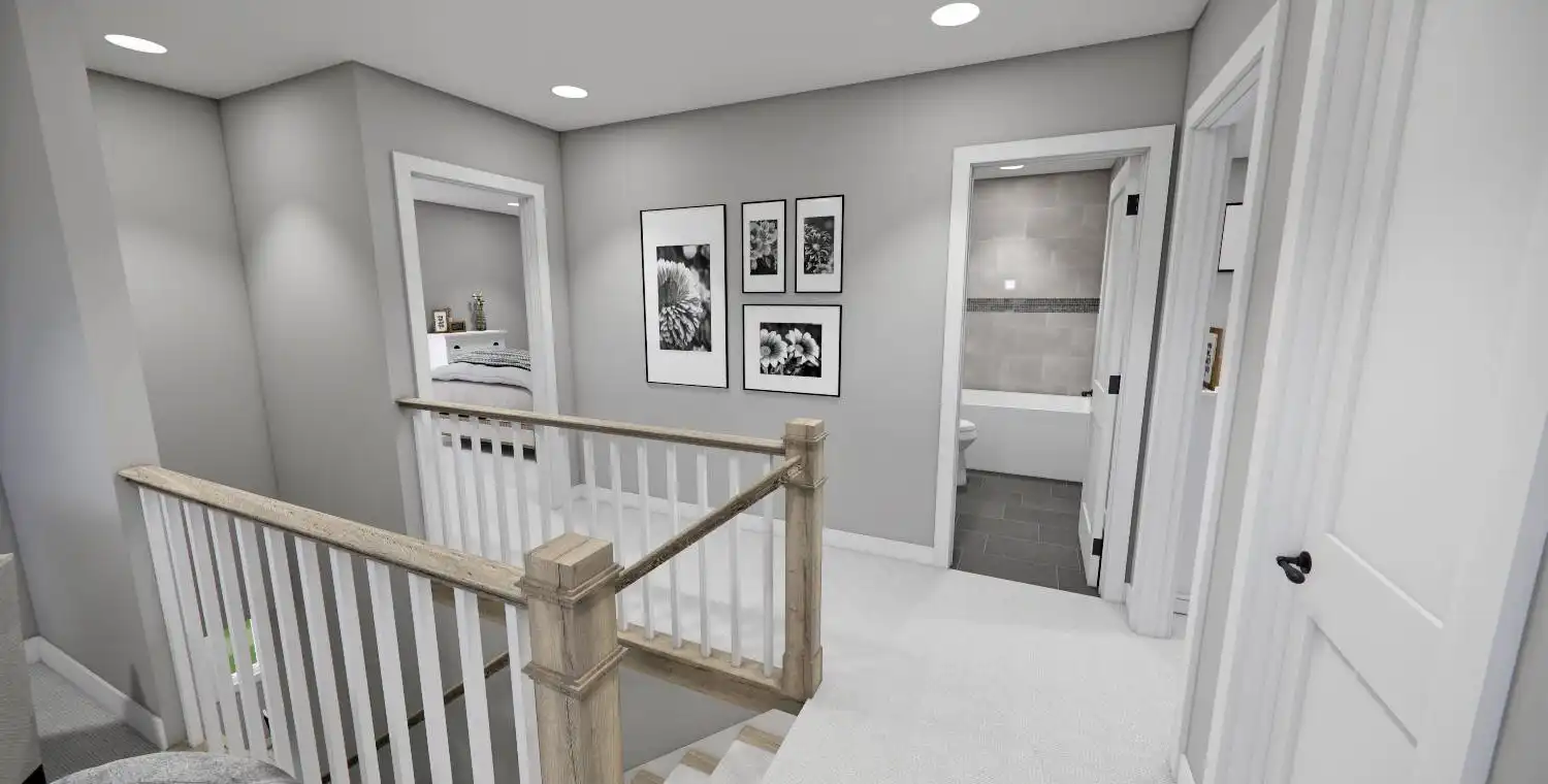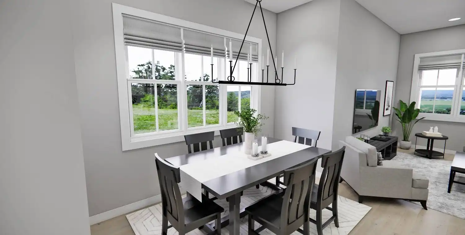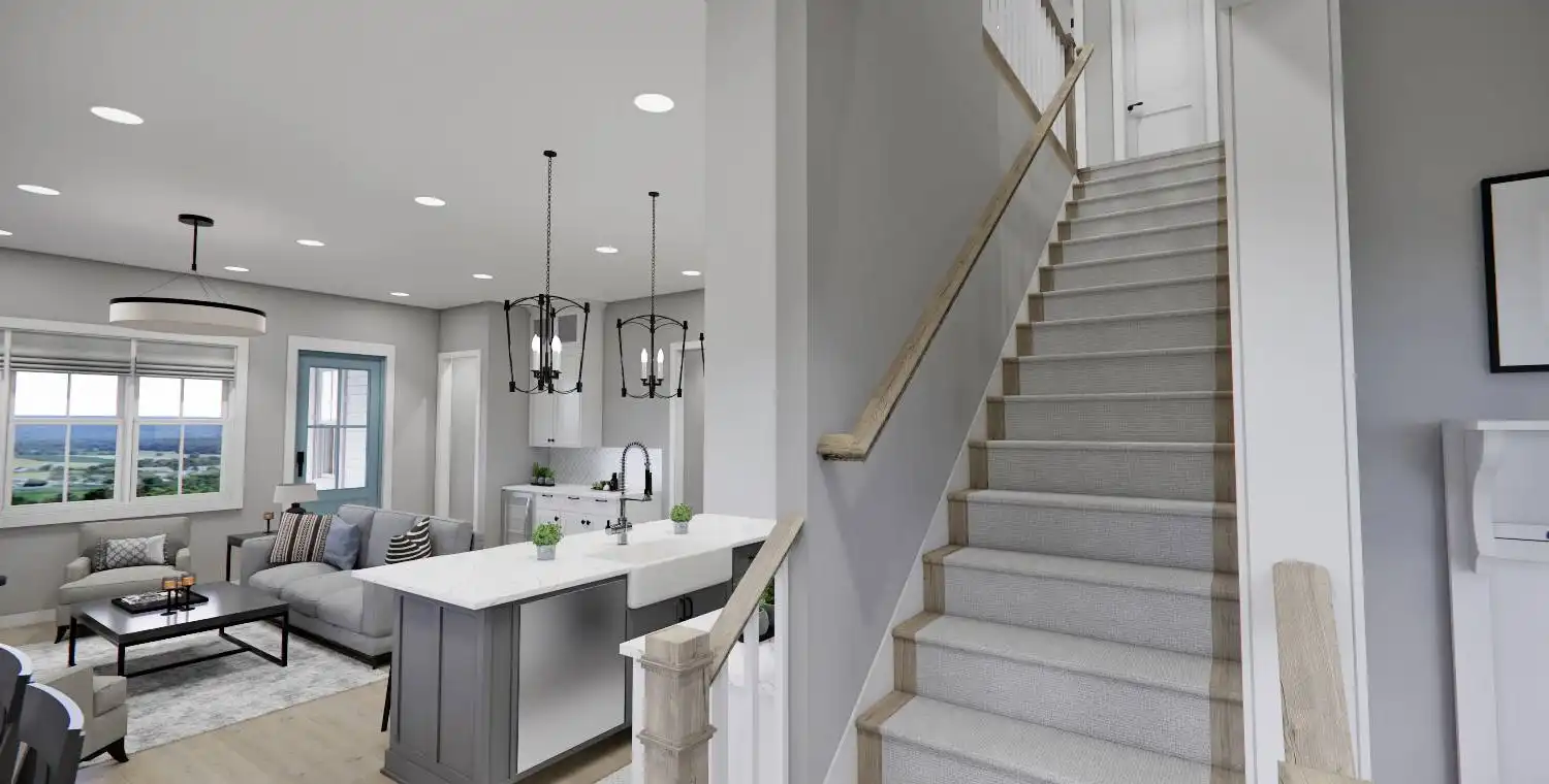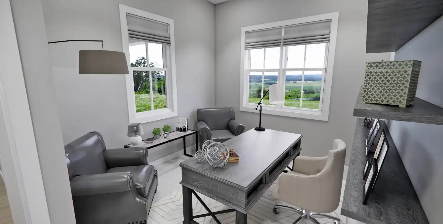 This 2,223 square foot home offers a thoughtfully designed layout with 4 bedrooms and 4 baths arranged across two functional levels. The open-concept main floor allows the great room, dining area, and kitchen to flow together seamlessly. Kitchen highlights include a center island, pantry storage, peninsula eating bar, and a breakfast nook that supports both daily routines and entertaining. The primary bedroom is located on the main floor and features a walk-in closet and a double vanity bath for added comfort. A dedicated home office and first-floor laundry room provide everyday convenience. Upstairs bedrooms are complemented by a loft or balcony that adds flexible living space. Covered porches at the front and rear complete the design with inviting areas to enjoy outdoor living.