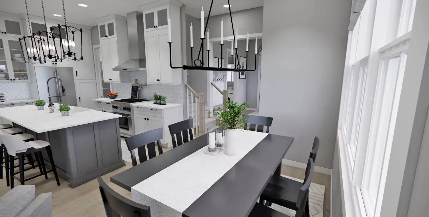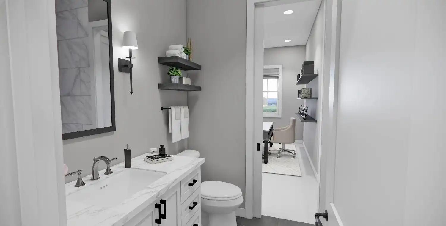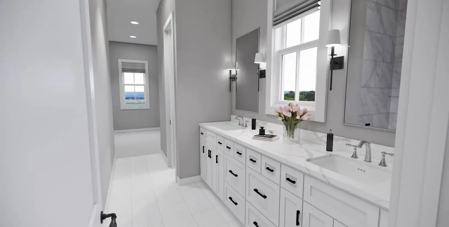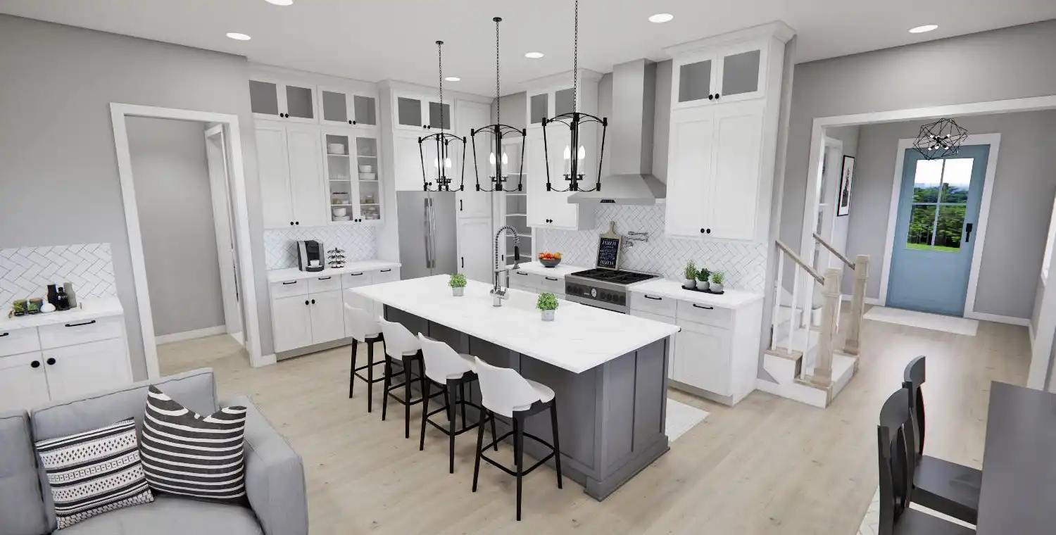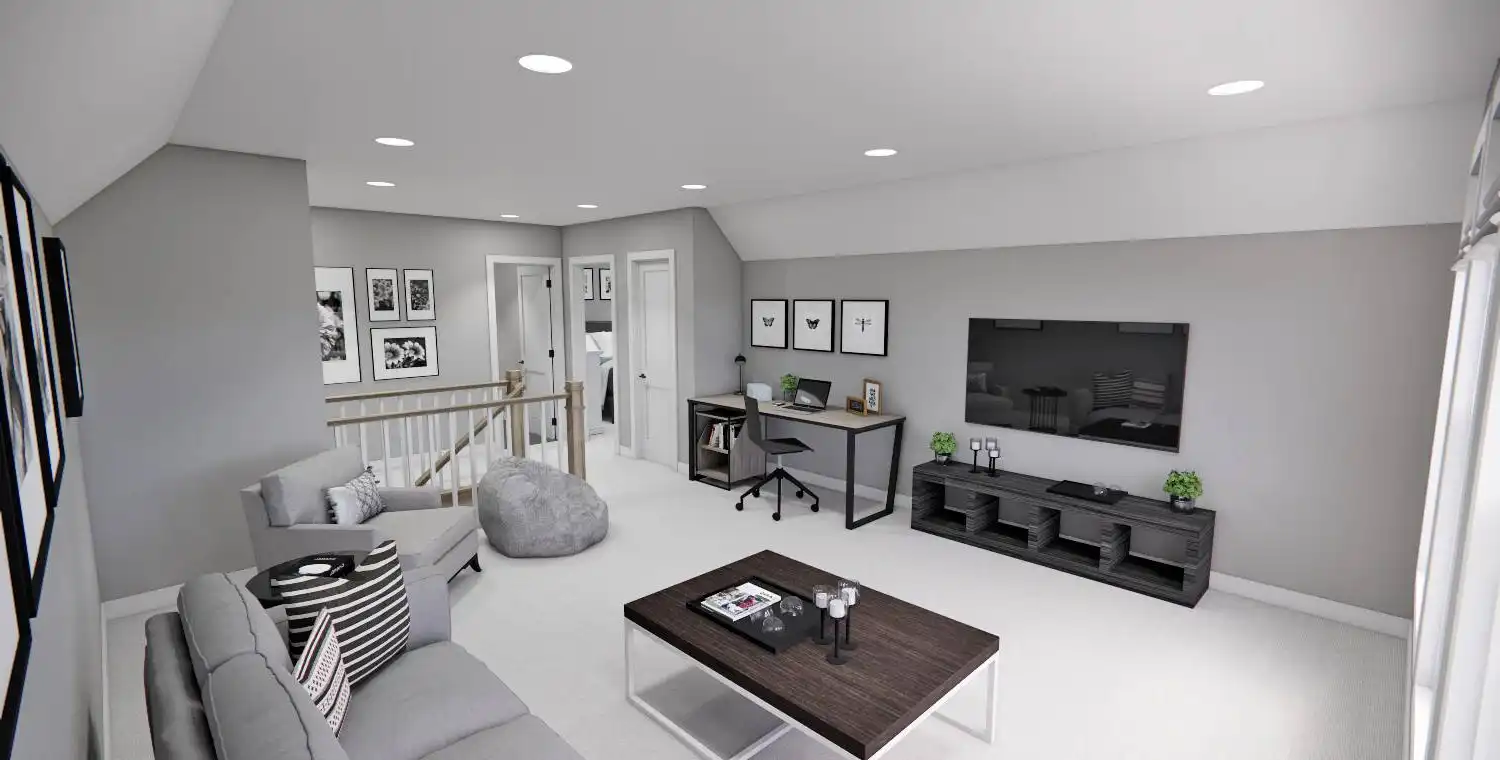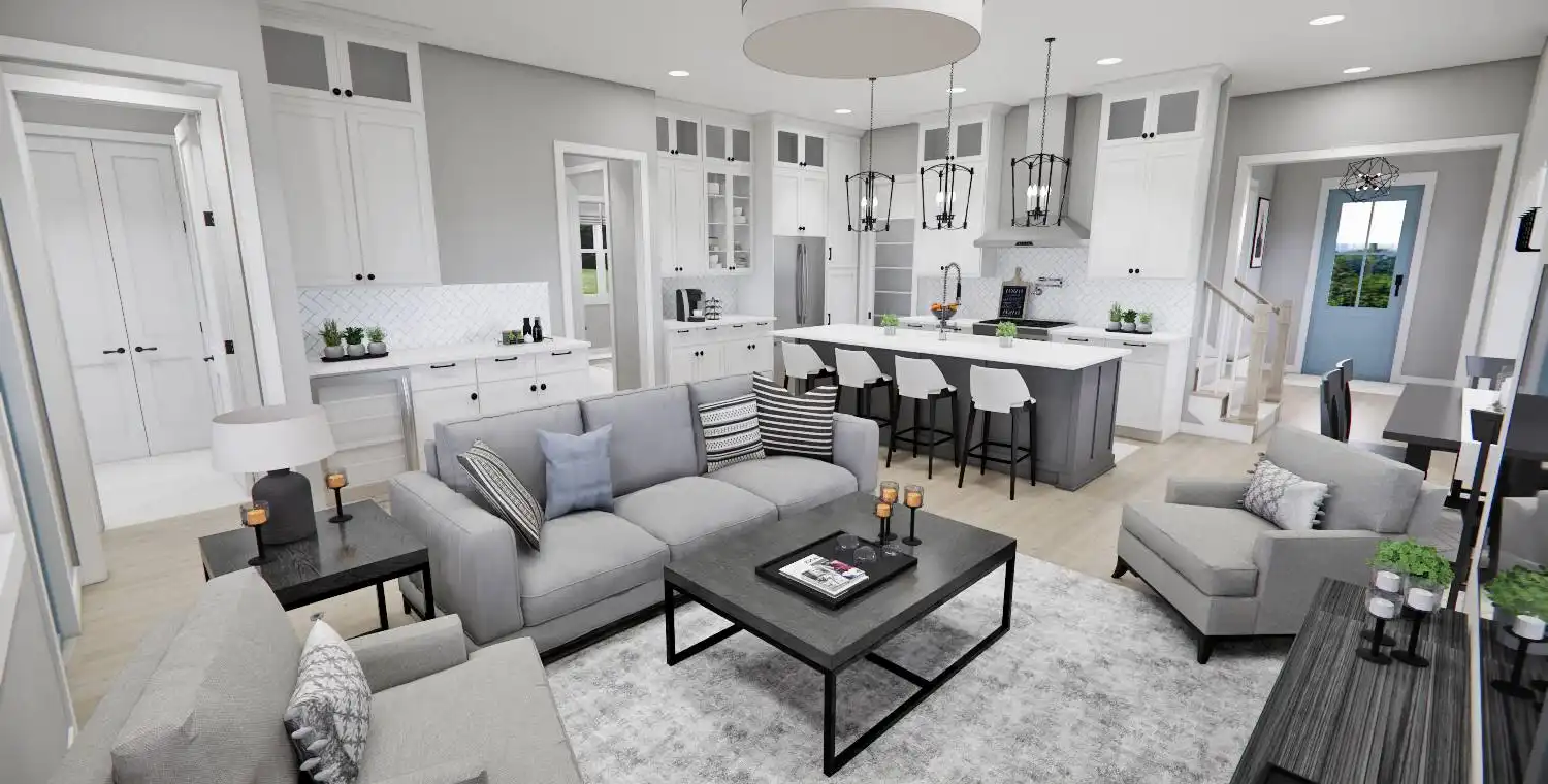 This 2,223 square foot home offers a thoughtfully designed layout with 4 bedrooms and 4 baths arranged across two functional levels. The open-concept main floor allows the great room, dining area, and kitchen to flow together seamlessly. Kitchen highlights include a center island, pantry storage, peninsula eating bar, and a breakfast nook that supports both daily routines and entertaining. The primary bedroom is located on the main floor and features a walk-in closet and a double vanity bath for added comfort. A dedicated home office and first-floor laundry room provide everyday convenience. Upstairs bedrooms are complemented by a loft or balcony that adds flexible living space. Covered porches at the front and rear complete the design with inviting areas to enjoy outdoor living.