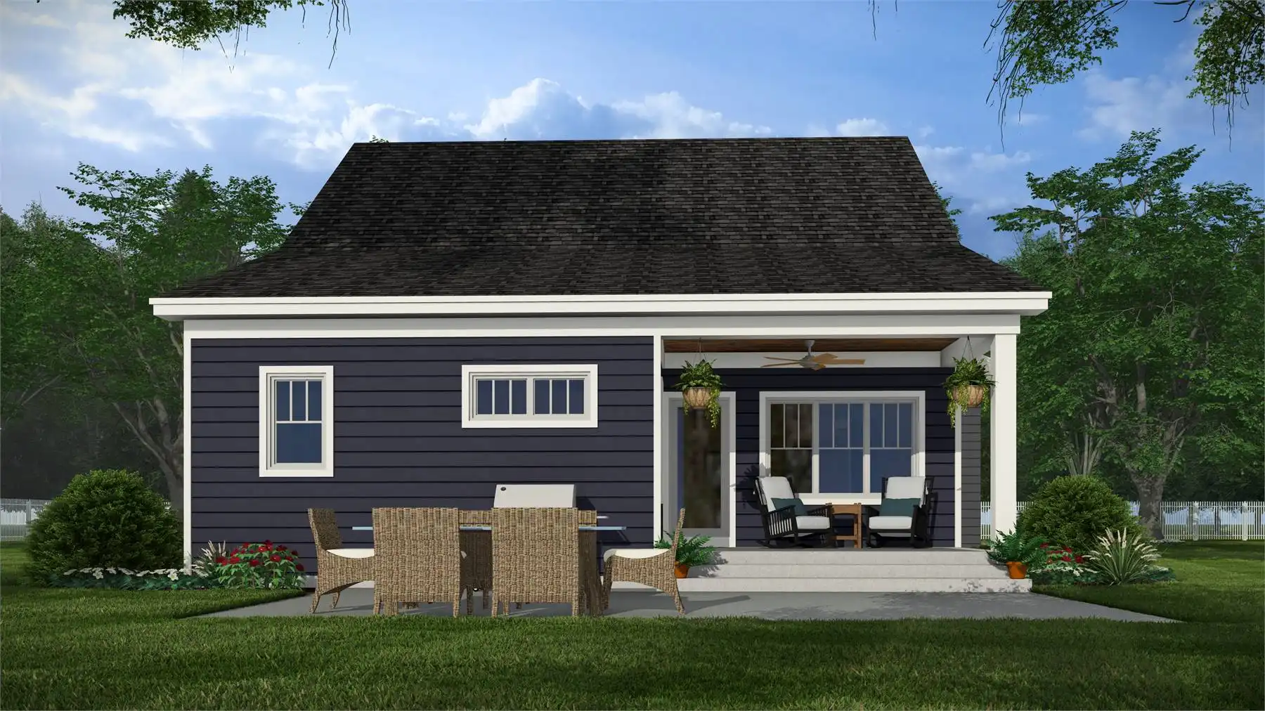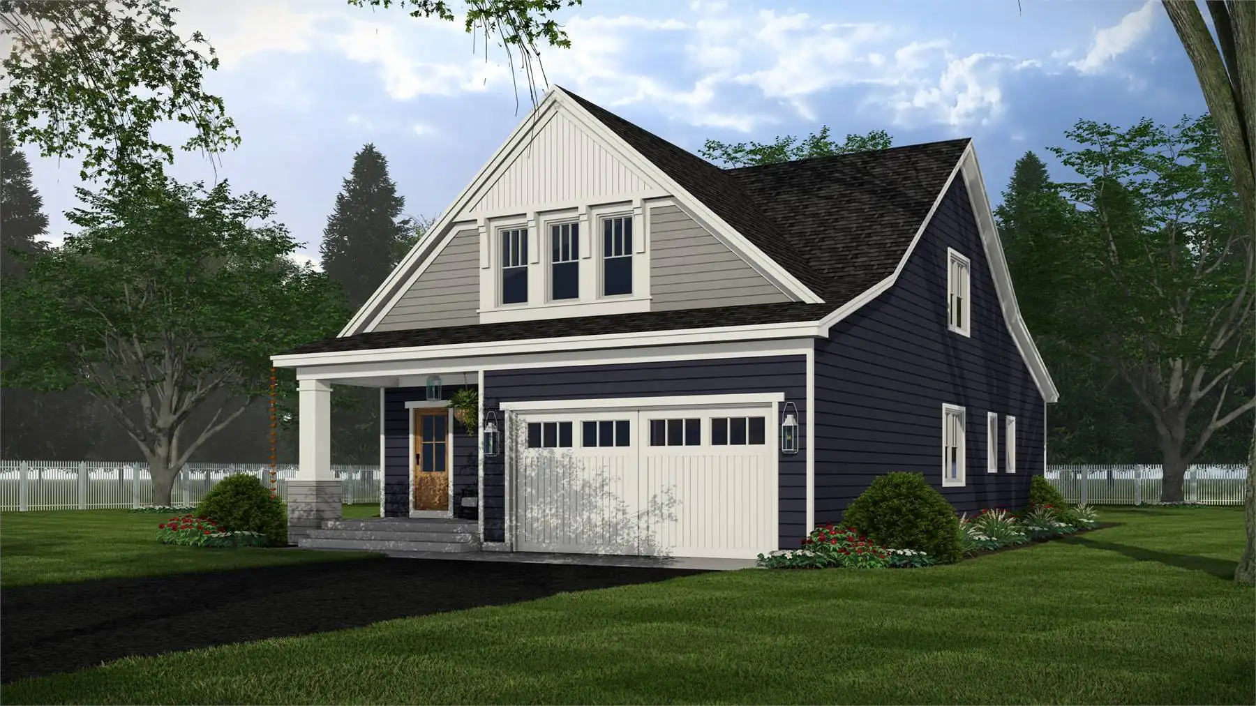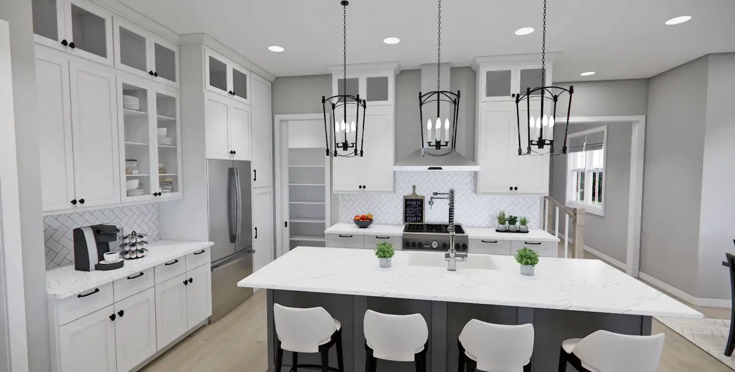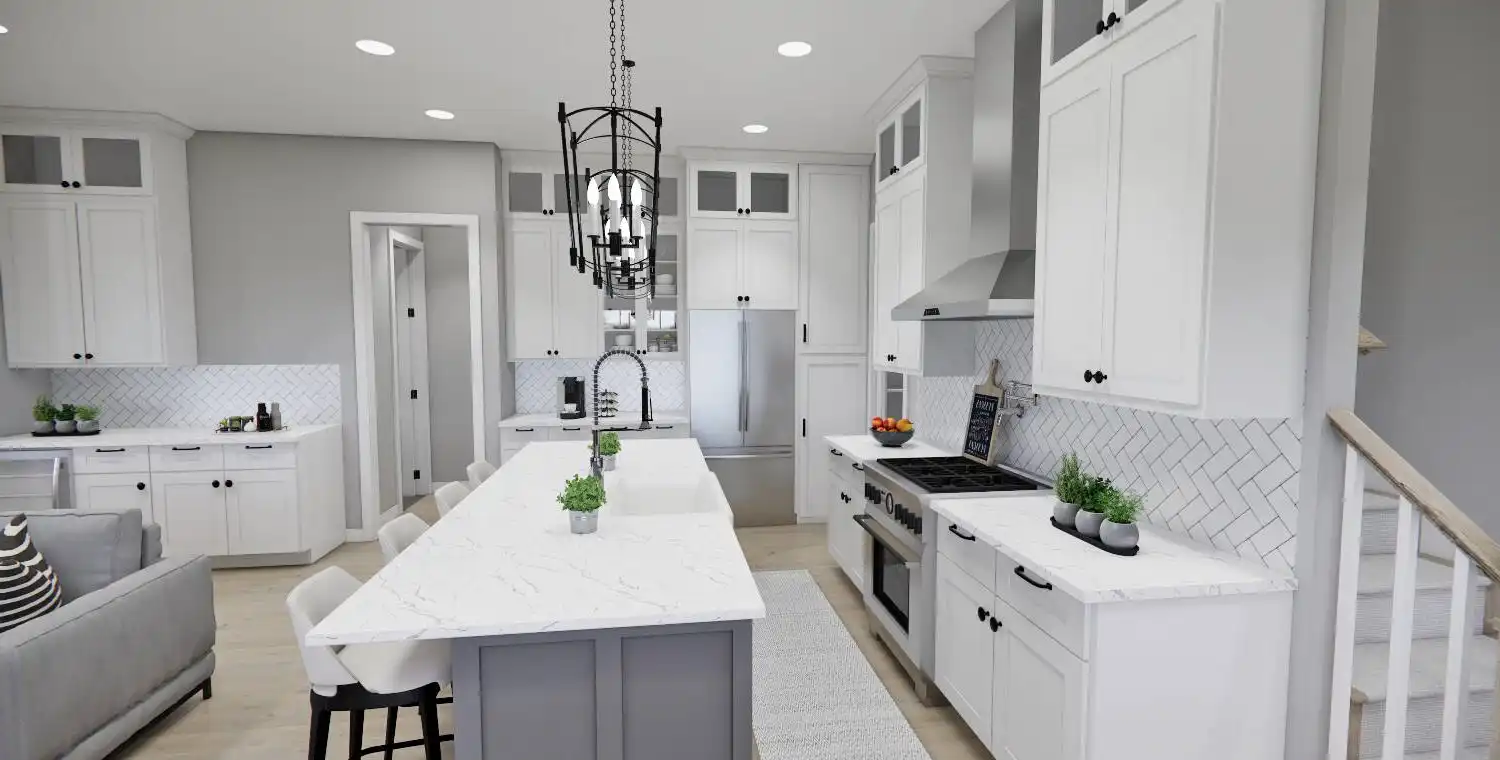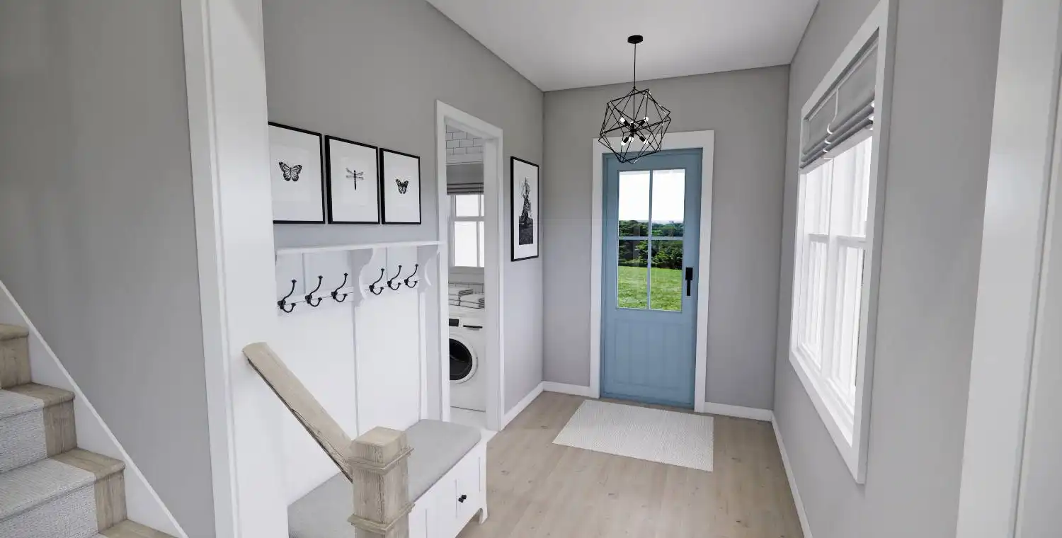 This 2,223 square foot home offers a thoughtfully designed layout with 4 bedrooms and 4 baths arranged across two functional levels. The open-concept main floor allows the great room, dining area, and kitchen to flow together seamlessly. Kitchen highlights include a center island, pantry storage, peninsula eating bar, and a breakfast nook that supports both daily routines and entertaining. The primary bedroom is located on the main floor and features a walk-in closet and a double vanity bath for added comfort. A dedicated home office and first-floor laundry room provide everyday convenience. Upstairs bedrooms are complemented by a loft or balcony that adds flexible living space. Covered porches at the front and rear complete the design with inviting areas to enjoy outdoor living.