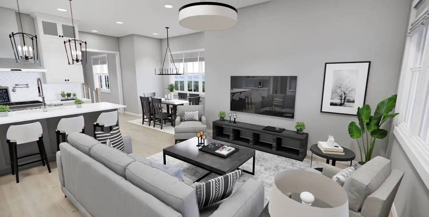 This thoughtfully designed home features 2,223 square feet of heated living space with 4 bedrooms and 4 baths arranged across two functional levels. The main floor highlights an open layout that allows the great room to flow naturally into the dining space and kitchen. Kitchen features include an island, peninsula eating bar, pantry, and a breakfast nook that supports both daily meals and entertaining. The primary suite on the main level offers a walk-in closet and a double vanity bath for added comfort. Upstairs, additional bedrooms and a loft area provide flexible options for family living, work, or relaxation. Practical details such as first-floor laundry and a front-entry attached garage add everyday convenience. Covered front and rear porches finish the design with inviting outdoor spaces that enhance the home’s warm, livable feel.