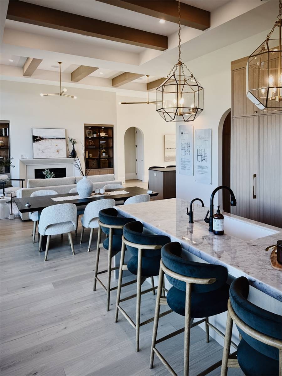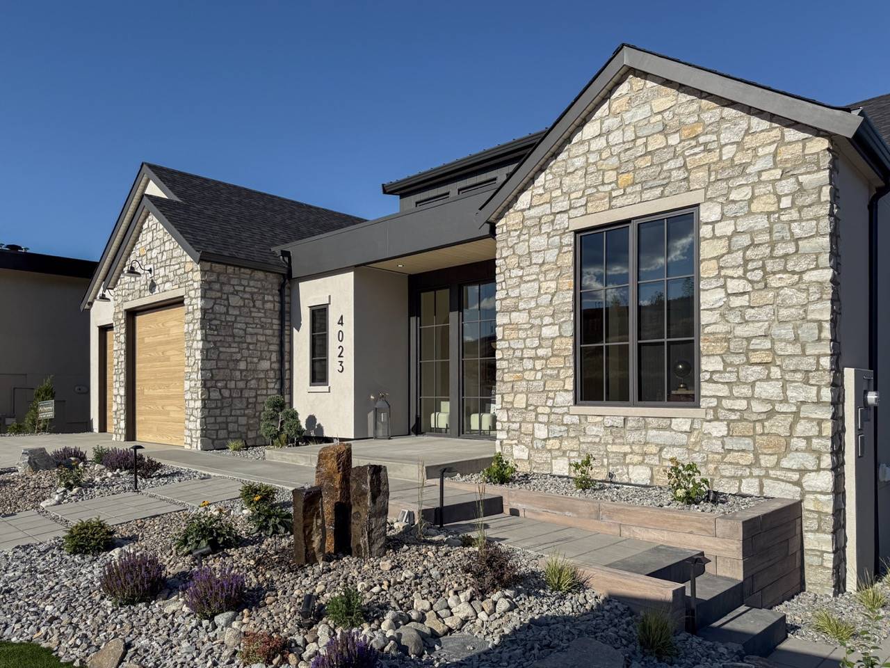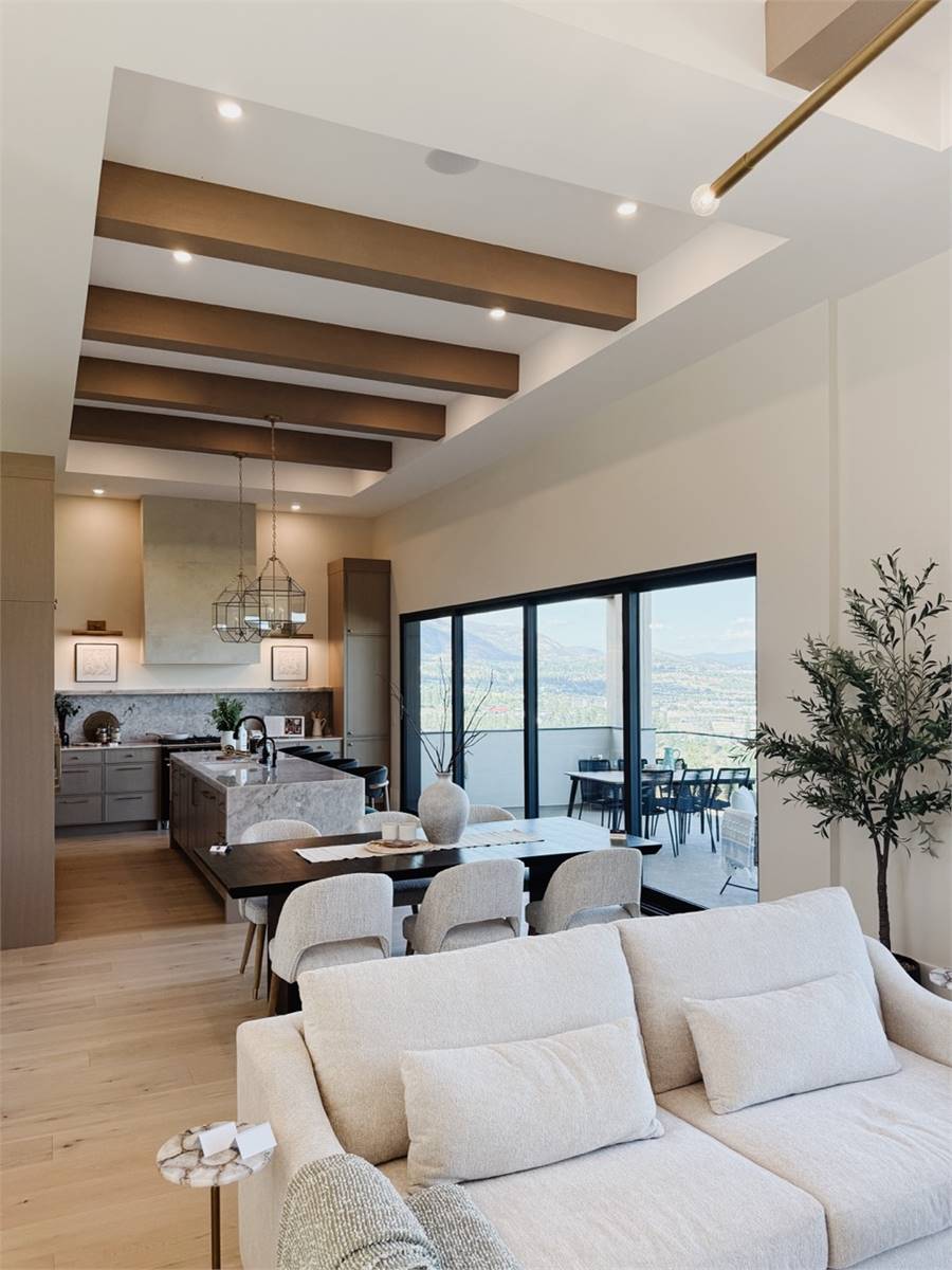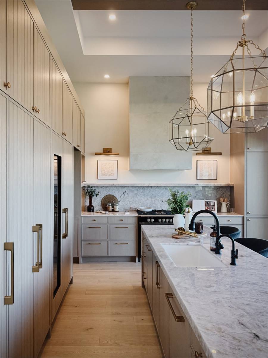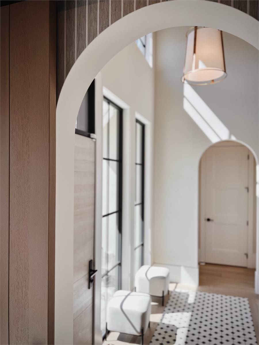 House Plan 10135, a GRAND ARDA AWARD (Model Homes) winning design, is a contemporary two-story home created for a sloping lot. The main level includes a vaulted foyer leading to a stylish bar area, a great room with a fireplace, and a modern kitchen with an island and walk-in pantry. This floor also features a primary bedroom with a spa-like ensuite and a versatile den or office. The lower level adds three bedrooms, two bathrooms, a recreation room with a bar, a gym area, and access to a covered patio, offering a seamless blend of comfort and modern indoor-outdoor living.