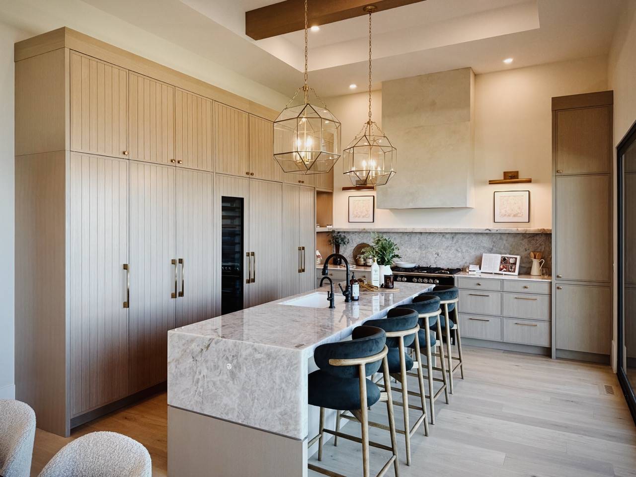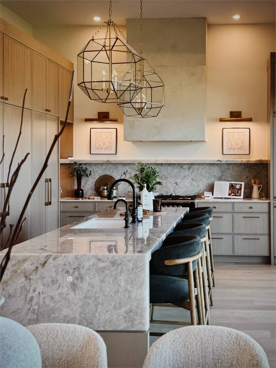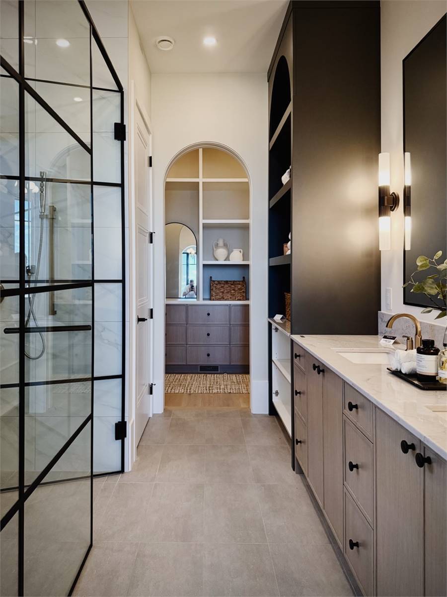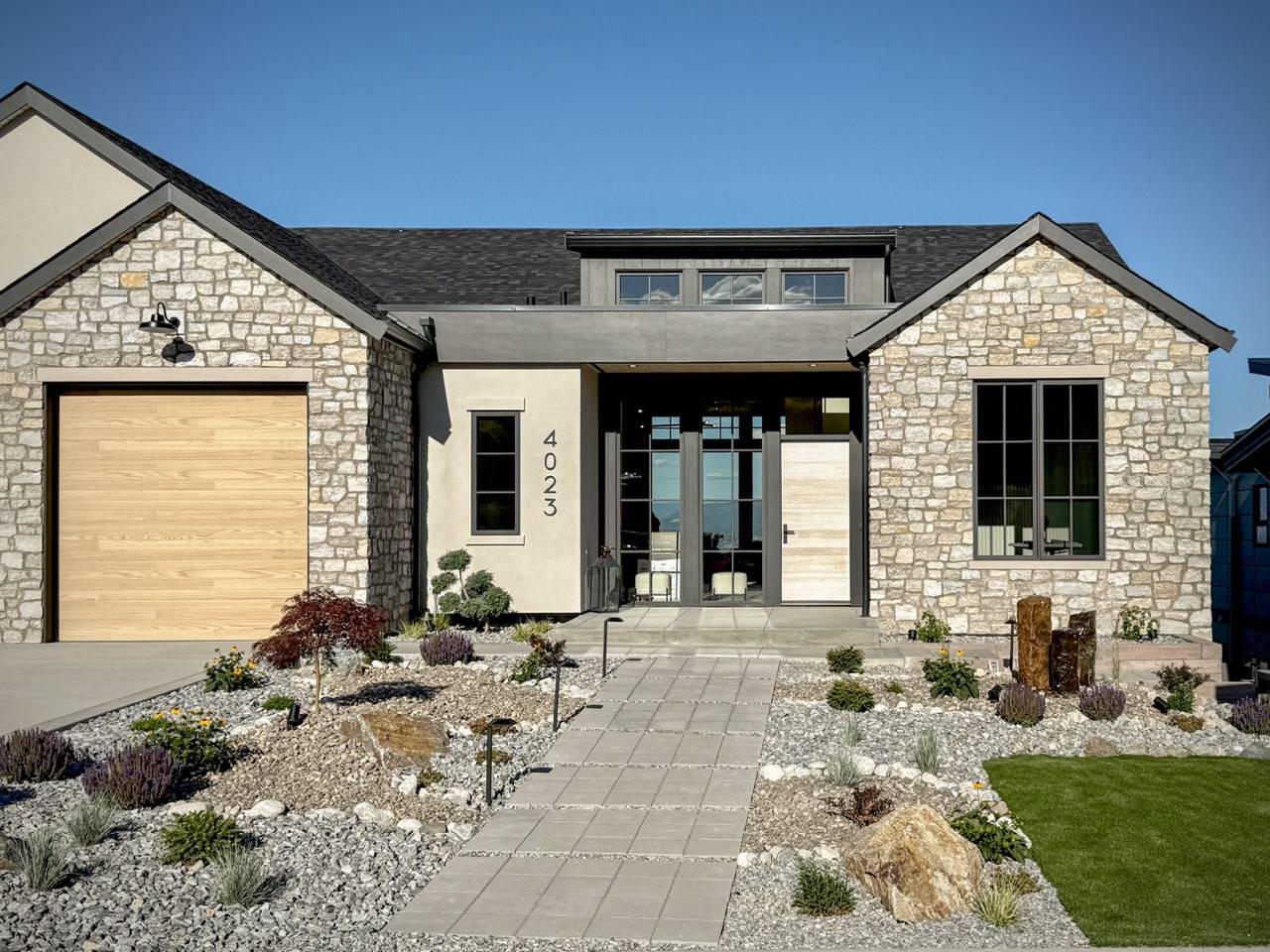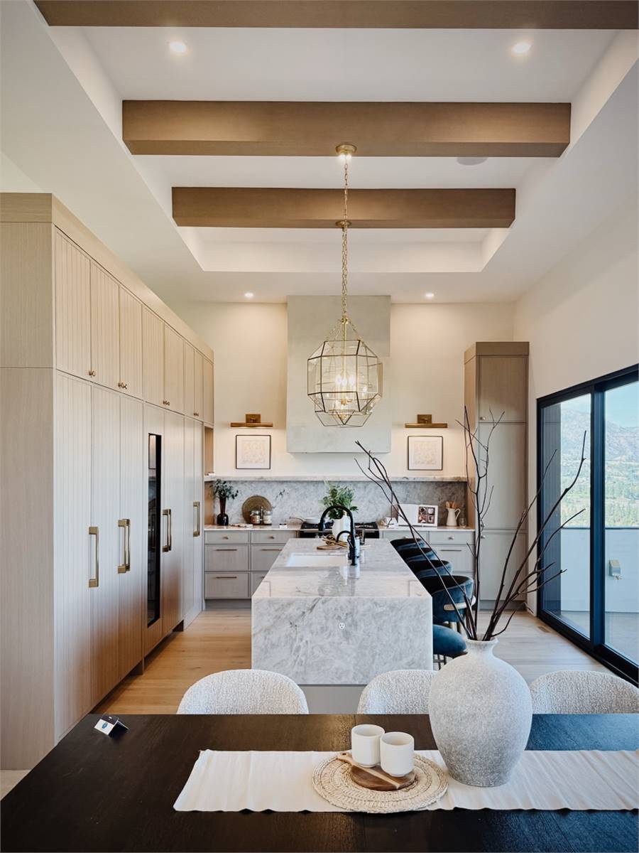 House Plan 10135, a GRAND ARDA AWARD (Model Homes) winning design, is a contemporary two-story home created for a sloping lot. The main level includes a vaulted foyer leading to a stylish bar area, a great room with a fireplace, and a modern kitchen with an island and walk-in pantry. This floor also features a primary bedroom with a spa-like ensuite and a versatile den or office. The lower level adds three bedrooms, two bathrooms, a recreation room with a bar, a gym area, and access to a covered patio, offering a seamless blend of comfort and modern indoor-outdoor living.