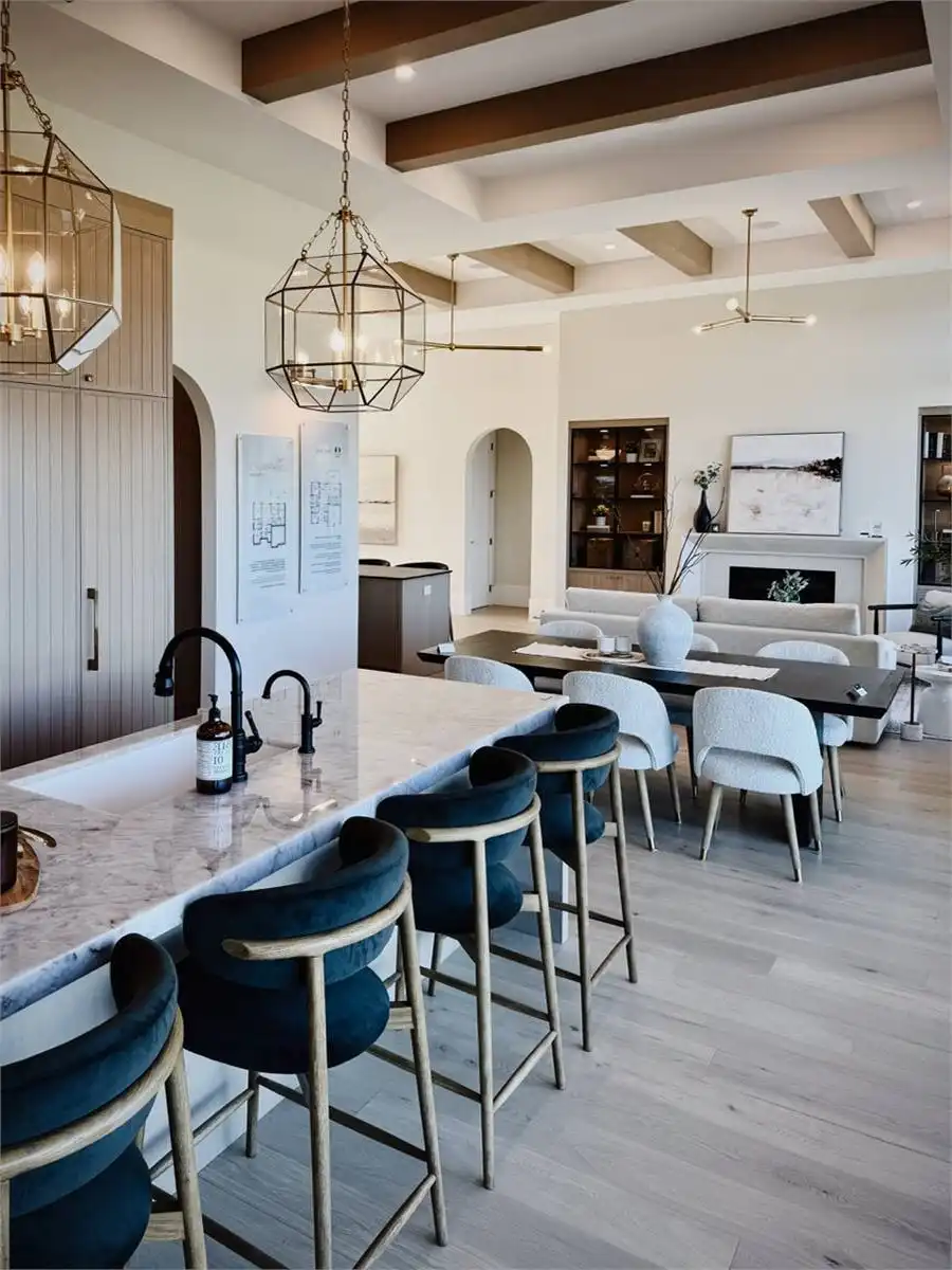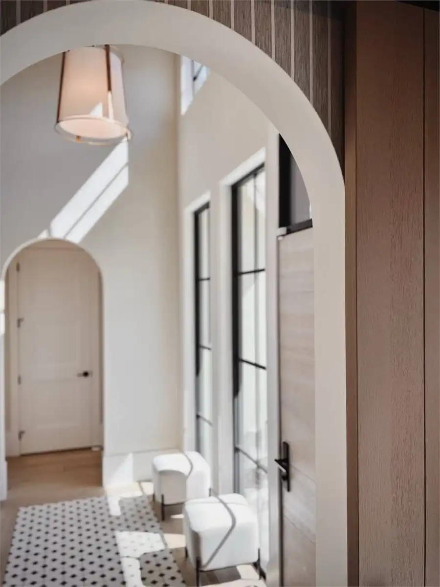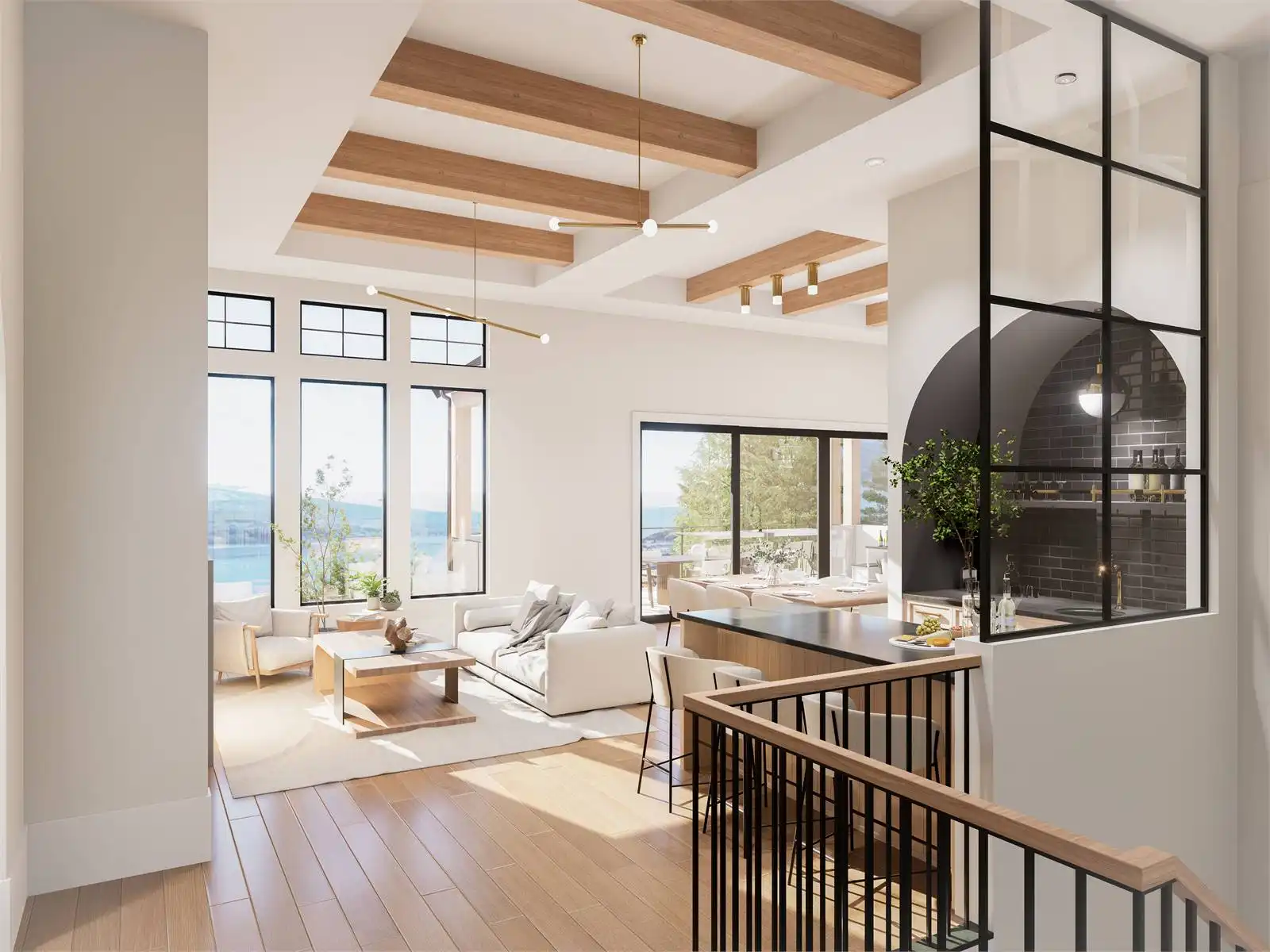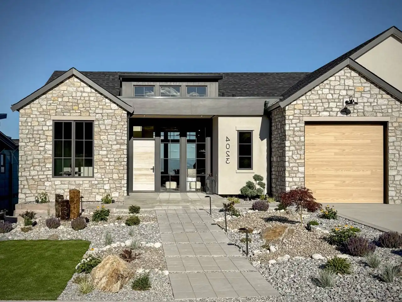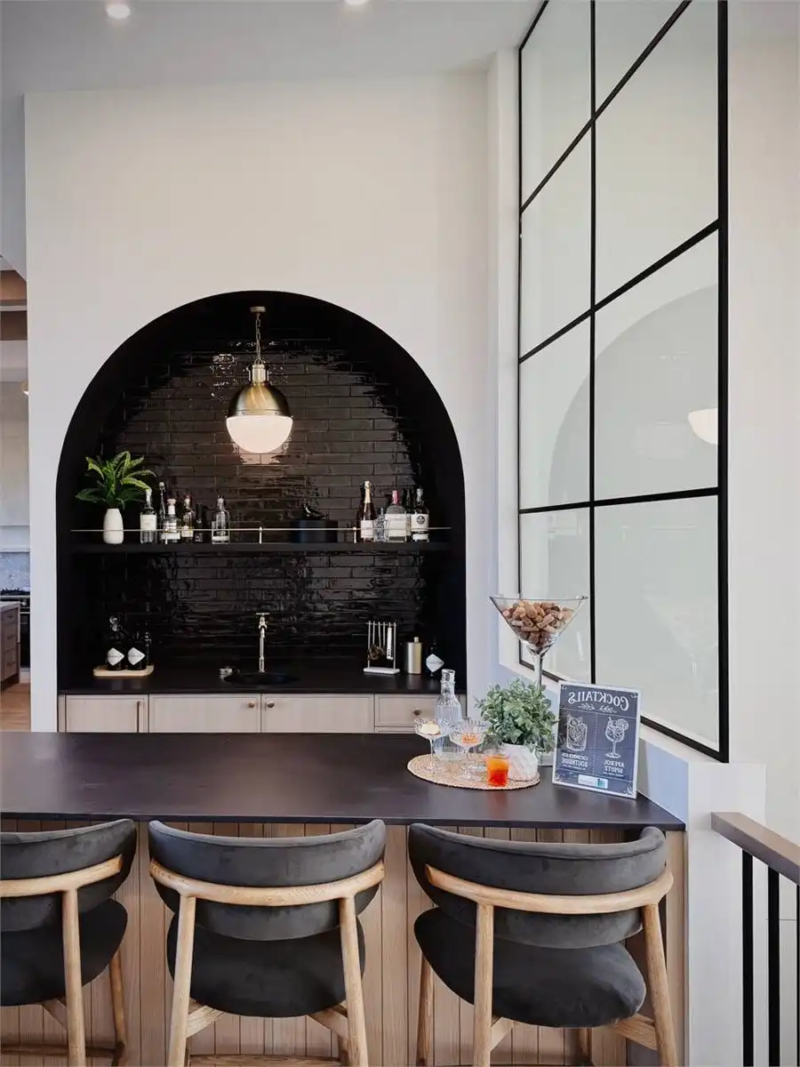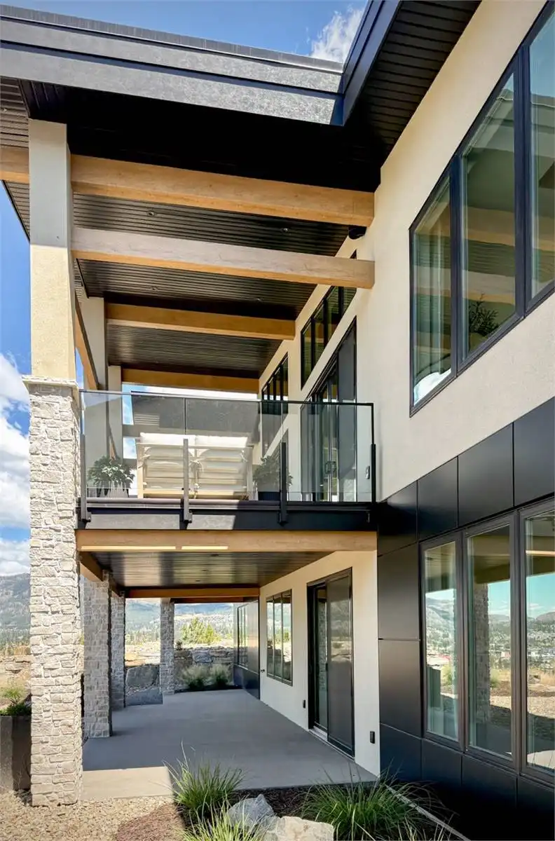 House Plan 10135, a GRAND ARDA AWARD (Model Homes) winning design, is a contemporary two-story home created for a sloping lot. The main level includes a vaulted foyer leading to a stylish bar area, a great room with a fireplace, and a modern kitchen with an island and walk-in pantry. This floor also features a primary bedroom with a spa-like ensuite and a versatile den or office. The lower level adds three bedrooms, two bathrooms, a recreation room with a bar, a gym area, and access to a covered patio, offering a seamless blend of comfort and modern indoor-outdoor living.