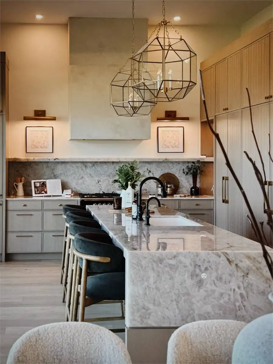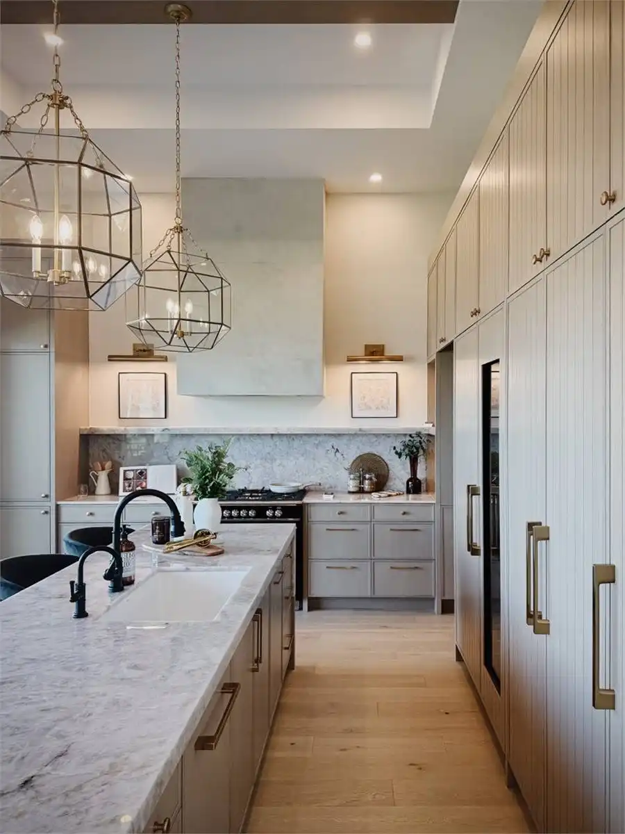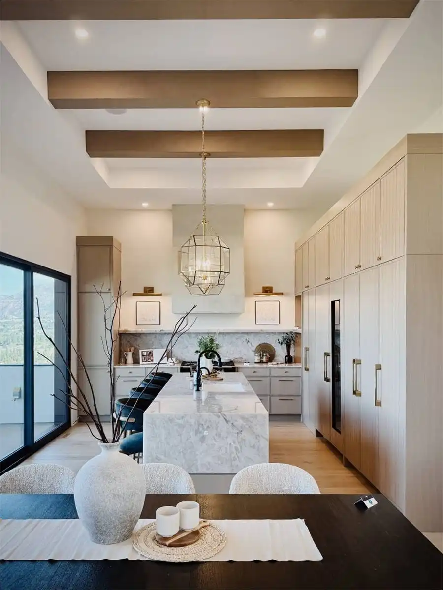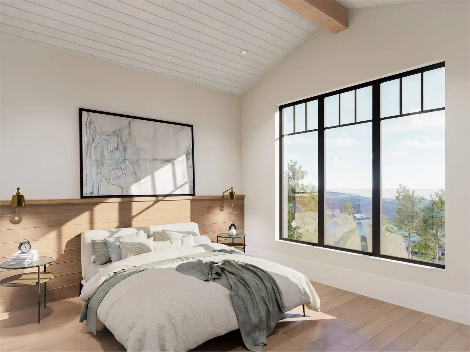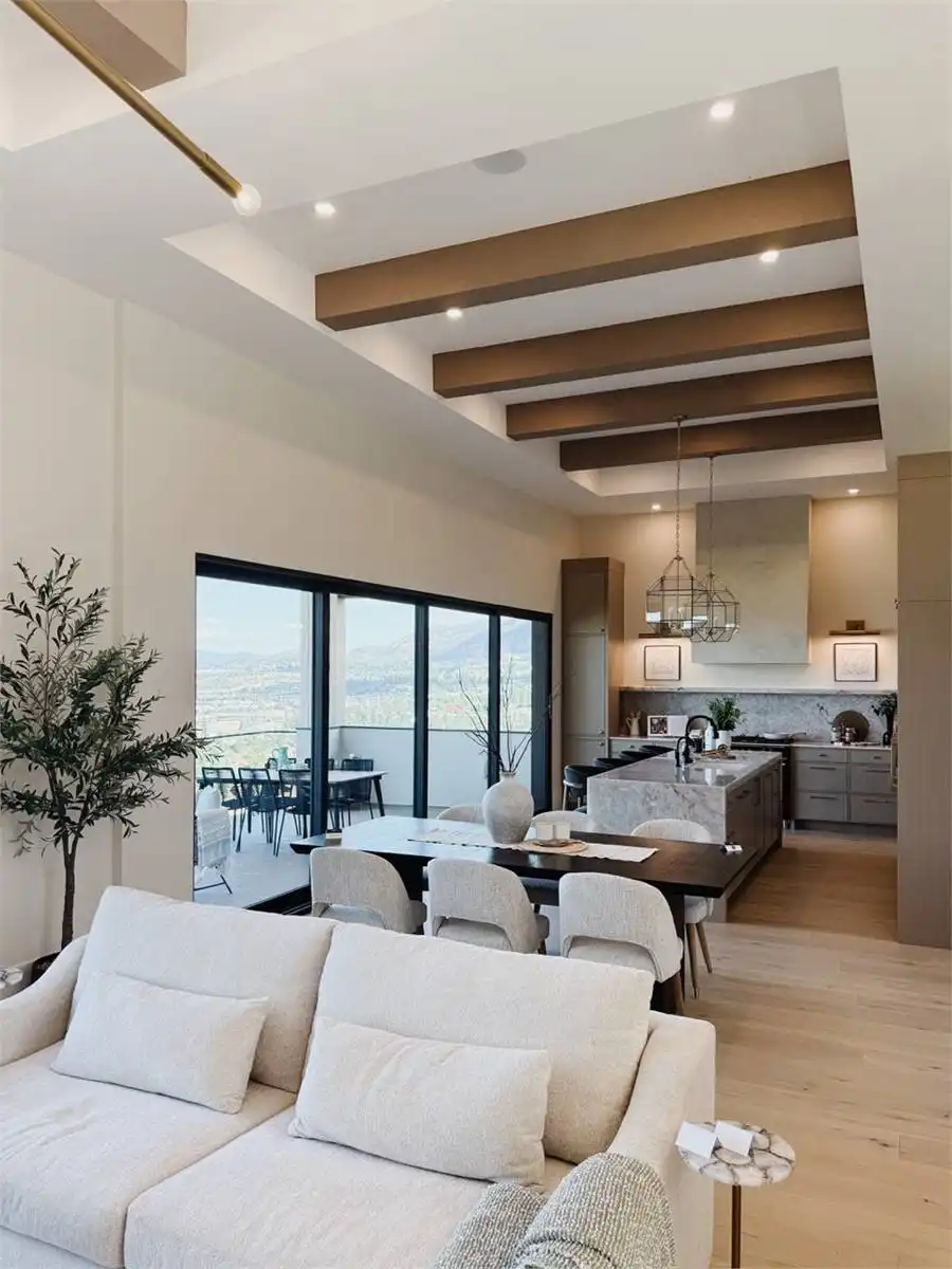 House Plan 10135, a GRAND ARDA AWARD (Model Homes) winning design, is a contemporary two-story home created for a sloping lot. The main level includes a vaulted foyer leading to a stylish bar area, a great room with a fireplace, and a modern kitchen with an island and walk-in pantry. This floor also features a primary bedroom with a spa-like ensuite and a versatile den or office. The lower level adds three bedrooms, two bathrooms, a recreation room with a bar, a gym area, and access to a covered patio, offering a seamless blend of comfort and modern indoor-outdoor living.