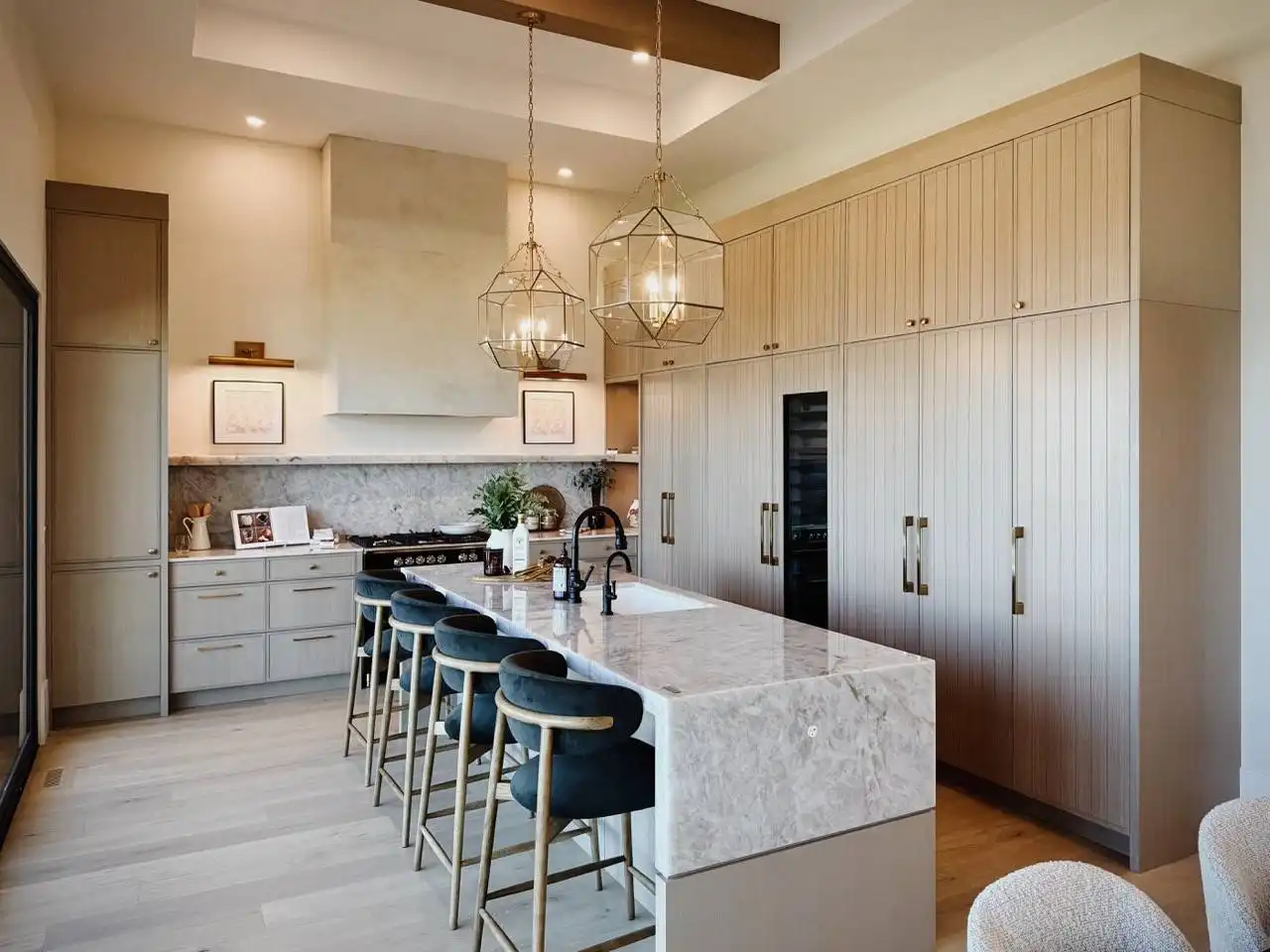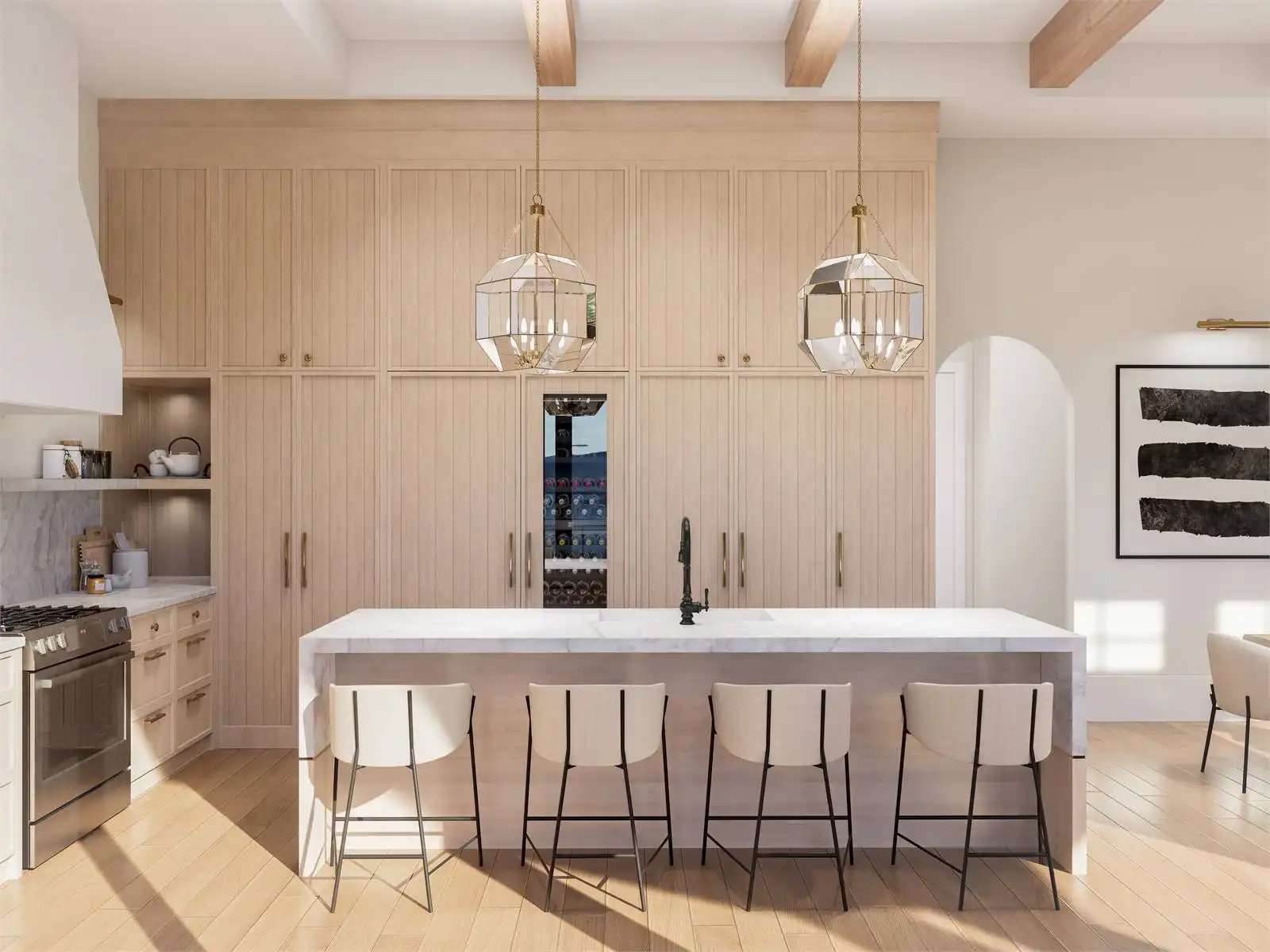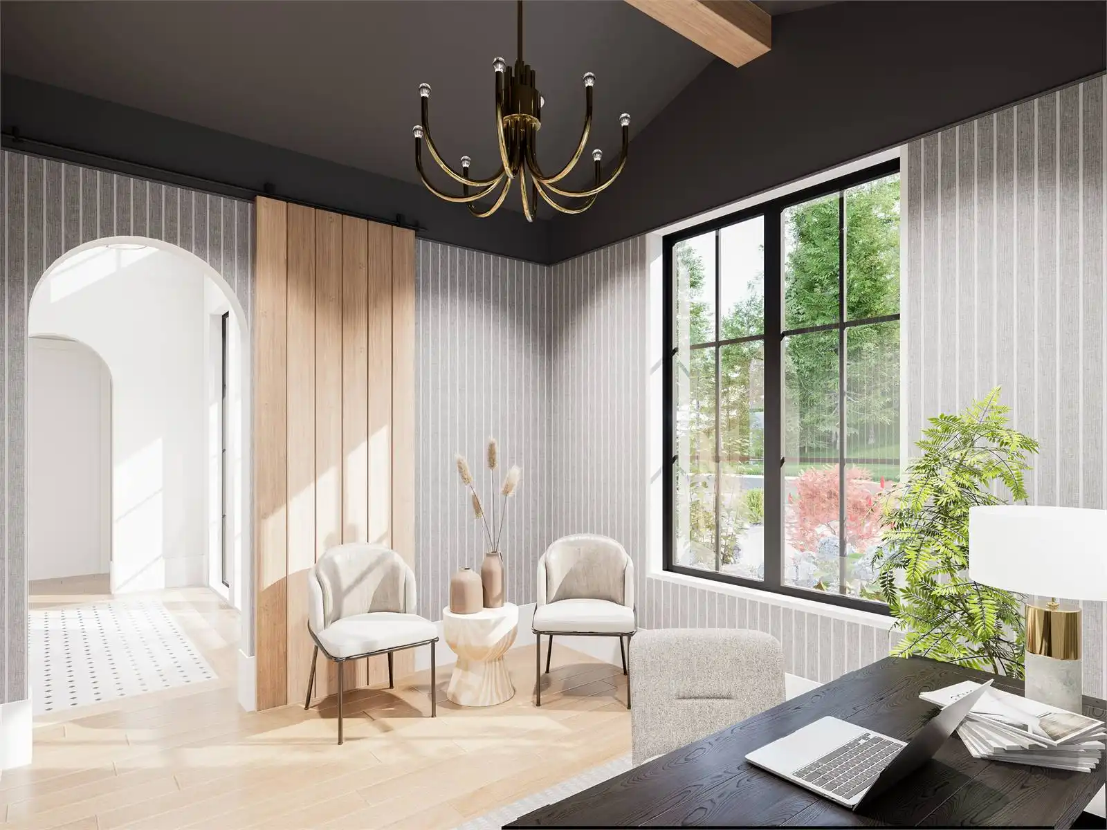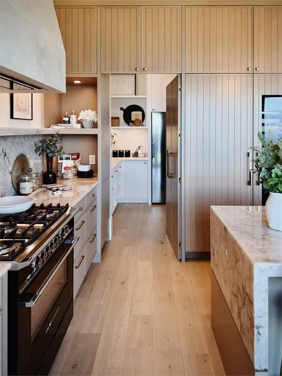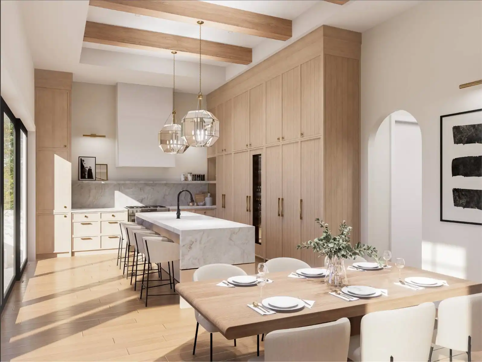 House Plan 10135, a GRAND ARDA AWARD (Model Homes) winning design, is a contemporary two-story home created for a sloping lot. The main level includes a vaulted foyer leading to a stylish bar area, a great room with a fireplace, and a modern kitchen with an island and walk-in pantry. This floor also features a primary bedroom with a spa-like ensuite and a versatile den or office. The lower level adds three bedrooms, two bathrooms, a recreation room with a bar, a gym area, and access to a covered patio, offering a seamless blend of comfort and modern indoor-outdoor living.