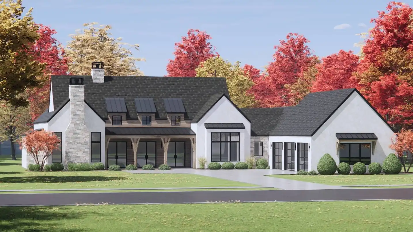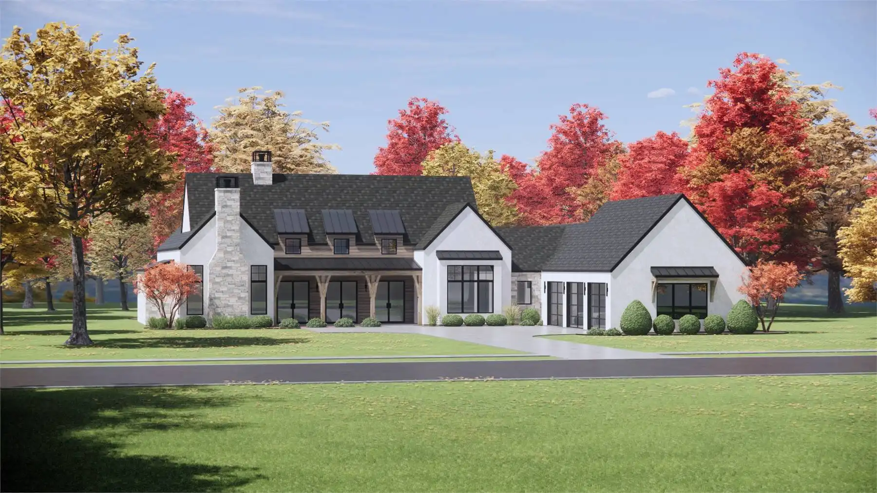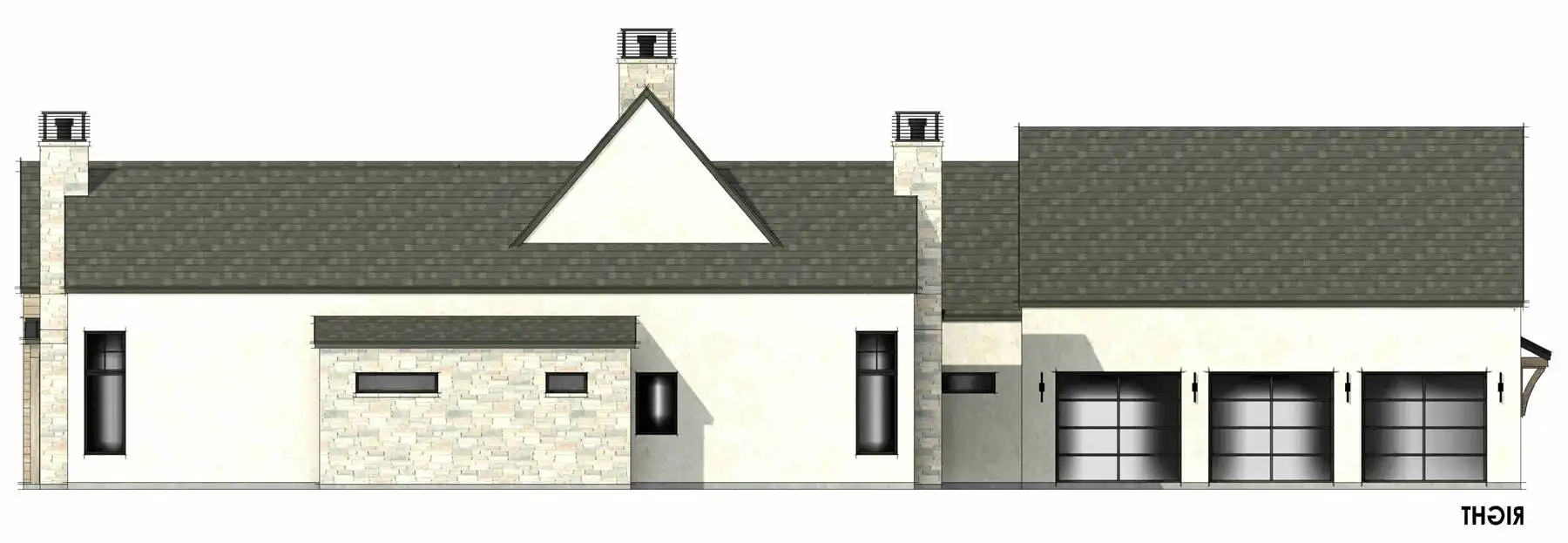 Need a luxurious one-story home? Here's House Plan 10143, a 4,038-square-foot ranch with four bedrooms and four-and-a-half bathrooms! Just check out that amazing great room with an island kitchen, cathedral vaulted living, and dining area with a bench. The primary suite stands out from the bedroom with a vaulted ceiling and fireplace to the bathroom with separate tub and shower, dual vanities, a toilet closet, and a walk-in closet. The other three bedrooms across the house are also private suites! An office, a game room, a bonus room, and a huge back porch round out this home.