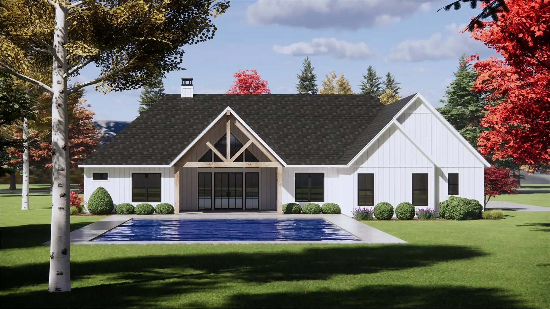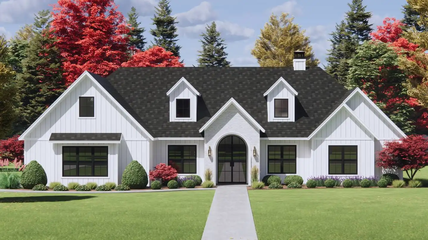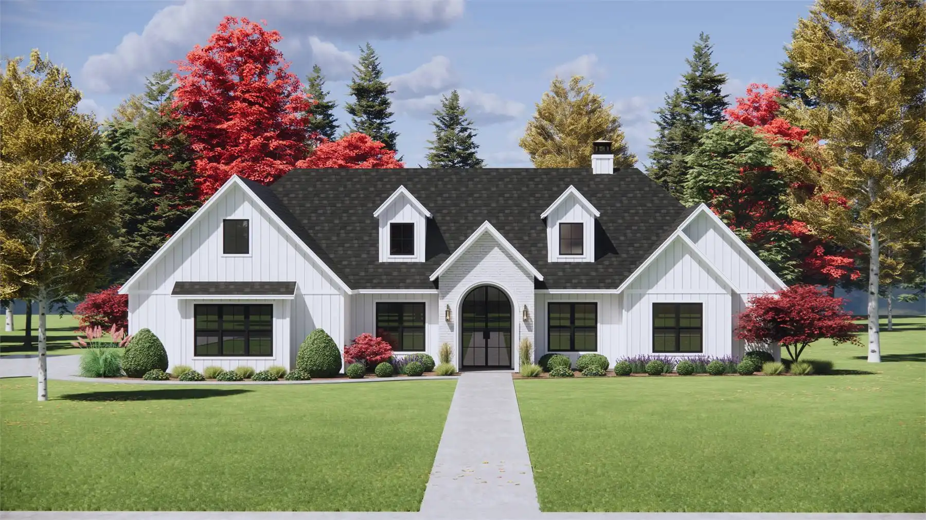 Need a larger home with a lot to appreciate? Give House Plan 10147 a try! At 3,116 square feet and with four bedrooms and three-and-a-half bathrooms, it's a great size for a family that needs room to spread out. The layout includes a vaulted great room, an island kitchen with a walk-in pantry, a sunny dining area, an office off the foyer, a private primary suite with a five-piece bath and a vaulted bedroom, a smaller suite, a pair of Jack-and-Jill bedrooms, and a bonus. If that's not enough, don't overlook the large back covered porch!