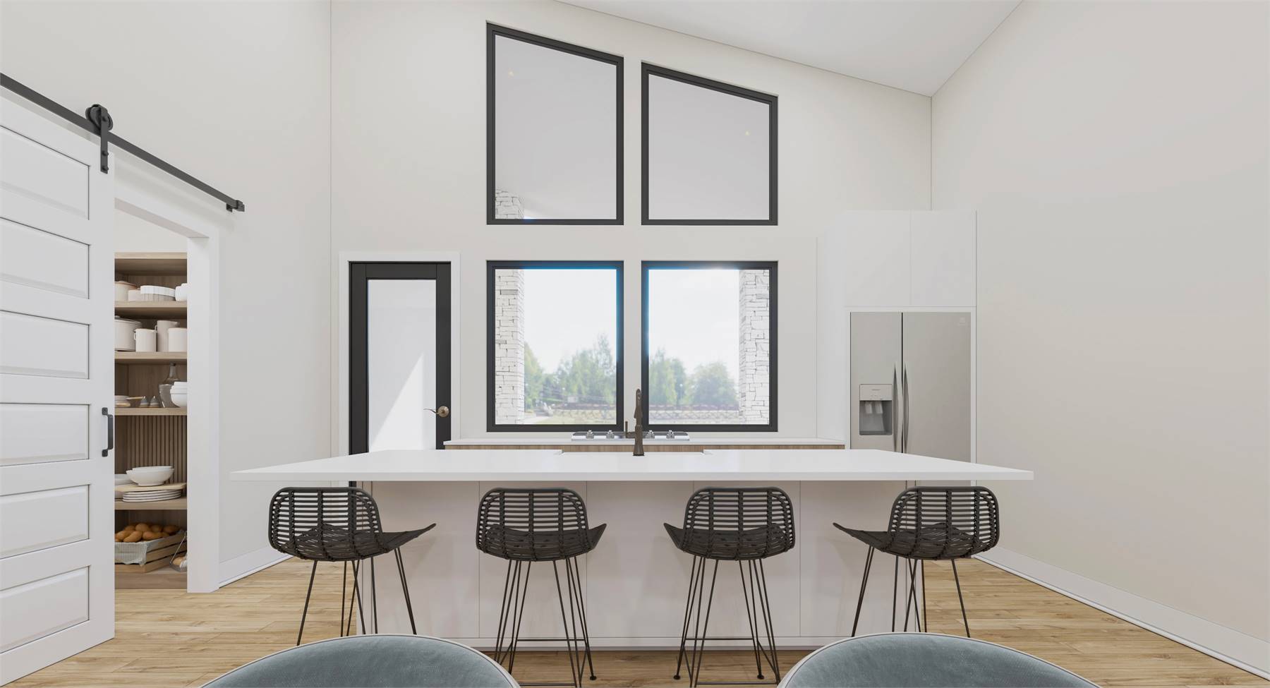 House Plan 10153 is a great modern ranch that's made to serve a family well with 2,047 square feet, four split bedrooms, and three bathrooms. The open-concept floor plan in the center of the house has totally clear sightlines from the family room with a fireplace, to the dining area, to the island kitchen in back with a walk-in pantry and access to the back porch. A vaulted ceiling spreads across the whole great room and back porch! The mudroom hallway on one side of this connects to the two-car garage, the laundry room, and the primary suite with a vaulted bedroom and a luxurious Euro-style bath. On the opposite side of the house, there's a pair of Jack-and-Jill bedrooms as well as another vaulted bedroom beside a full hall bath.