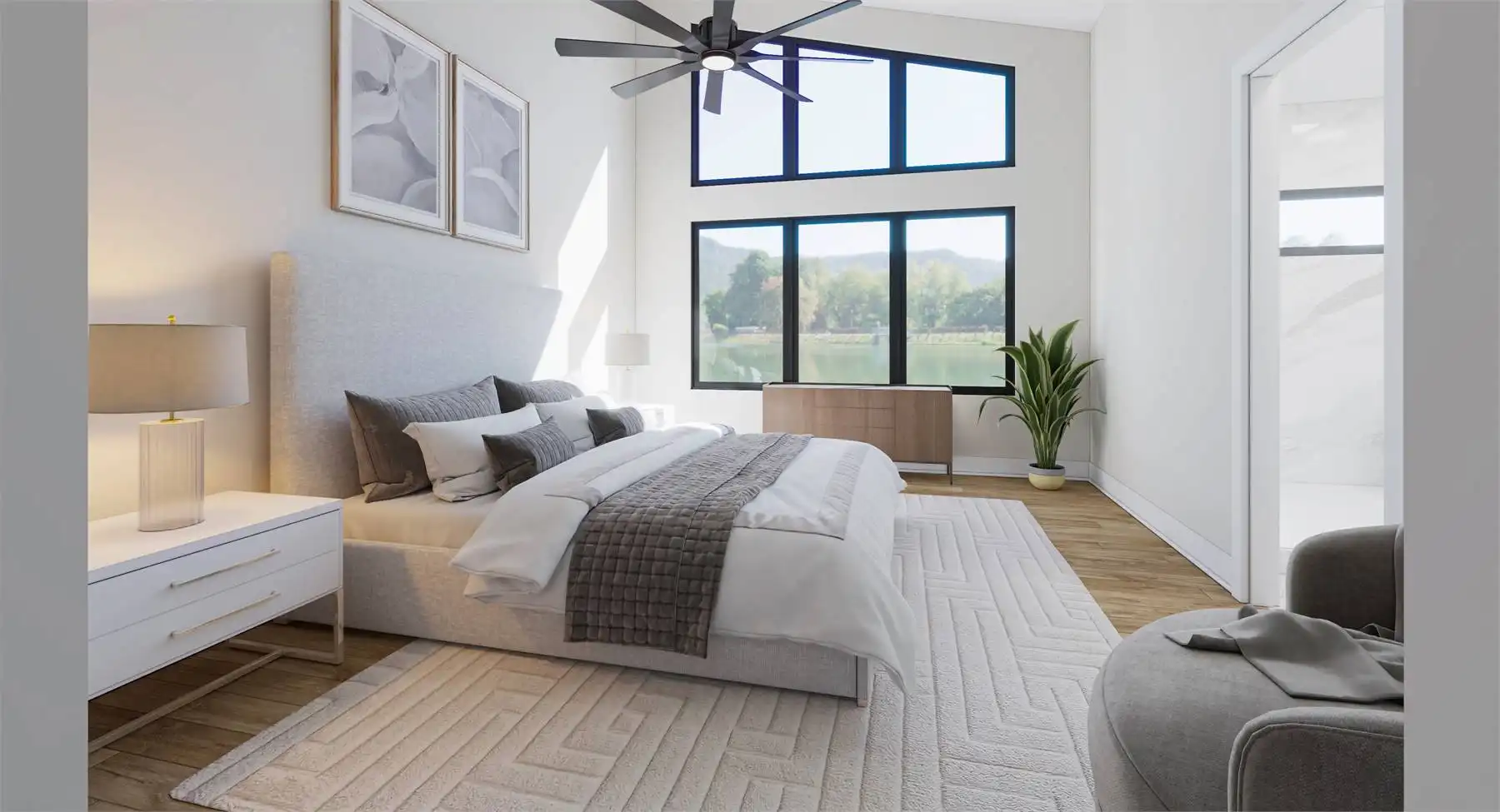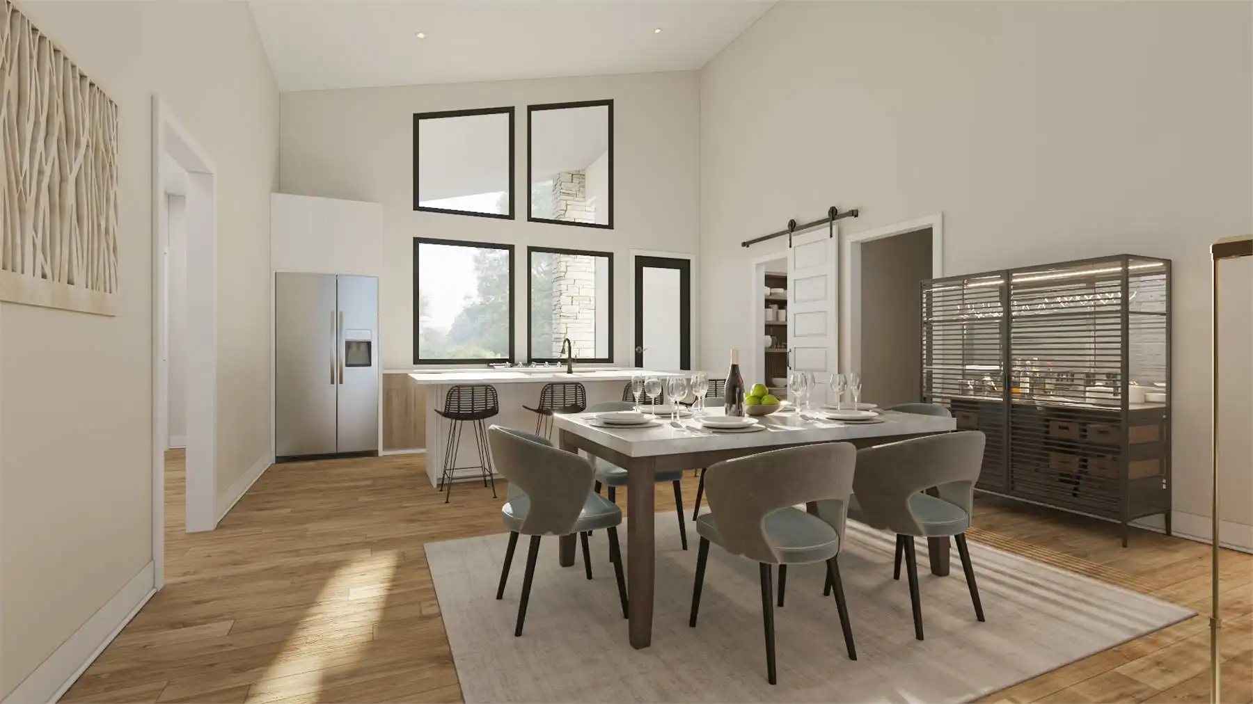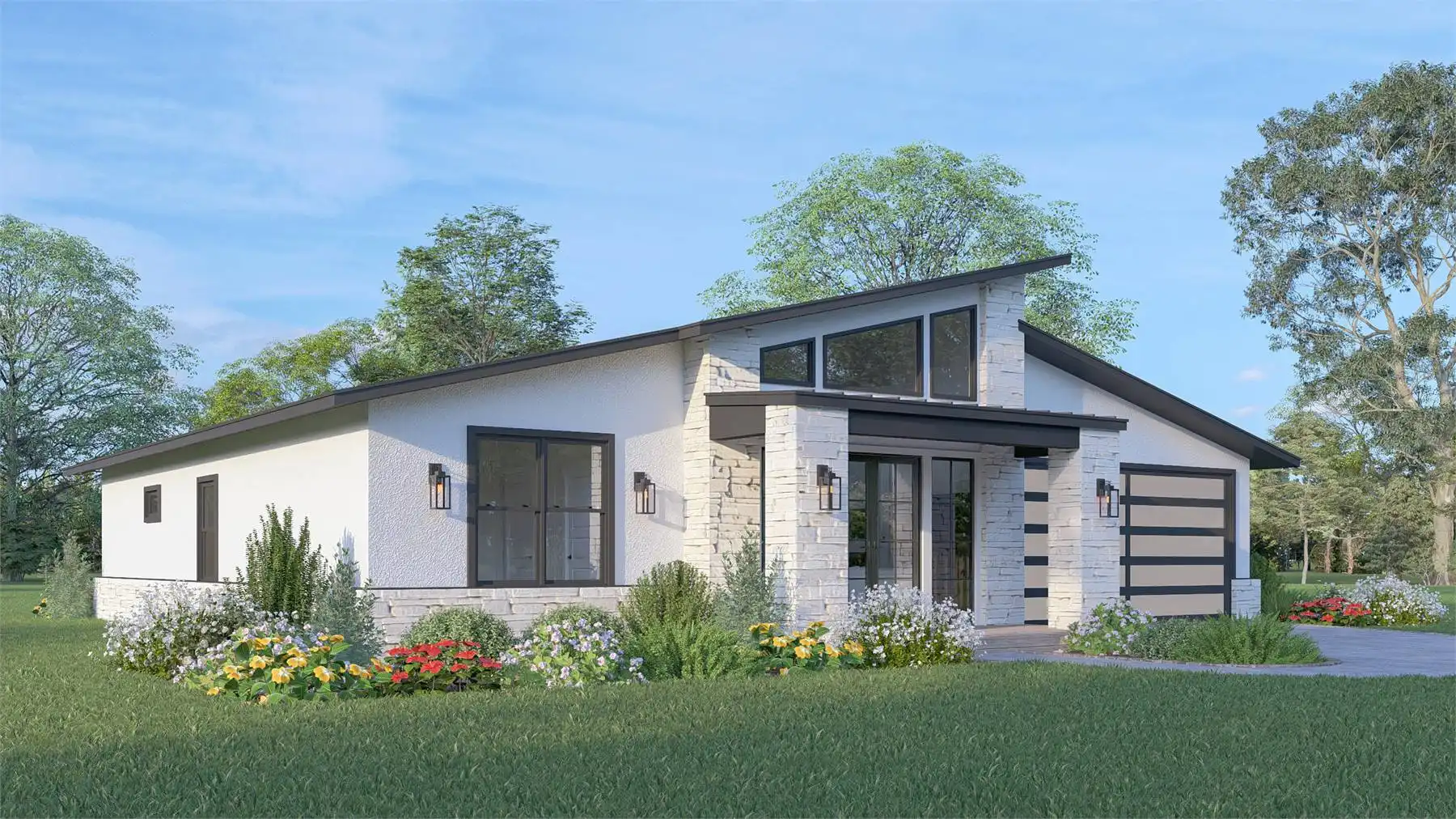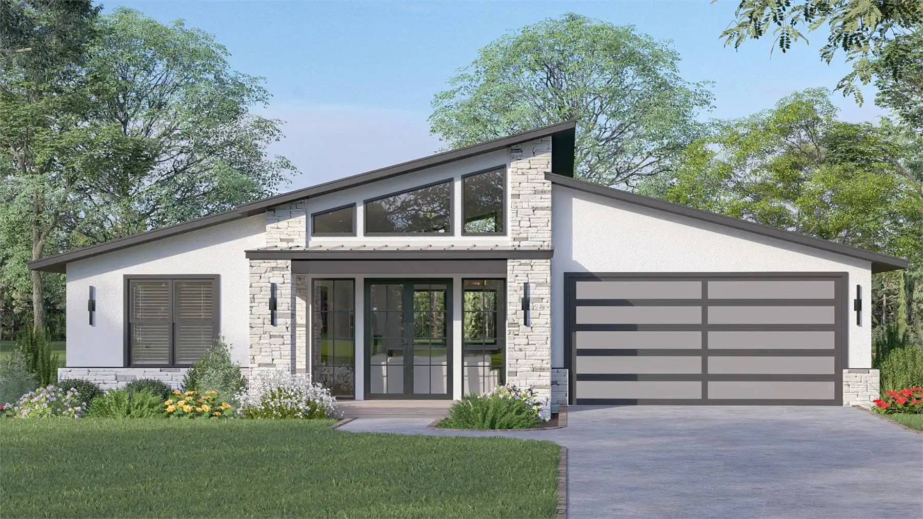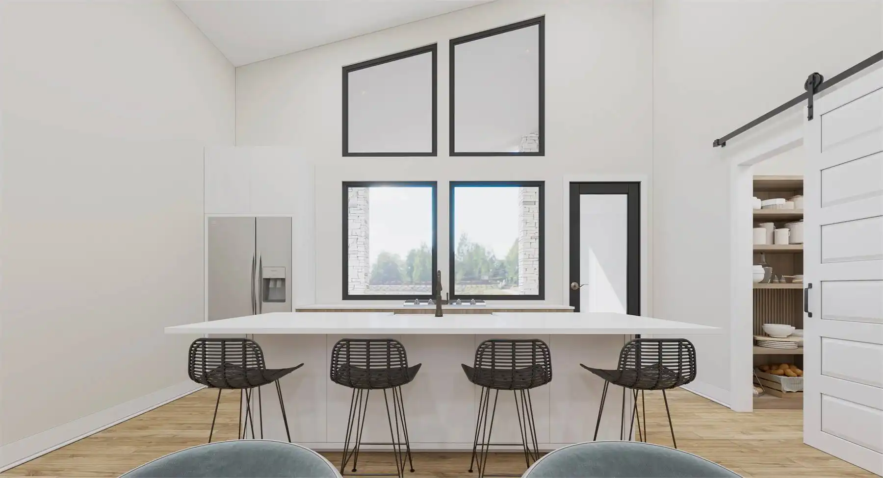 House Plan 10153 is a great modern ranch that's made to serve a family well with 2,047 square feet, four split bedrooms, and three bathrooms. The open-concept floor plan in the center of the house has totally clear sightlines from the family room with a fireplace, to the dining area, to the island kitchen in back with a walk-in pantry and access to the back porch. A vaulted ceiling spreads across the whole great room and back porch! The mudroom hallway on one side of this connects to the two-car garage, the laundry room, and the primary suite with a vaulted bedroom and a luxurious Euro-style bath. On the opposite side of the house, there's a pair of Jack-and-Jill bedrooms as well as another vaulted bedroom beside a full hall bath.