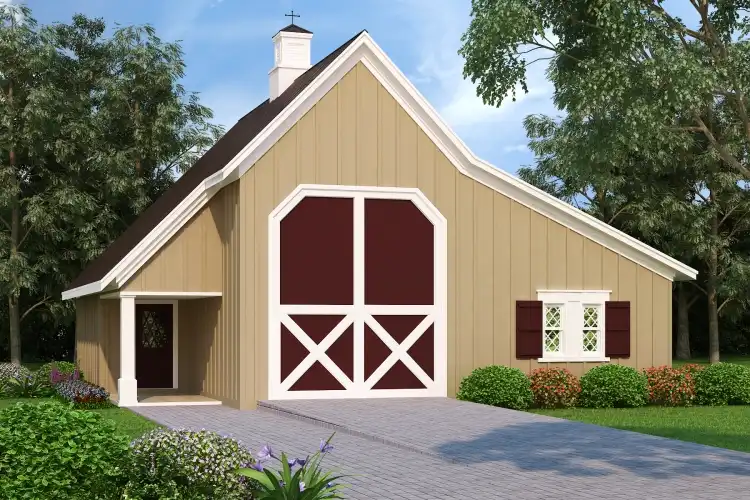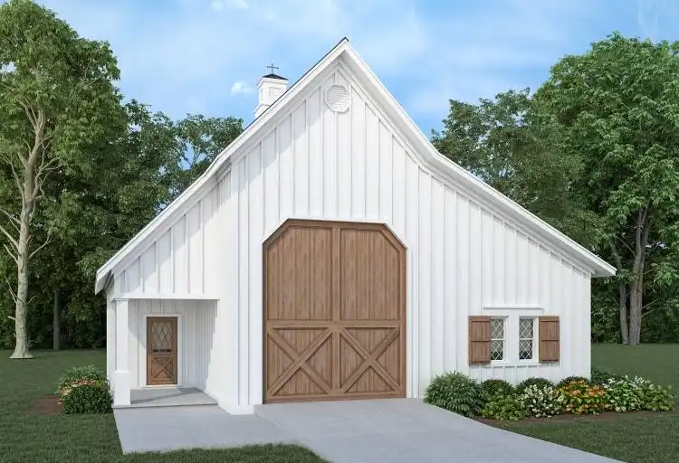 Need a modest barndo with room for an RV? Check out House Plan 10154! This 1,568-square-foot design offers an RV garage in front, a carport back, a courtyard on the side, and two levels of living space with three bedrooms and two-and-a-half bathrooms. The layout places the open-concept living areas beside the RV garage and the primary suite in back, connected by a memory hallway that wraps around to the foyer. Upstairs, there's a pair of Jack-and-Jill bedrooms and a hallway with a built-in desk. This is a wonderful home for families of all ages!