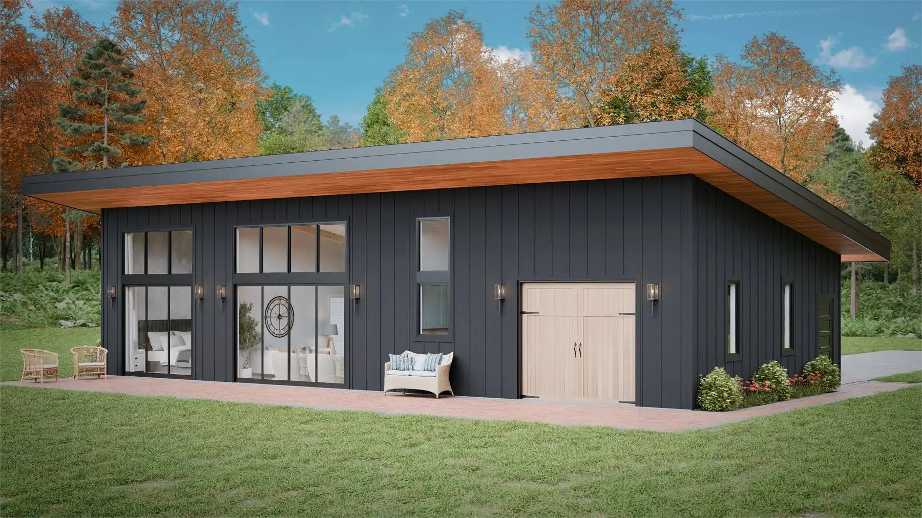 House Plan 10155 is a smart, one-bedroom barndominium that blends affordability with modern design. Its sleek structure and efficient use of materials make it perfect for first-time buyers or empty nesters seeking a stylish yet minimal lifestyle.