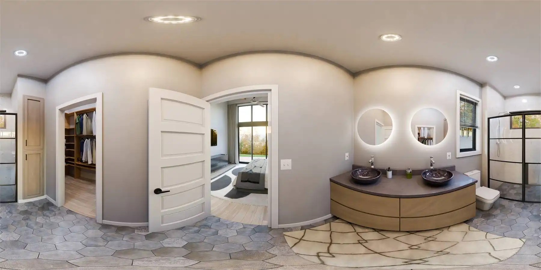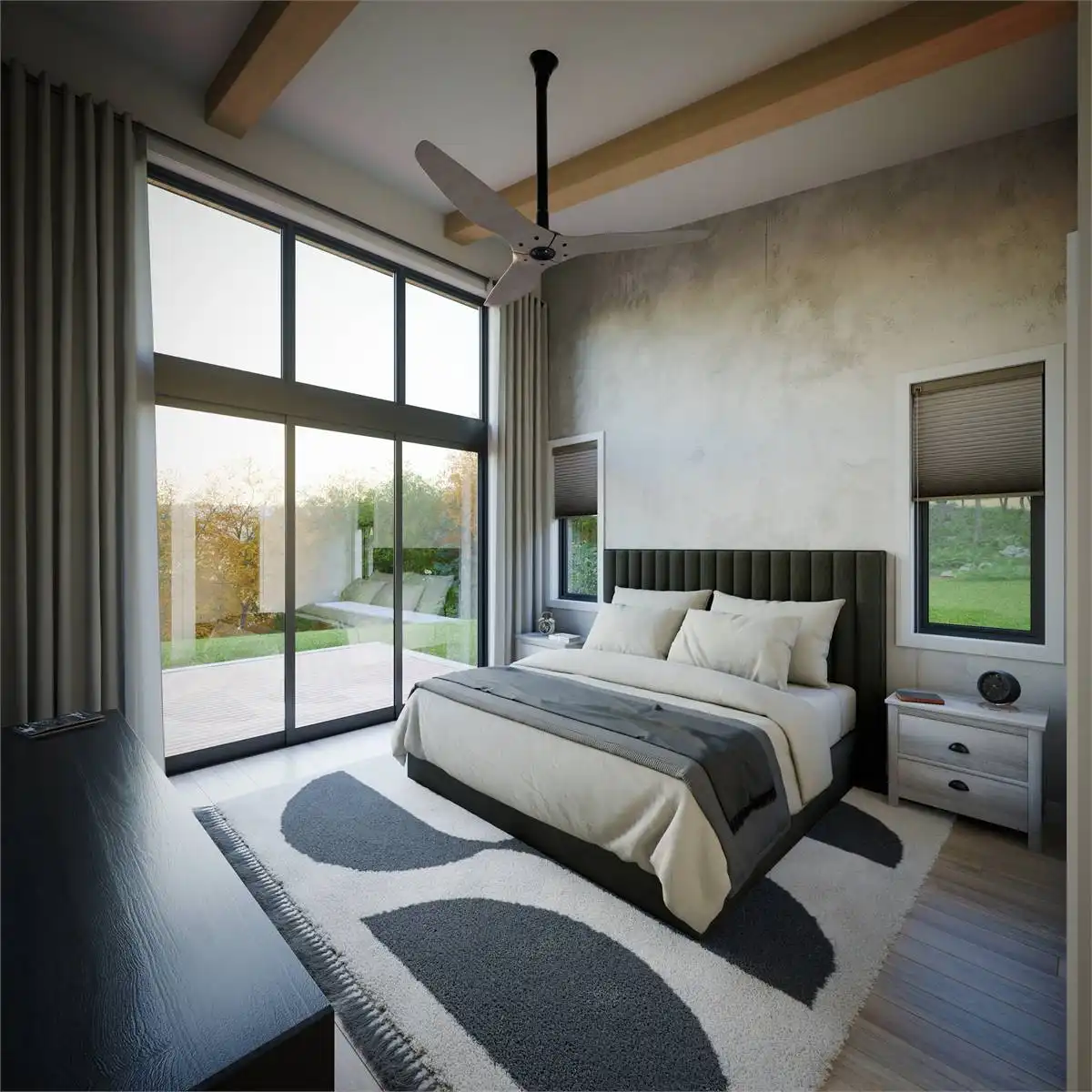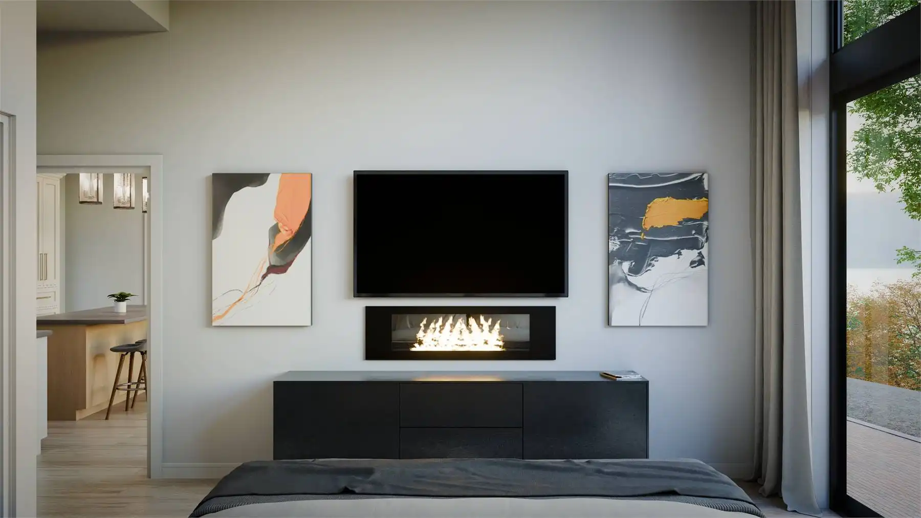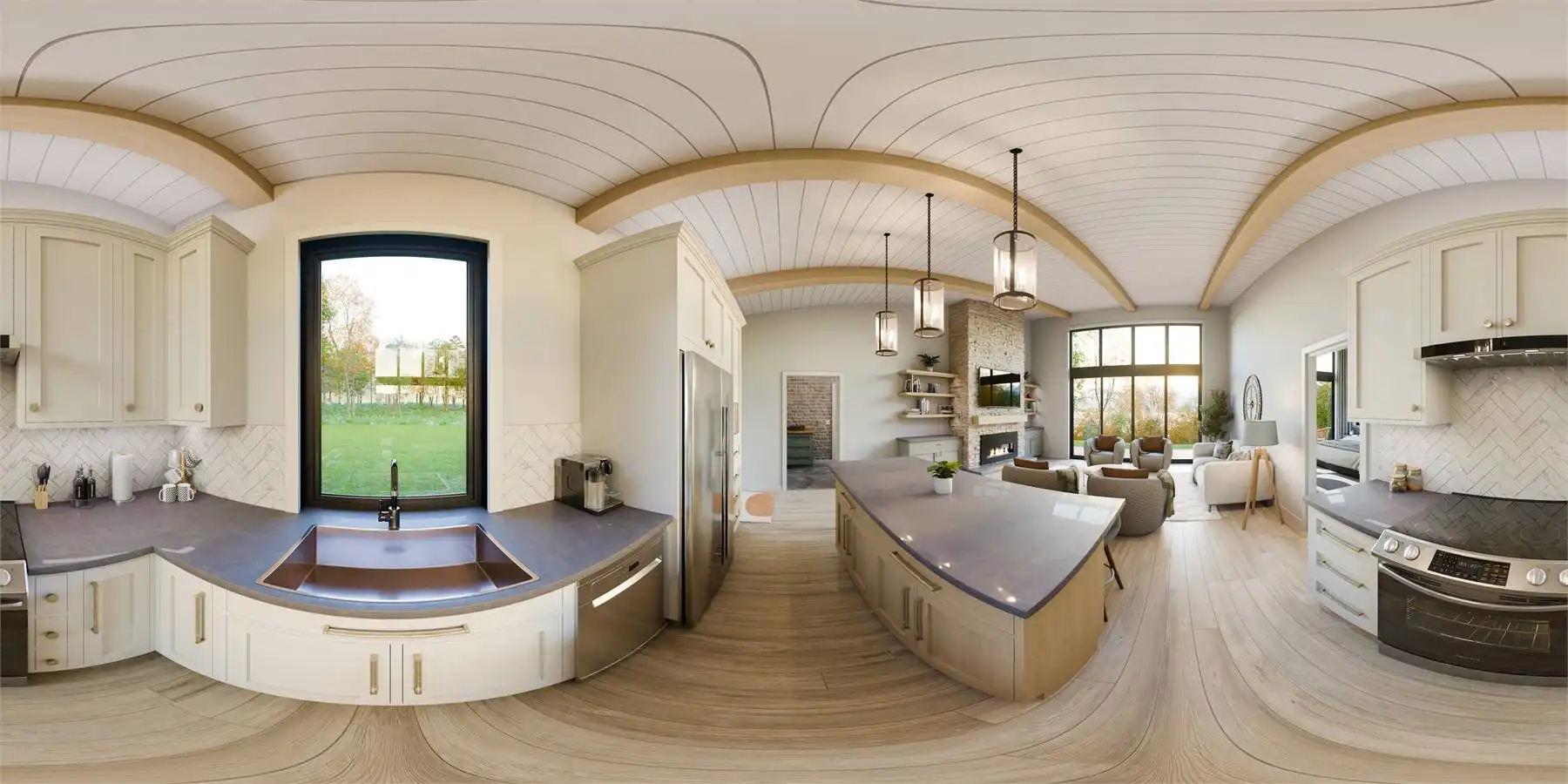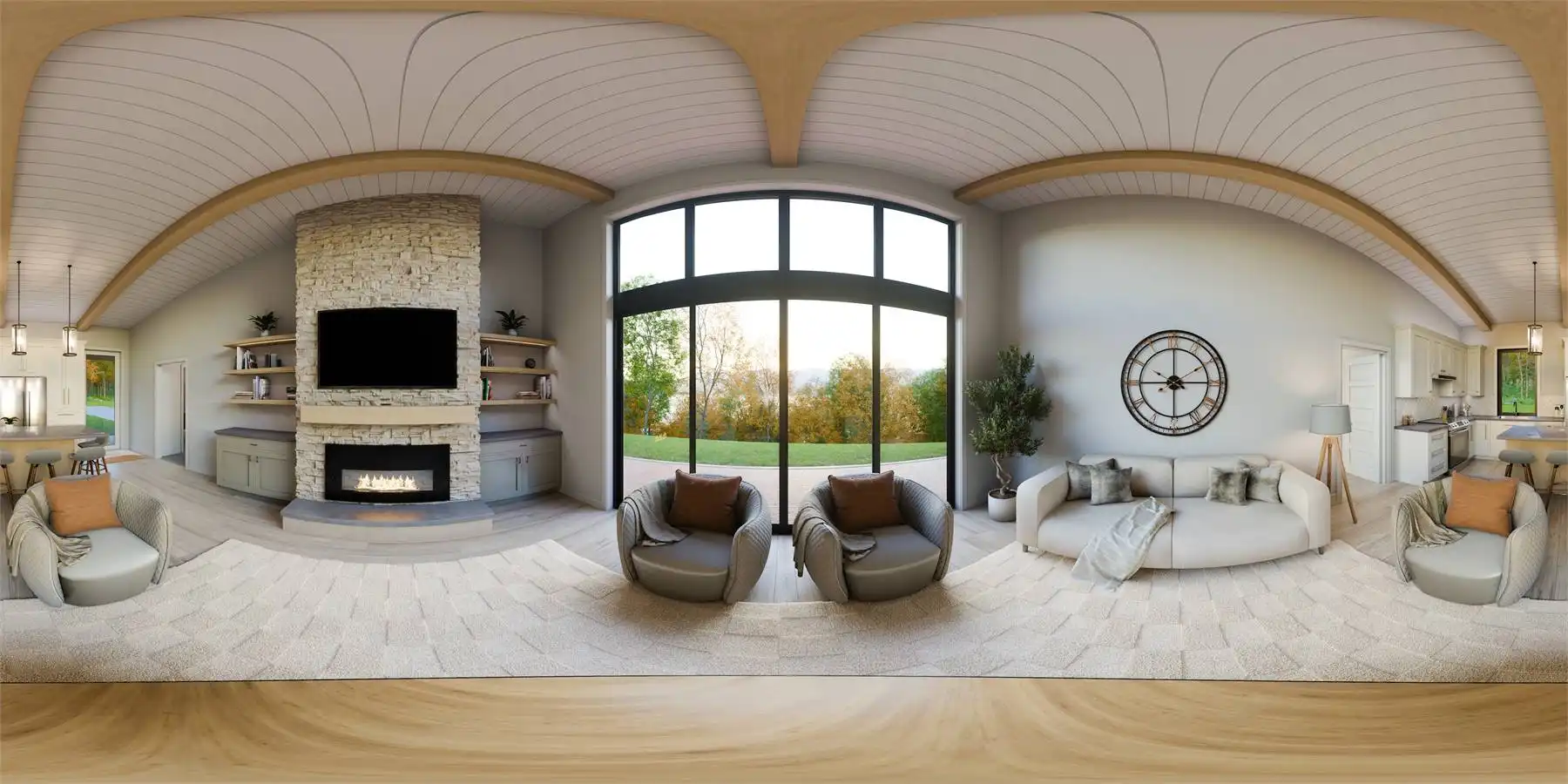 Floor-to-ceiling rear windows maximize views and natural light, creating a bright and open feel. A convenient drop zone with laundry and storage keeps things organized.