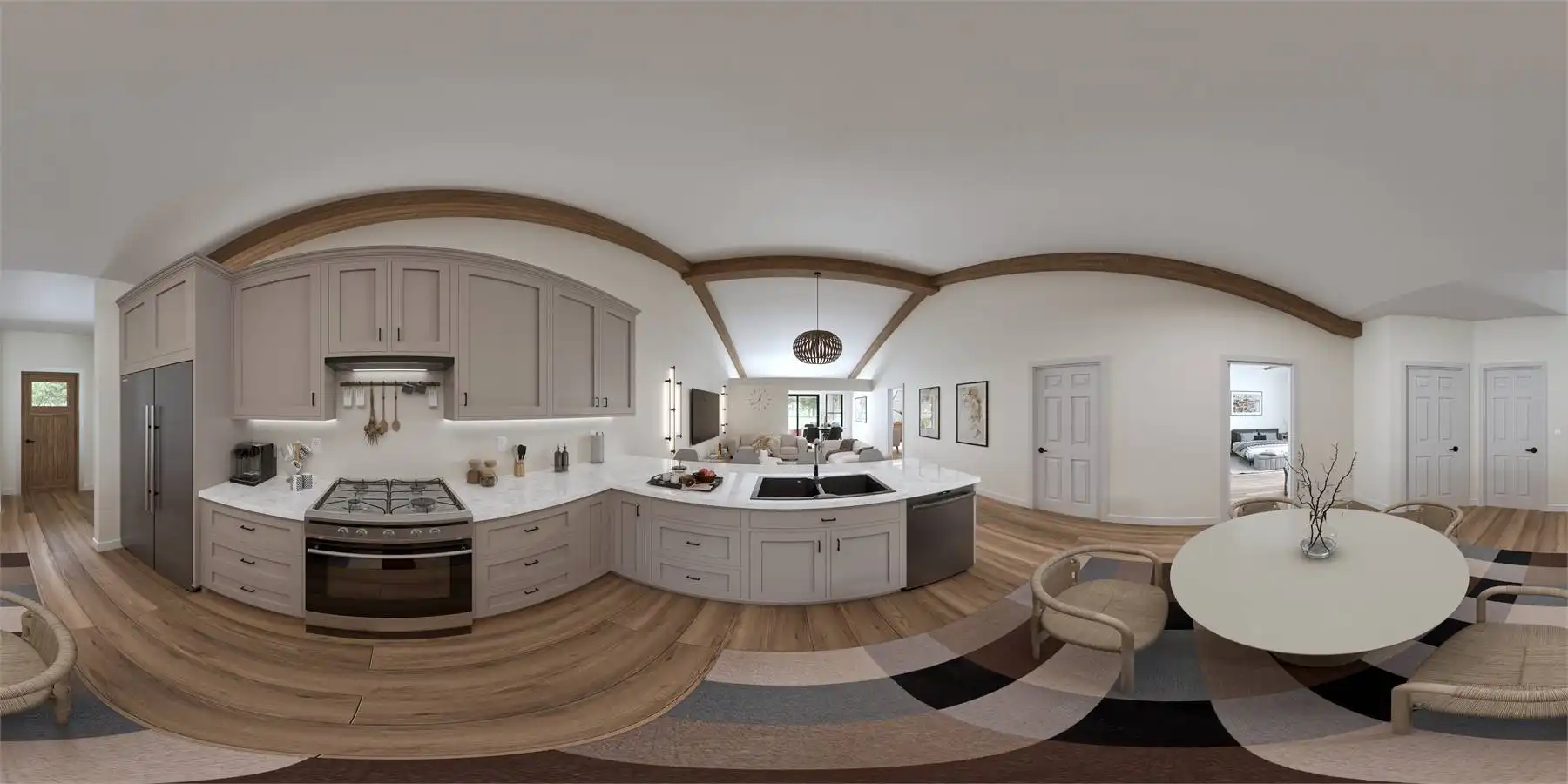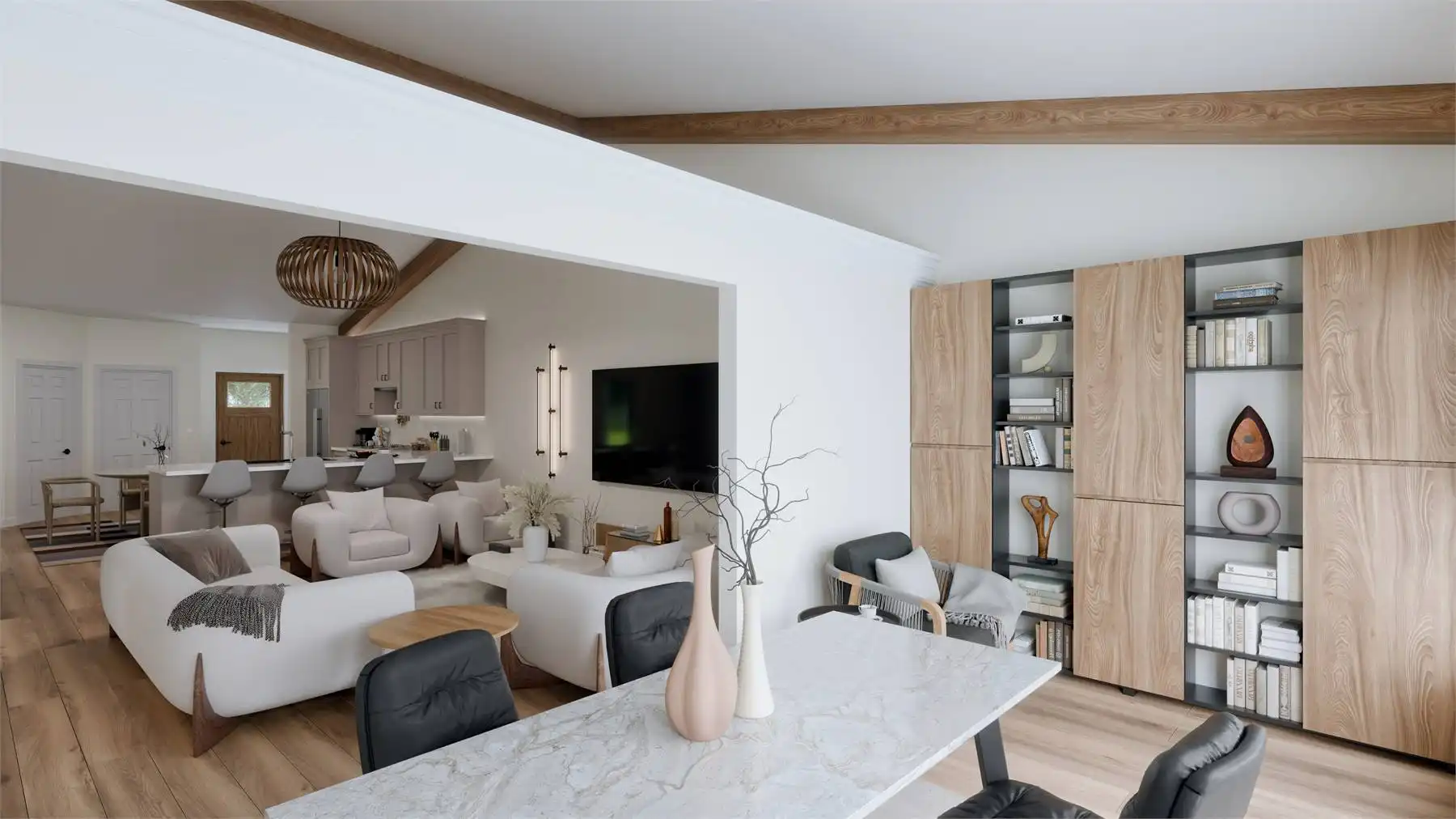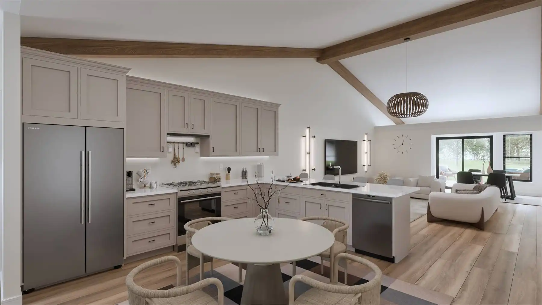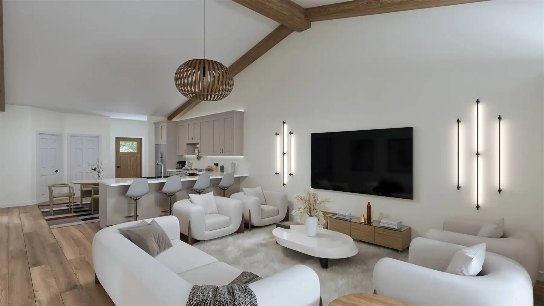 House Plan 10198 is a charming barndominium-style cottage offering 1,538 square feet of living space with 2 bedrooms and 2 baths. Its vaulted open-concept design creates an airy, inviting atmosphere. The 1,242-square-foot garage features a double bay front entry and single bay rear entry, providing space for a workshop or a fourth vehicle. Perfect for full-time living or a weekend retreat, this plan blends comfort and functionality effortlessly.