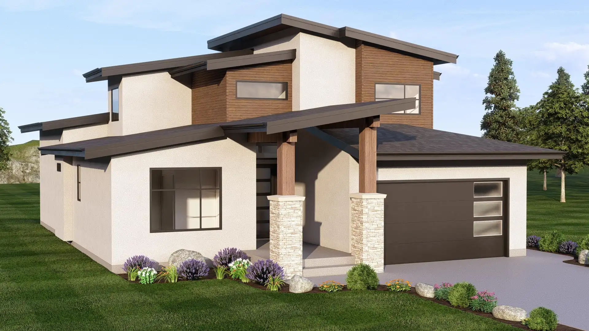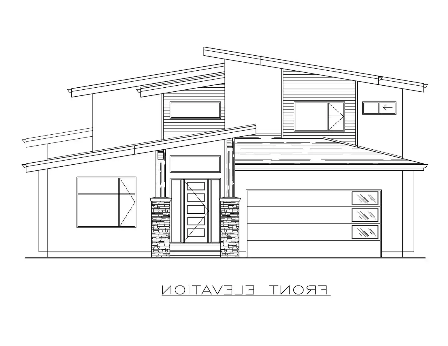 House Plan 10203 is a stylish and functional 2,222 sq. ft. modern home designed to accommodate families of all sizes. This 4-bedroom, 3-bathroom layout offers an inviting open floor plan where the great room, kitchen, and dining area seamlessly connect, creating a bright and airy space with vaulted ceilings. A covered patio extends the living space outdoors, perfect for entertaining or relaxing. The primary suite boasts a luxurious ensuite and walk-in closet, while an additional main-level bedroom and full bath provide flexibility for guests or a home office.