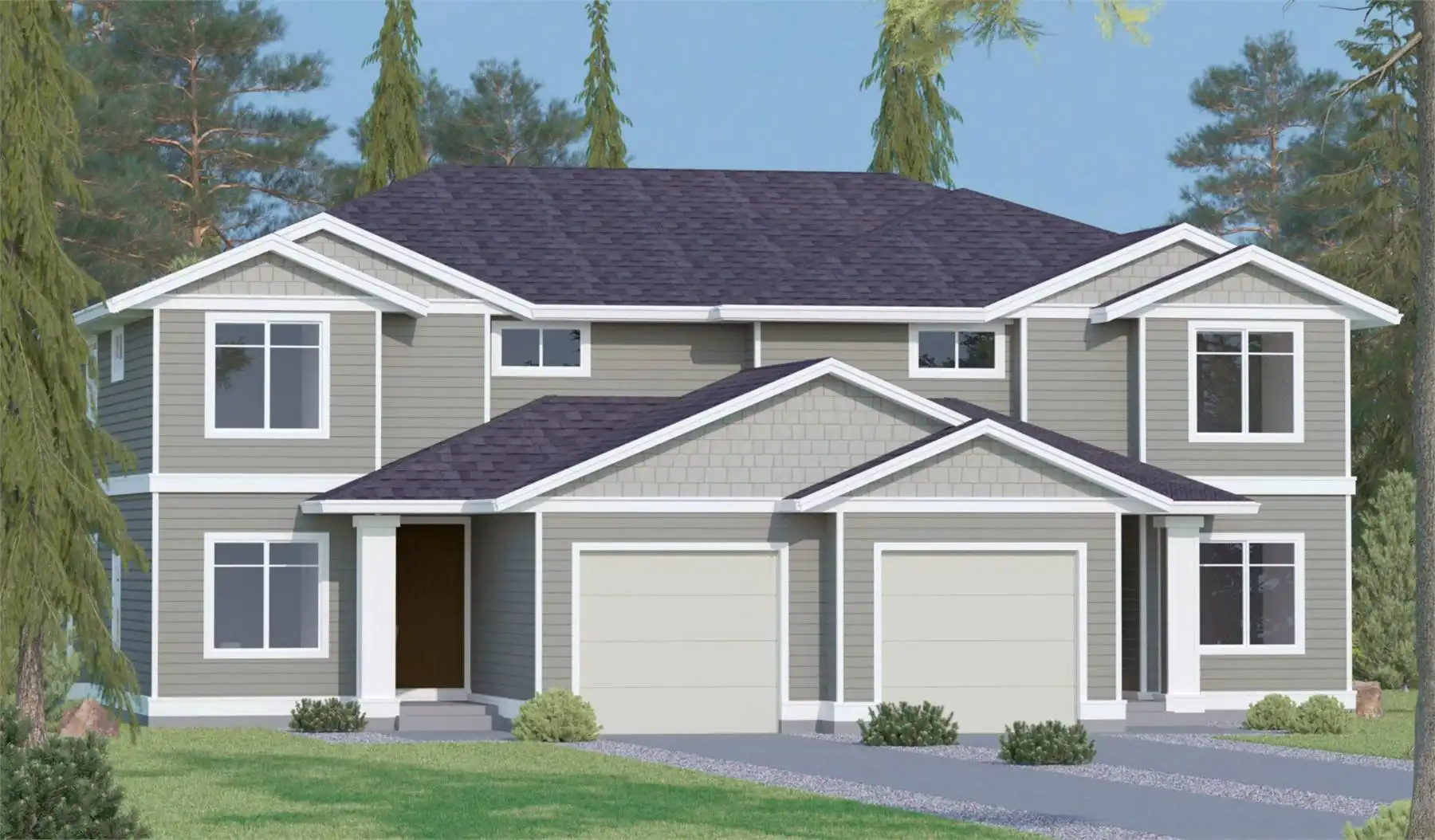 House Plan 10209 is a stylish two-story side-by-side duplex offering three bedrooms, a den, a single-vehicle garage, and optional unfinished basements for each unit. The main floor features an open layout with a great room overlooking the backyard, complete with a cozy gas fireplace and access to a partially covered patio for year-round grilling. The kitchen includes a prep island with a double sink, a corner pantry, and flows seamlessly into the dining area. A den, three-piece bathroom, and welcoming foyer complete the main level. Upstairs, the private master suite offers an ensuite with double basins, a shower, a soaker tub, and a spacious walk-in closet. Two additional bedrooms share a bathroom, with a loft area and convenient laundry room nearby. Attractive exterior details include wood shingles, siding, painted trim, and wooden pilasters marking each entrance. With a total of 4,004 square feet of living space, House Plan 10209 provides comfortable and functional living for families.ble and functional living for families.