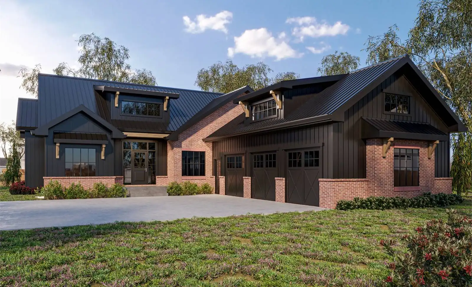 House Plan 10212 is a charming Craftsman home that blends rustic elegance with modern comfort. Board and batten siding, a metal roof, and brick accents create inviting curb appeal, while the open-concept great room, dining area, and kitchen offer seamless indoor-outdoor flow to a screened deck. A walk-in pantry, connected to the mudroom, adds convenience, and the three-car garage with a workshop is perfect for hobbyists. The main-level primary suite includes a 5-piece ensuite and walk-in closet with stackable laundry. A walkout lower level can double the square footage, adding three bedrooms, a gym, an entertainment area, and a large laundry room, making House Plan 10212 the perfect blend of craftsman charm and modern functionality.