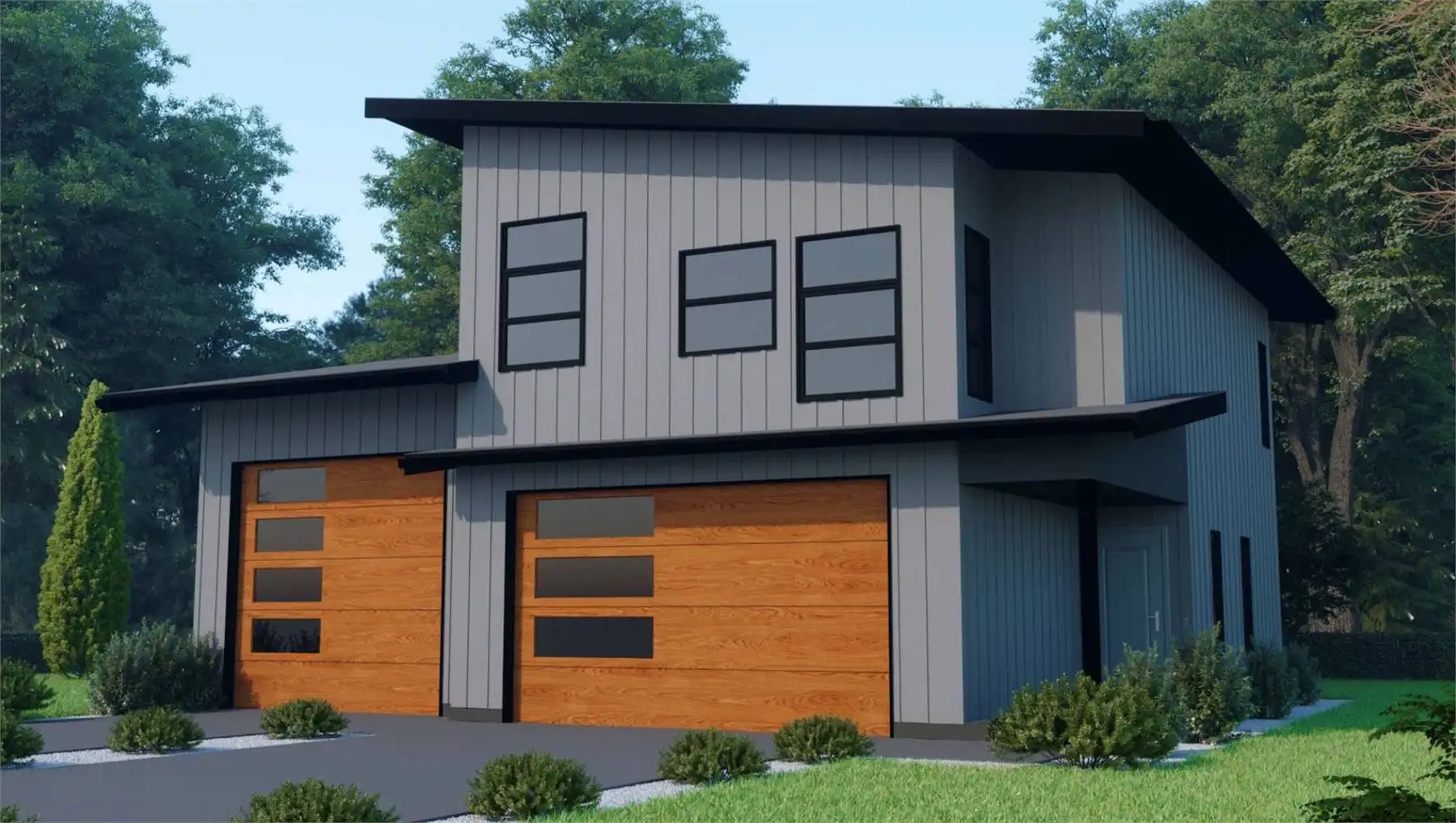 House Plan 10222 is a versatile 1,020-square-foot ADU perfect for rental income, an in-law suite, or a starter home with extra garage space. The main floor includes a double garage, an RV garage with a 12-foot ceiling, and a convenient half bath, ideal for those who work from the garage. The upper level features an open floor plan with an L-shaped kitchen, cozy living room, full bathroom, laundry area, and a bright bedroom. A flexible den offers the option of an office or second bedroom, making House Plan 10222 a smart, functional choice for various living needs.