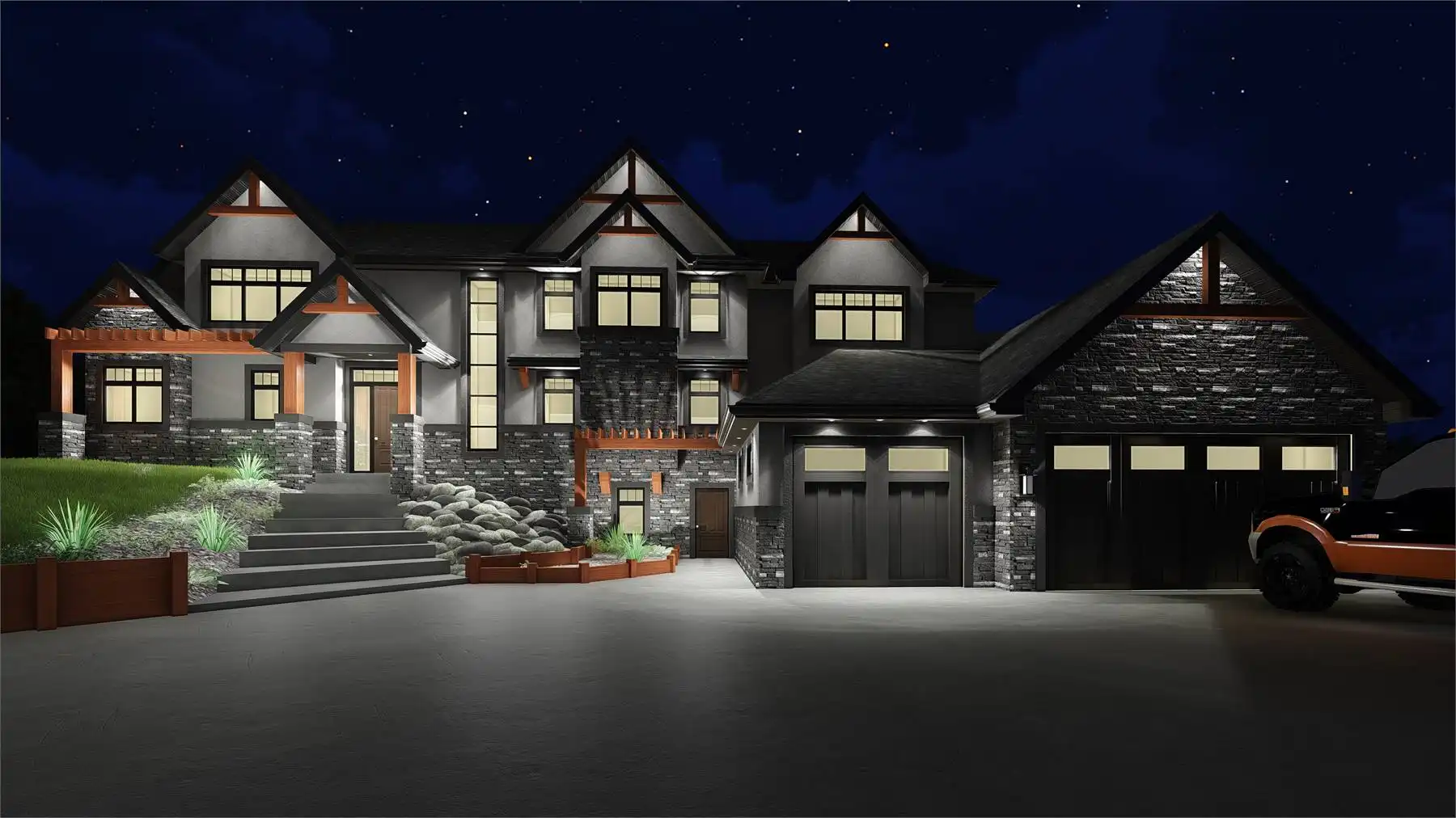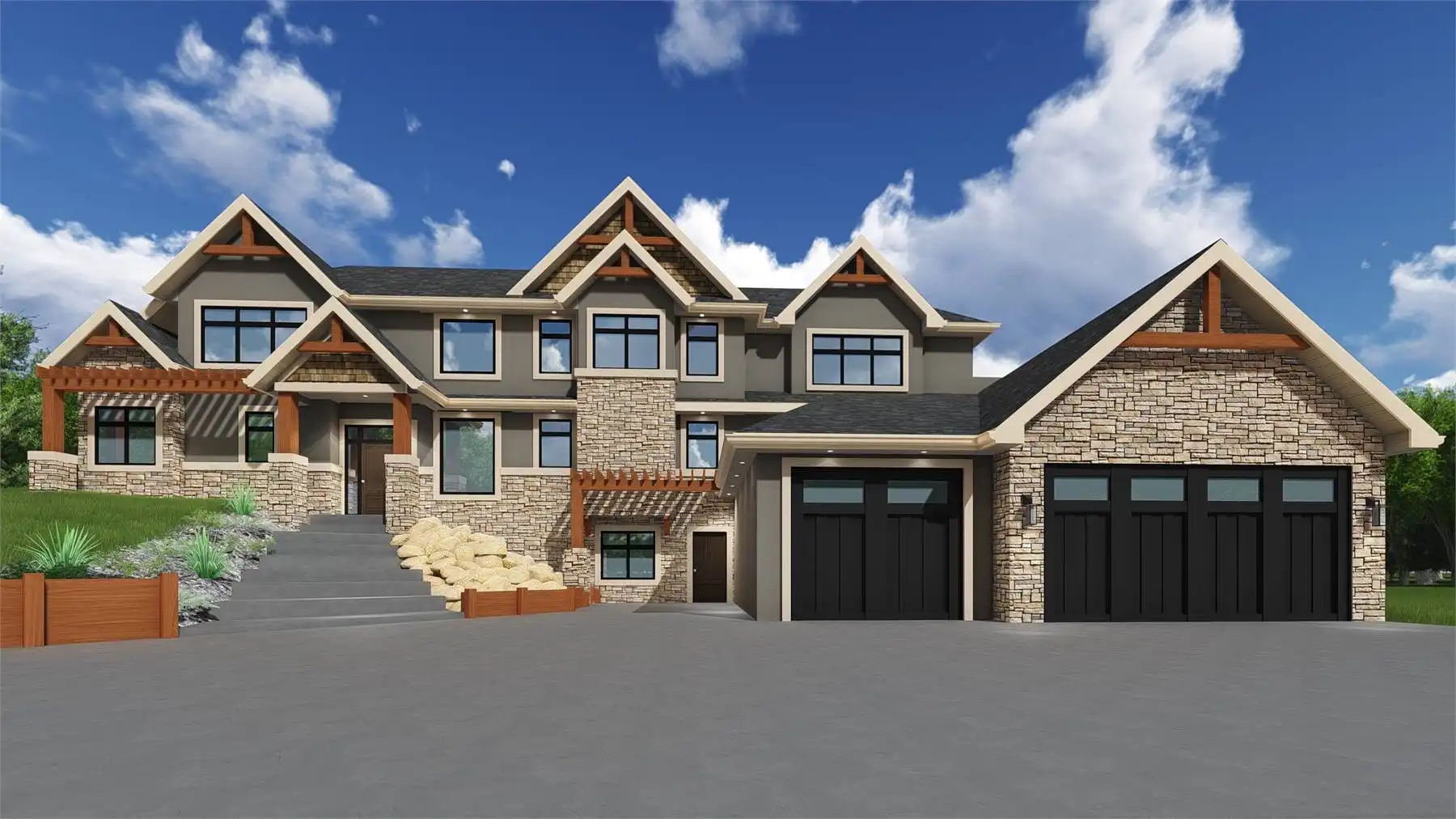 House Plan 10240 is a stunning modern mountain retreat with timber and stone accents that enhance its rugged Craftsman charm. At its heart, a two-story great room flows into the dining area and gourmet kitchen, opening to a screened covered deck with an outdoor kitchen and two sun decks. The main-level primary suite offers a fireplace and serene views, while the secluded man cave features direct deck access and a spiral staircase to the lower and upper levels. Upstairs, three bedrooms, an office, and a bonus room with an open deck provide ample space. The lower level includes a theater, game room, extra bedroom, flex room, and a spacious three-car garage with plenty of storage. Designed for those who love outdoor living and modern luxury, House Plan 10240 delivers craftsmanship, comfort, and breathtaking mountain views.