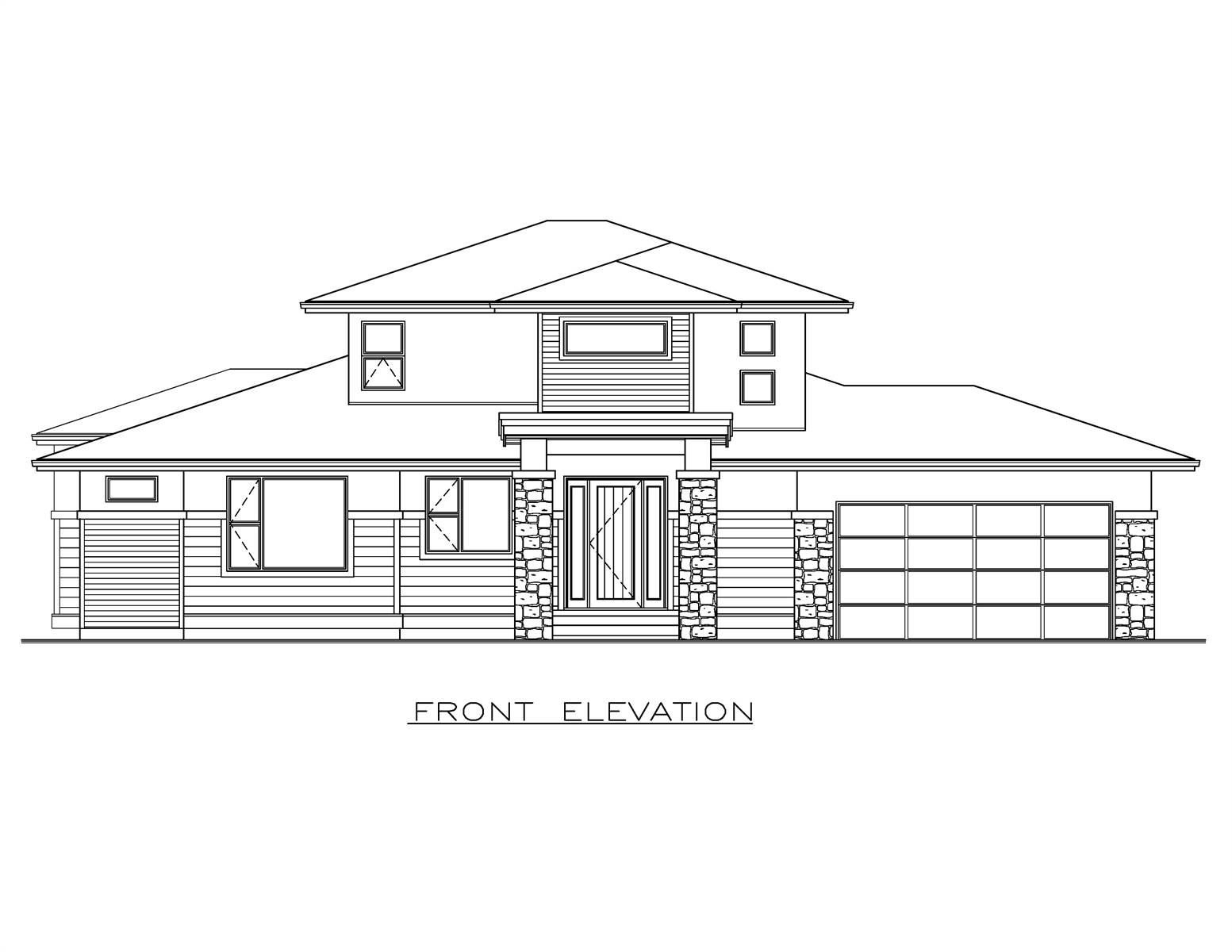 House Plan 10248 offers a smart and flexible design with 1,423 square feet of main living space located on the upper floor. The open-concept great room features a tray ceiling, cozy gas fireplace, and access to a glass-railed balcony overlooking the front garden, while the dining room flows onto a back patio for easy outdoor entertaining. The kitchen is designed for convenience with a corner pantry, ample counter space, and a central island with a double sink for effortless conversation while cooking. The private master suite is set at the rear with a walk-in closet and an ensuite featuring double sinks and a shower, while two secondary bedrooms share a three-piece bath at the front of the home. A laundry room, broom closet, and linen storage are all within easy reach. On the ground floor, a versatile den with a closet can serve as a guest bedroom, and a future two-bedroom secondary suite offers excellent potential for rental income or multi-generational living. Stone accents, wood detailing, and a mix of shingle and metal roofing add character and curb appeal to House Plan 10248.