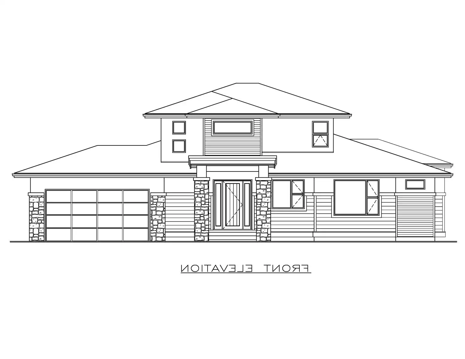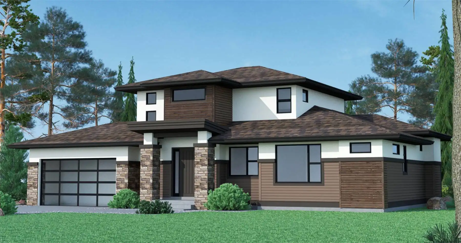 House Plan 10248 offers a smart and flexible design with 1,423 square feet of main living space located on the upper floor. The open-concept great room features a tray ceiling, cozy gas fireplace, and access to a glass-railed balcony overlooking the front garden, while the dining room flows onto a back patio for easy outdoor entertaining. The kitchen is designed for convenience with a corner pantry, ample counter space, and a central island with a double sink for effortless conversation while cooking. The private master suite is set at the rear with a walk-in closet and an ensuite featuring double sinks and a shower, while two secondary bedrooms share a three-piece bath at the front of the home. A laundry room, broom closet, and linen storage are all within easy reach. On the ground floor, a versatile den with a closet can serve as a guest bedroom, and a future two-bedroom secondary suite offers excellent potential for rental income or multi-generational living. Stone accents, wood detailing, and a mix of shingle and metal roofing add character and curb appeal to House Plan 10248.