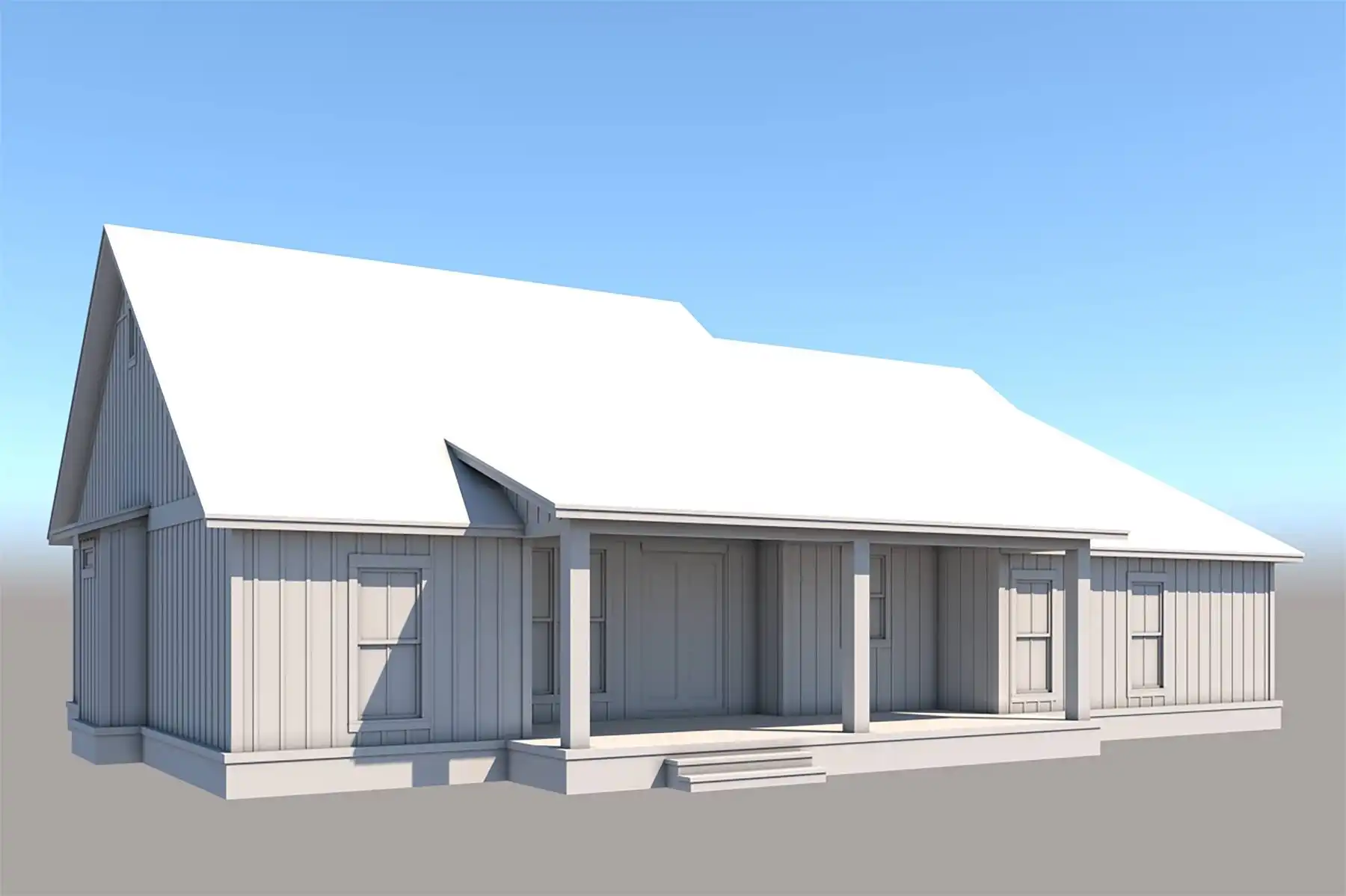 House Plan 10264 is a thoughtfully designed ranch-style home that blends modern comfort with classic farmhouse charm. Its open floor plan creates a seamless flow between the main living spaces, with a spacious kitchen featuring a large island with an eating bar and a walk-in pantry for ample storage. Expansive front and rear porches extend the living space outdoors, perfect for relaxation and entertaining. The two-car garage is complemented by a third bay with front and rear access, offering flexibility for storage or a workshop. With an additional half bath for convenience, this home delivers both style and practicality in a timeless single-story design.