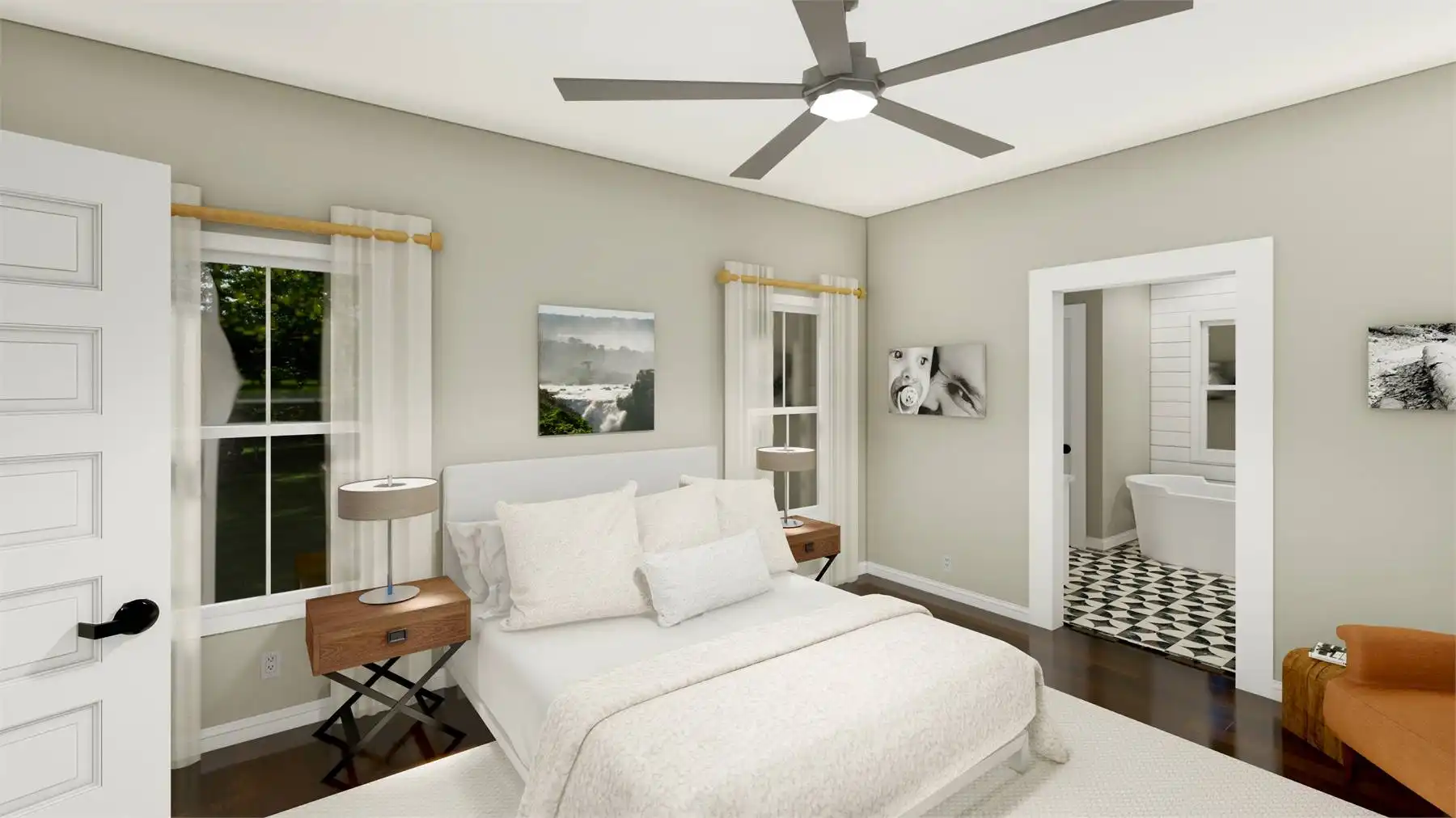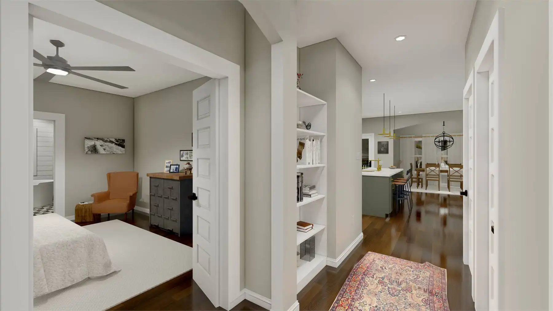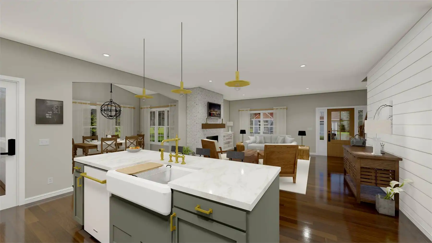 House Plan 10268 is a charming country-style home offering 2,380 square feet of warmth and functionality. The inviting covered front porch leads into an open floor plan where the family room seamlessly connects to the kitchen with a central island, while a cozy café nook overlooks the scenic rear porch. The main-floor primary suite features an extraordinary ensuite with dual sinks, a separate soaking tub, a walk-in shower, and a large walk-in closet. A main-floor office doubles as an optional guest room. Upstairs, two bedrooms share a full bath, with a loft providing additional living space and the option to add a fourth bedroom. For even more space, the optional basement includes a bedroom, large recreation room, home gym, and ample storage, making House Plan 10268 the perfect blend of country charm and modern convenience.