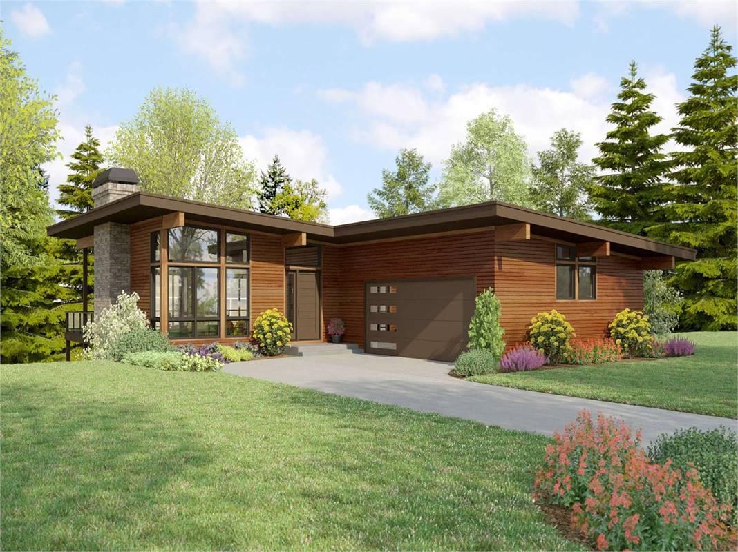 If you've got a sloped lot and modern tastes, give House Plan 10281 a try! This stunning home offers 2,558 square feet, four bedrooms, and three bathrooms in a relatively compact width thanks to its courtyard garage. Step inside and the entire main level sits beneath vaulted ceilings. The open-concept great room has floor-to-ceiling windows, and you'll find two bedrooms--a primary suite and another bedroom beside a hall bath--placed down a hallway for privacy. The other two bedrooms share a hall bath in the basement, where they're placed off of the game room. Again, there's plenty of glass on this level--this home was made for a view lot!