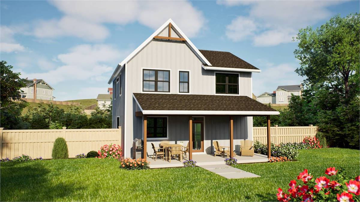 Need an affordable home? House Plan 10284 is a great cottage for your consideration with 1,545 square feet, three bedrooms, two-and-a-half baths, and a one-car garage neatly packaged into a simple shape. The main level offers open-concept living with an island kitchen as well as the powder room and coat closets in front and back. All the bedrooms are upstairs--the primary suite and two that share a hall bath--along with the laundry room. Every bedroom is in a corner and has windows on two sides for natural light. The landing by the stairs even takes advantage, too!