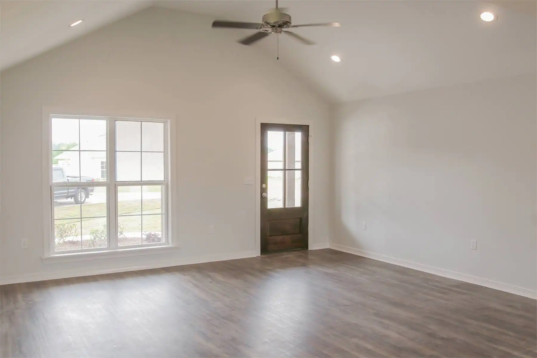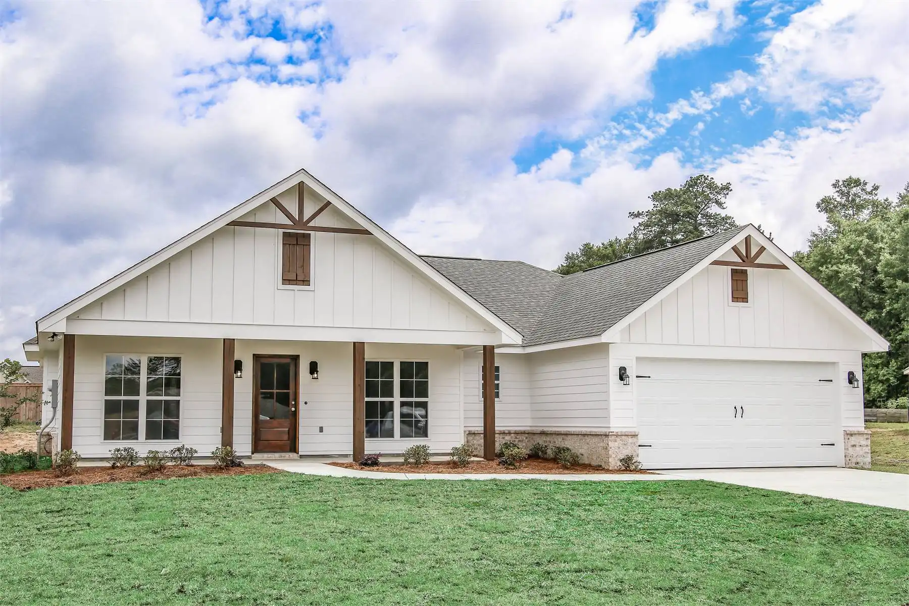 House Plan 10285 is a 1,459-square-foot farmhouse-style home that blends comfort, charm, and functionality. With 3 bedrooms and 2 bathrooms, this thoughtfully designed layout welcomes you with a charming front porch, leading into an open and airy great room with a soaring 12-foot vaulted ceiling. The connected kitchen and dining area create a seamless flow, making it perfect for everyday life and entertaining. The split-bedroom design provides privacy, with the primary suite featuring a spa-like bath and a spacious walk-in closet, while two additional bedrooms share a conveniently located bathroom. Practical touches like a mudroom with built-in lockers near the 2-car garage add efficiency and organization. Out back, the covered rear porch offers a quiet spot to unwind and enjoy the outdoors. Combining farmhouse charm with modern convenience, this home is a perfect fit for families, downsizers, or anyone seeking stylish yet functional living.