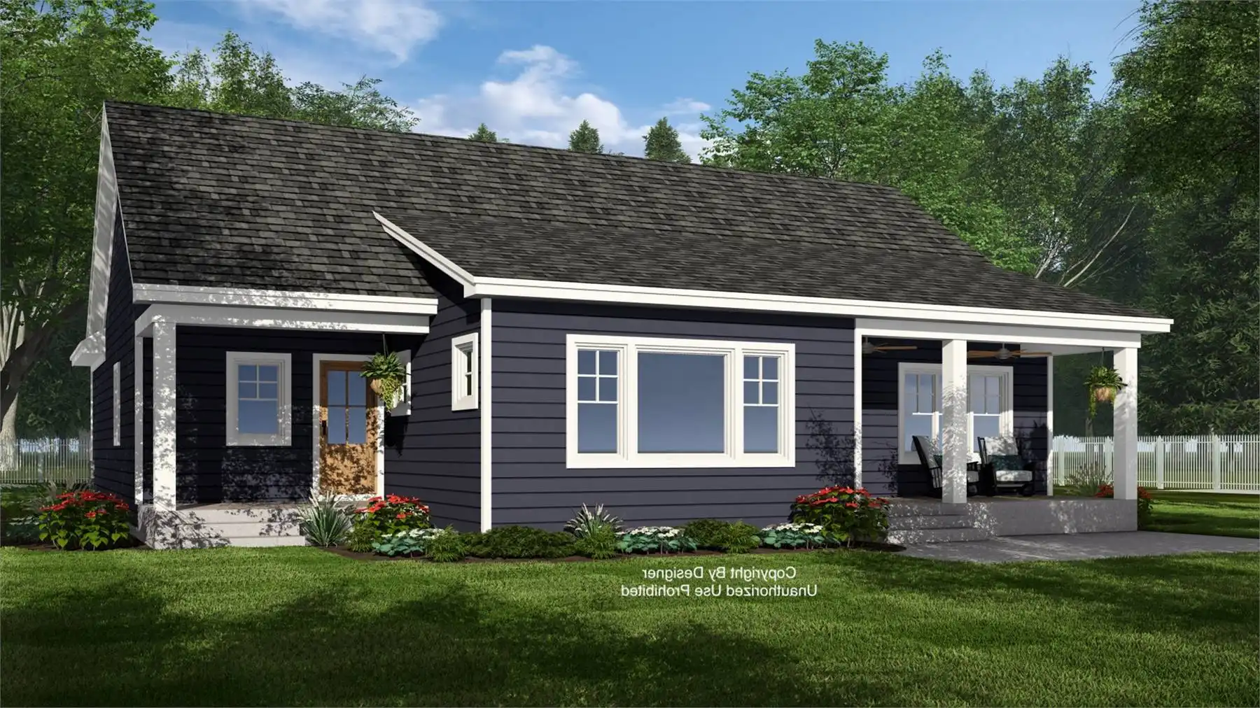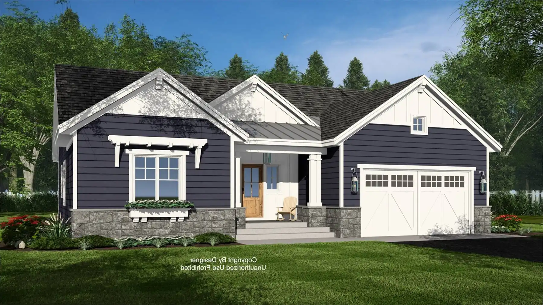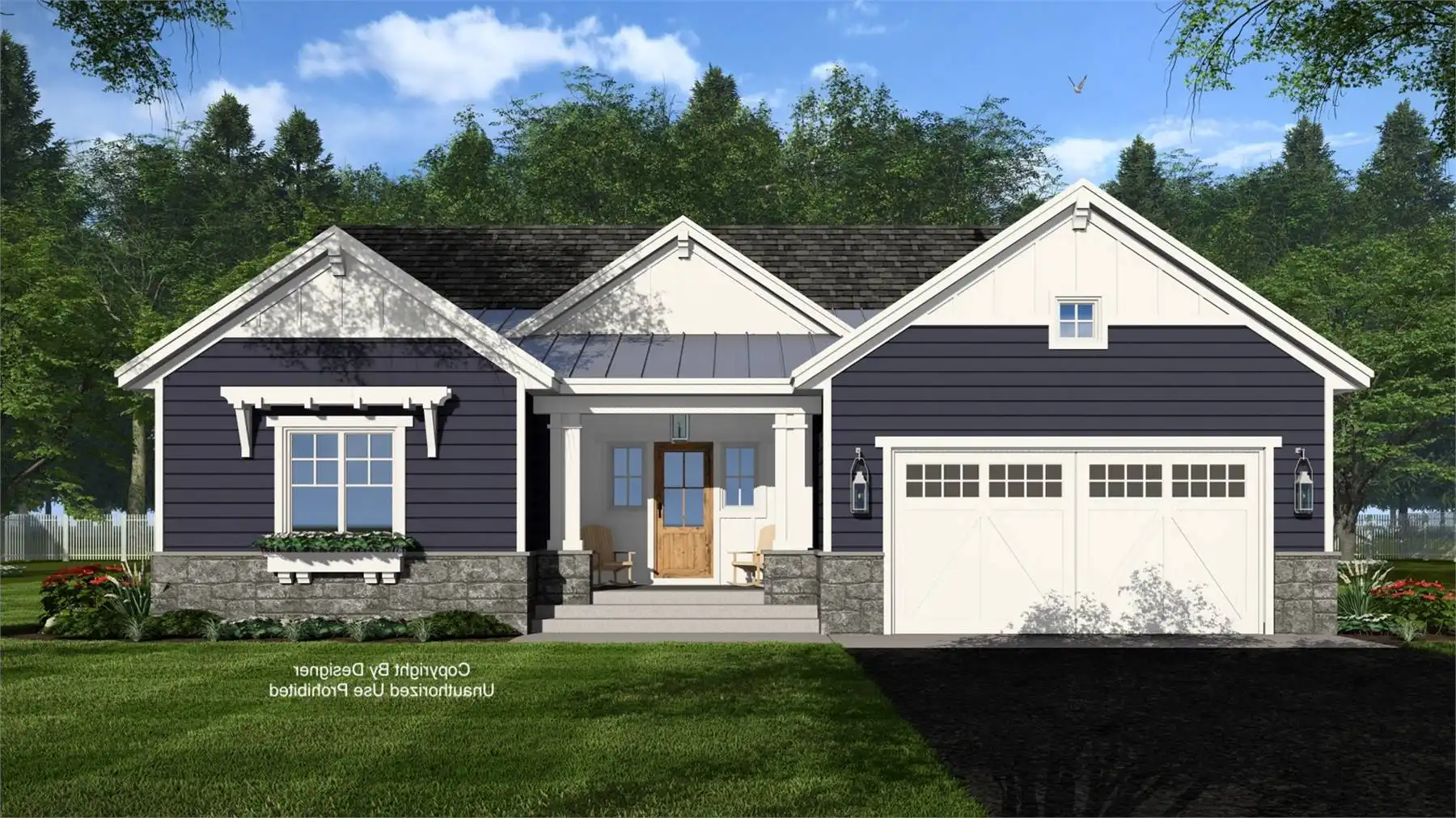 Check out House Plan 10309 if you're in the market for a Craftsman ranch of modest size! This home is ready for a neighborhood and a family with a front-entry garage and 1,701 square feet with three bedrooms and two-and-a-half bathrooms. The bedrooms are split into separate hallways on one side of the house while the common areas are on the other. The open layout really maximizes every square foot!
