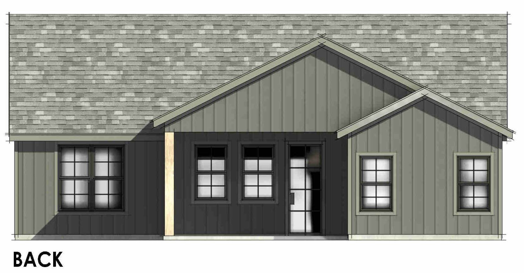 House Plan 10317 is a 1,271 sq. ft. home with three bedrooms, two bathrooms, and a front-facing one-car garage. The split-bedroom layout offers privacy, with the primary suite featuring an ensuite bath. The open floor plan includes a living room with a fireplace, a dining area, and a stylish kitchen with a central island. A large covered back porch provides outdoor living space, perfect for relaxing or entertaining.