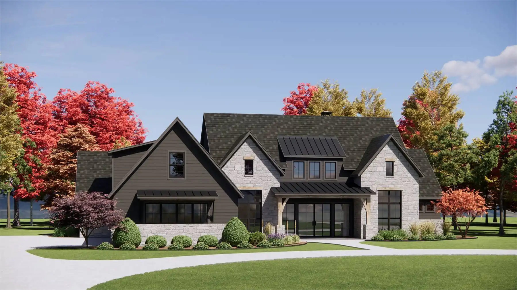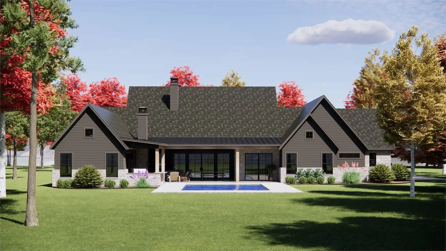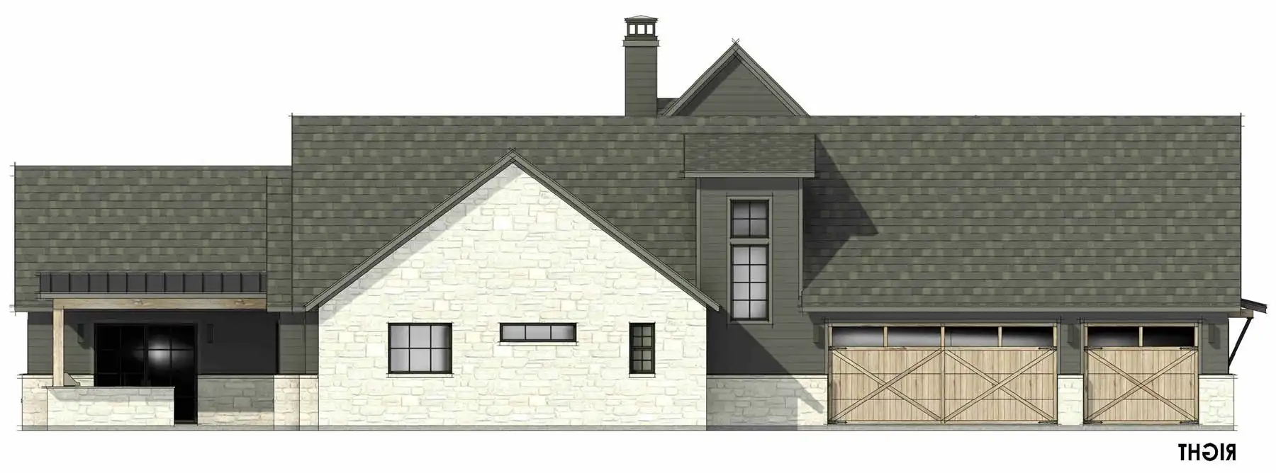 Welcome to House Plan 10318, a stunning one-story modern farmhouse designed for both comfort and style. This four-bedroom home features exquisite vaulted ceilings in the family room, creating an inviting and spacious atmosphere. The large chef’s L-shaped kitchen boasts a central island, perfect for casual dining and entertaining. A dedicated office provides a private workspace, while the split bedroom design ensures privacy and functionality. The luxurious primary suite offers a spa-like ensuite with dual vanity sinks, a relaxing soaker tub, and a separate shower. Additional highlights include a versatile games room and a spacious three-car garage, making House Plan 10318 perfect for modern family living.