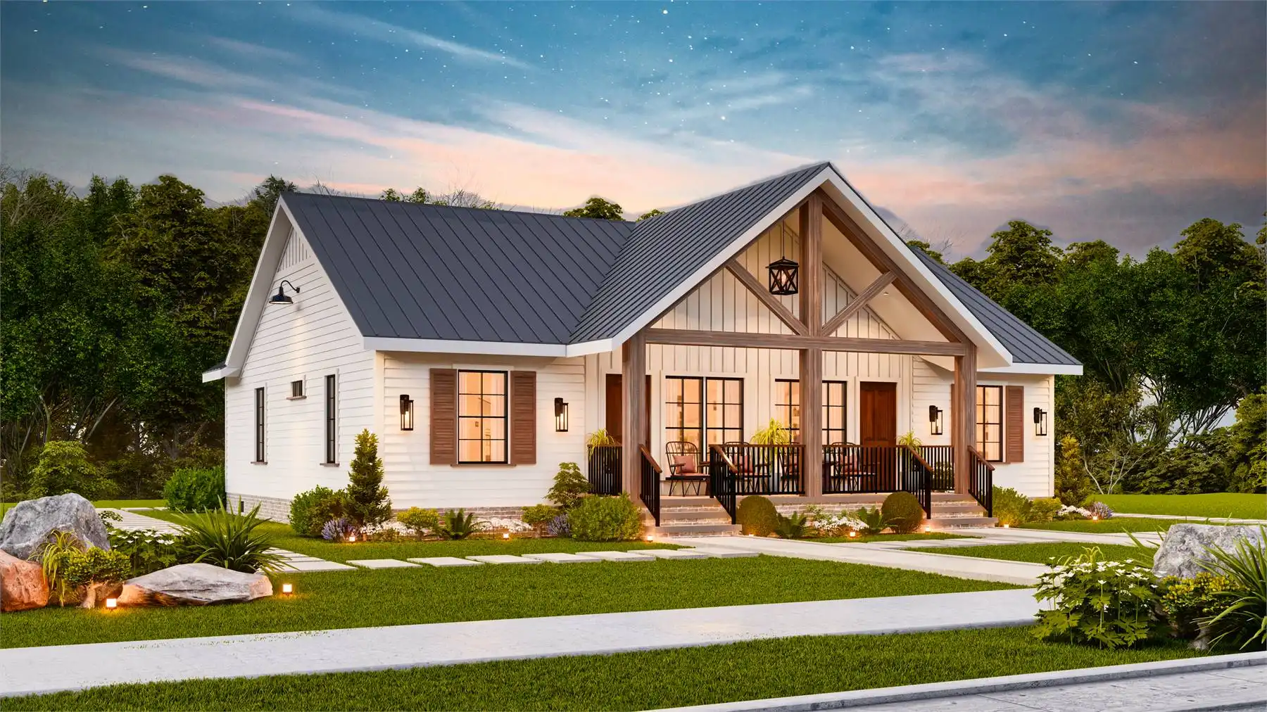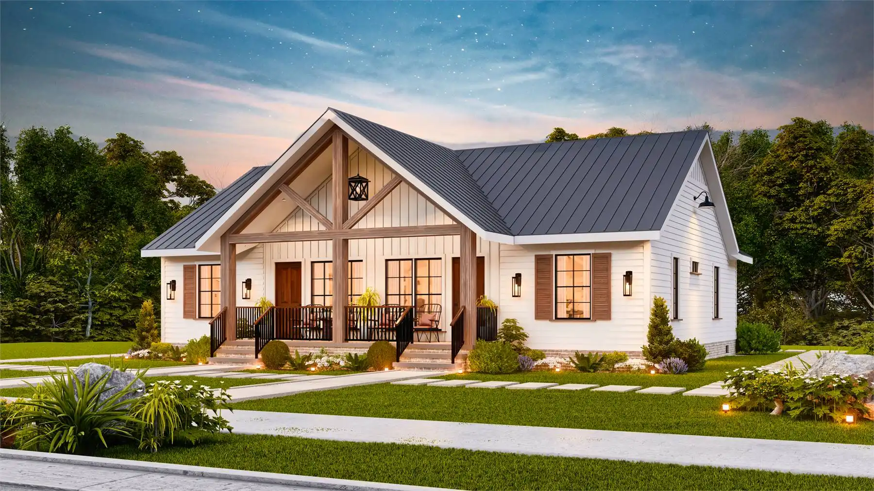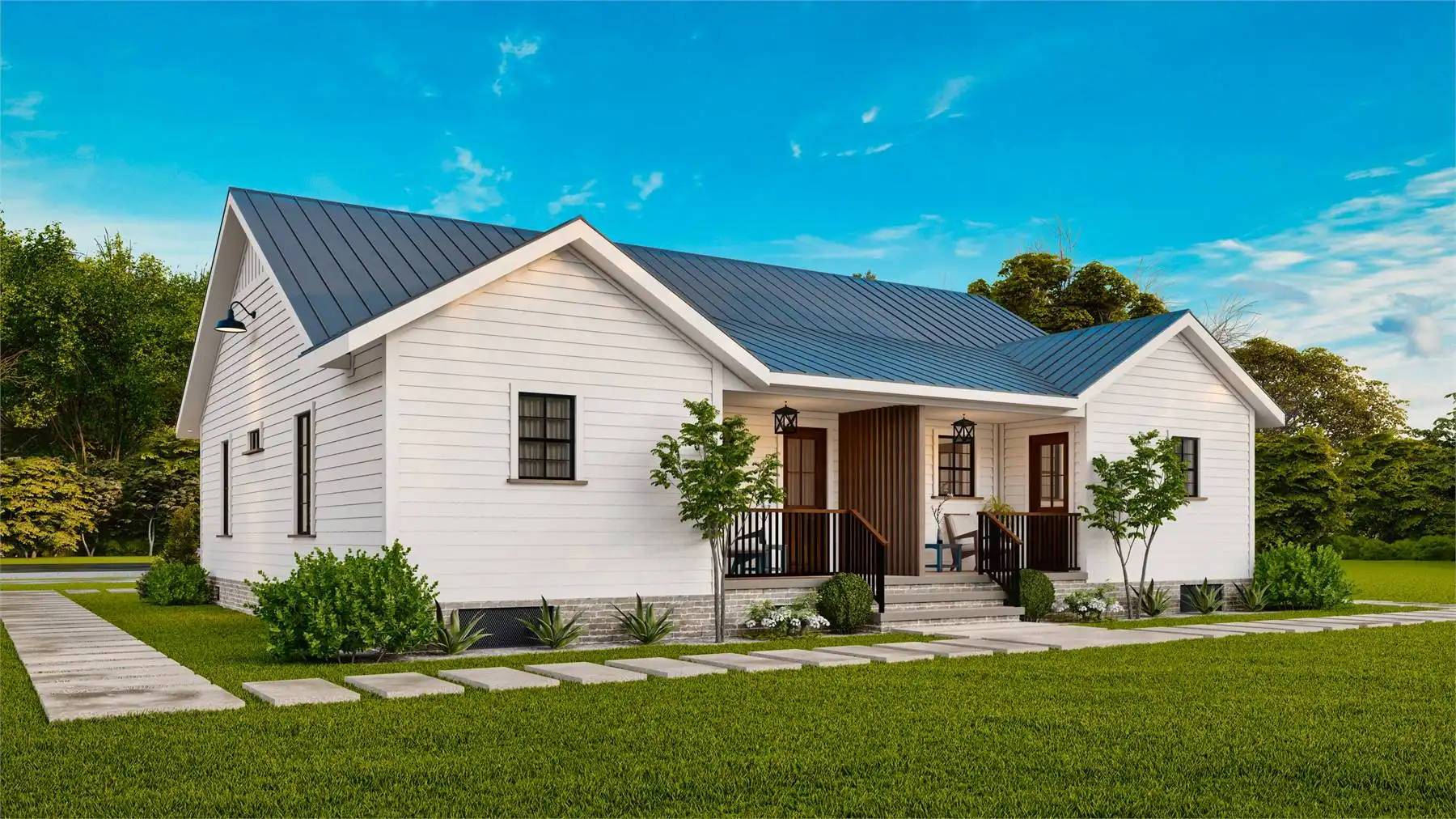 House Plan 10319 is a single-story, 2-unit duplex designed with simplicity and comfort in mind. Each unit offers 2 bedrooms, 2 full bathrooms, an L-shaped kitchen with an island, a dining area, and a separate living room. Covered front and back porches provide inviting outdoor spaces. With a blend of country, farmhouse, and craftsman styles, this plan is both modern and rustic—ideal for investors, first-time homeowners, or empty nesters seeking additional income.